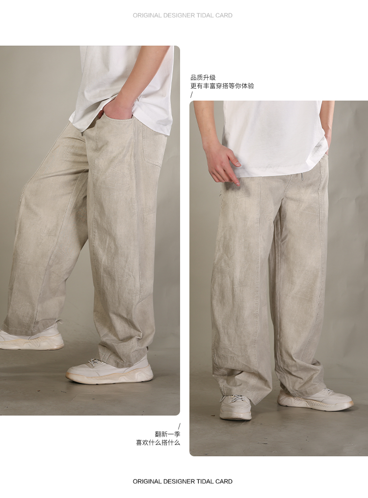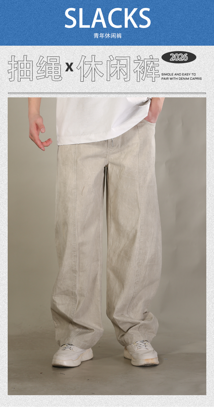 DRONKOO 2026 花色抽绳前中破骨满幅做旧斑驳中厚休闲长裤