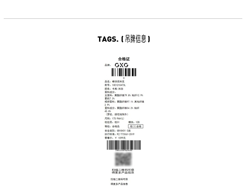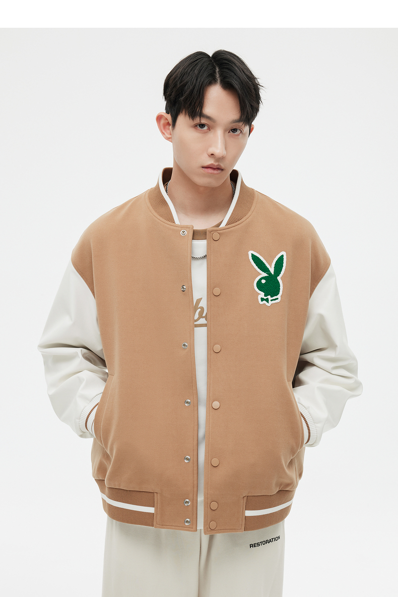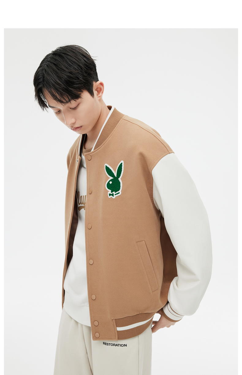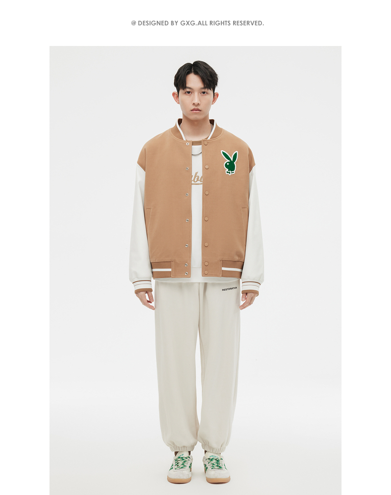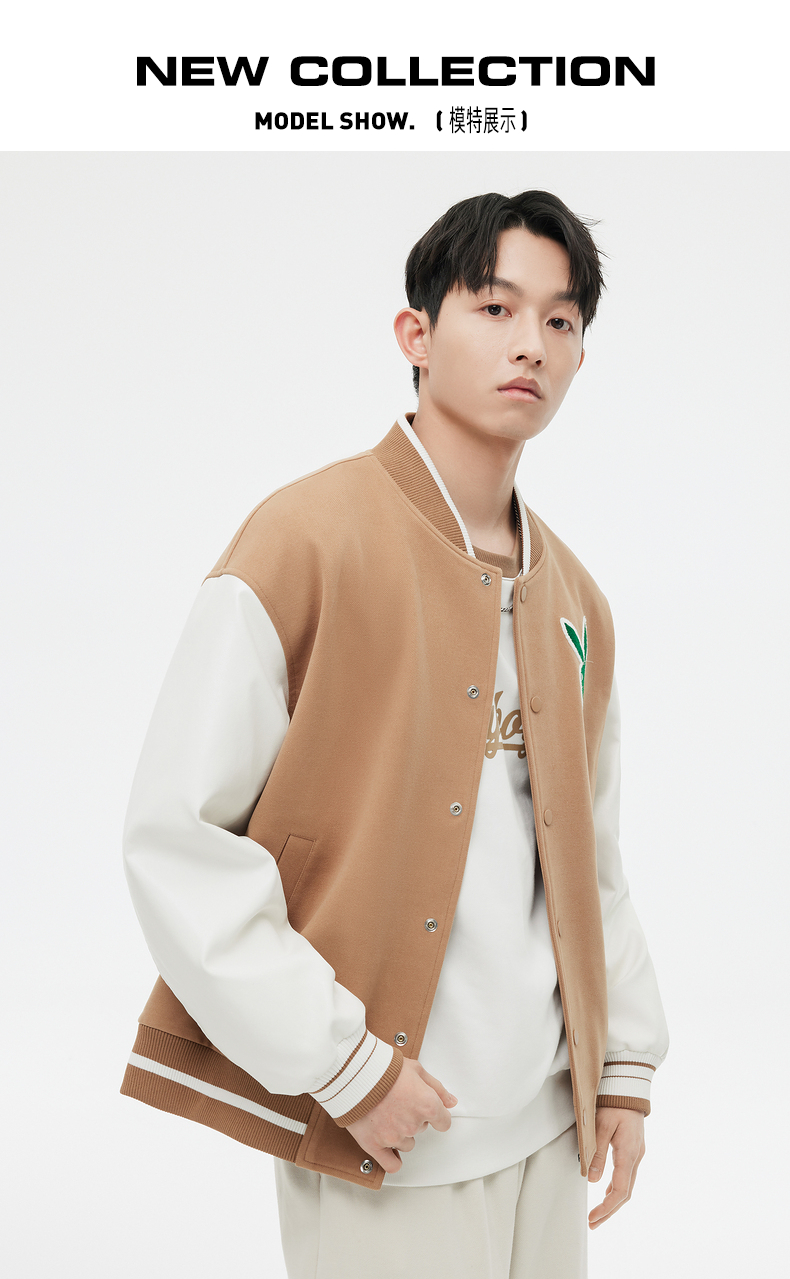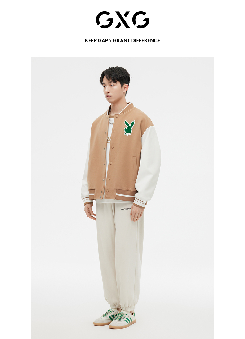 GXG男装 经典棒球服夹克外套袖子拼皮撞色毛巾绣 春季热卖夹克