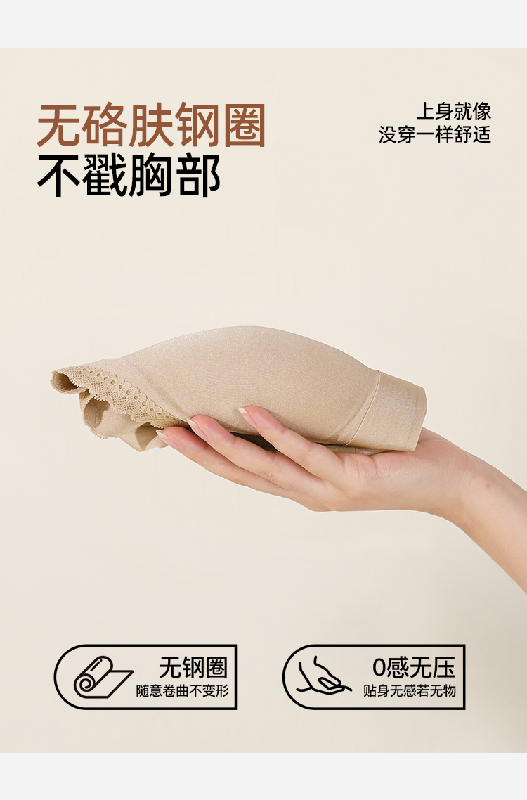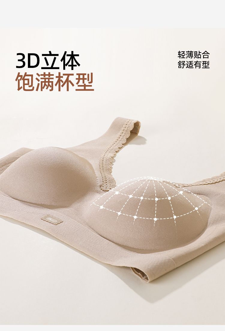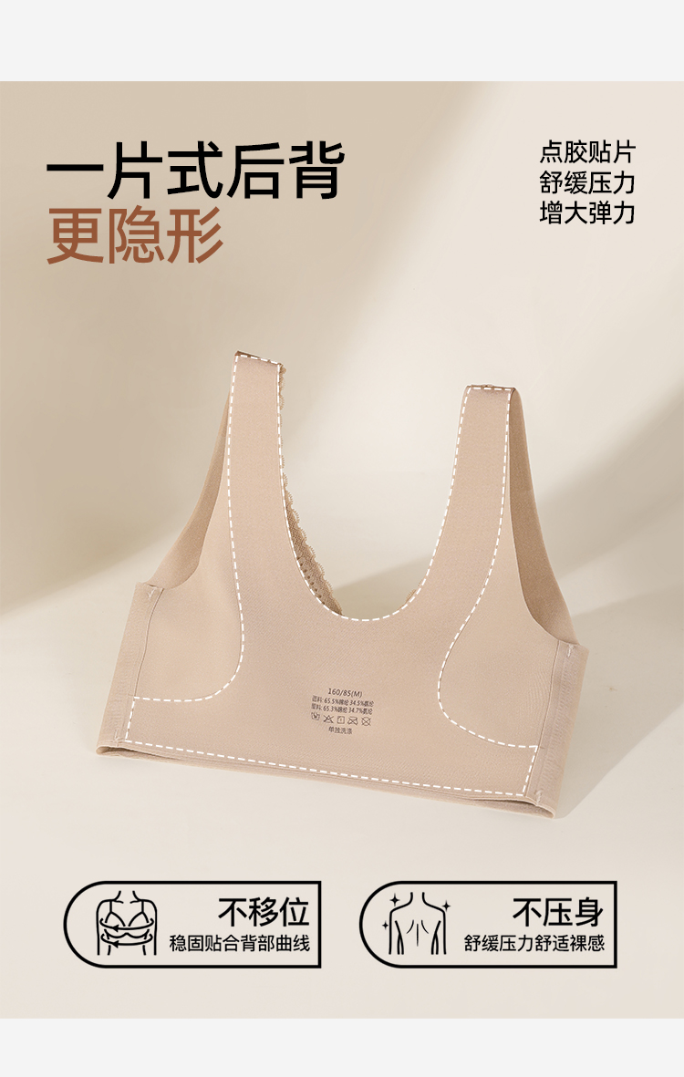 熳洁儿 舒适无痕内衣隐形蕾丝花边聚拢透气固定杯薄杯背心式26261528