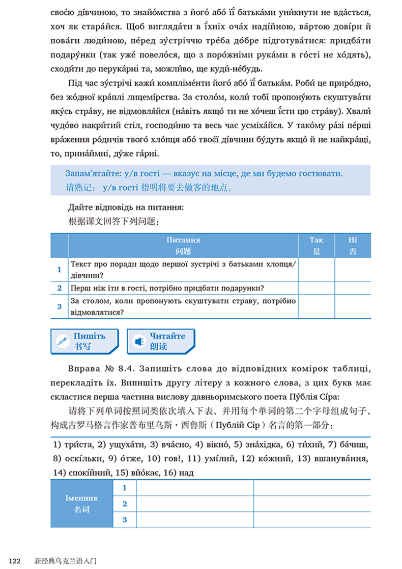 本教材采用了许多优先针对乌克兰语母语者的教学材料,同时根据北外的外语教学原则、乌克兰研究中心的研究成果、在听取了专家及学生意见的基础上进行了调整及改编。
