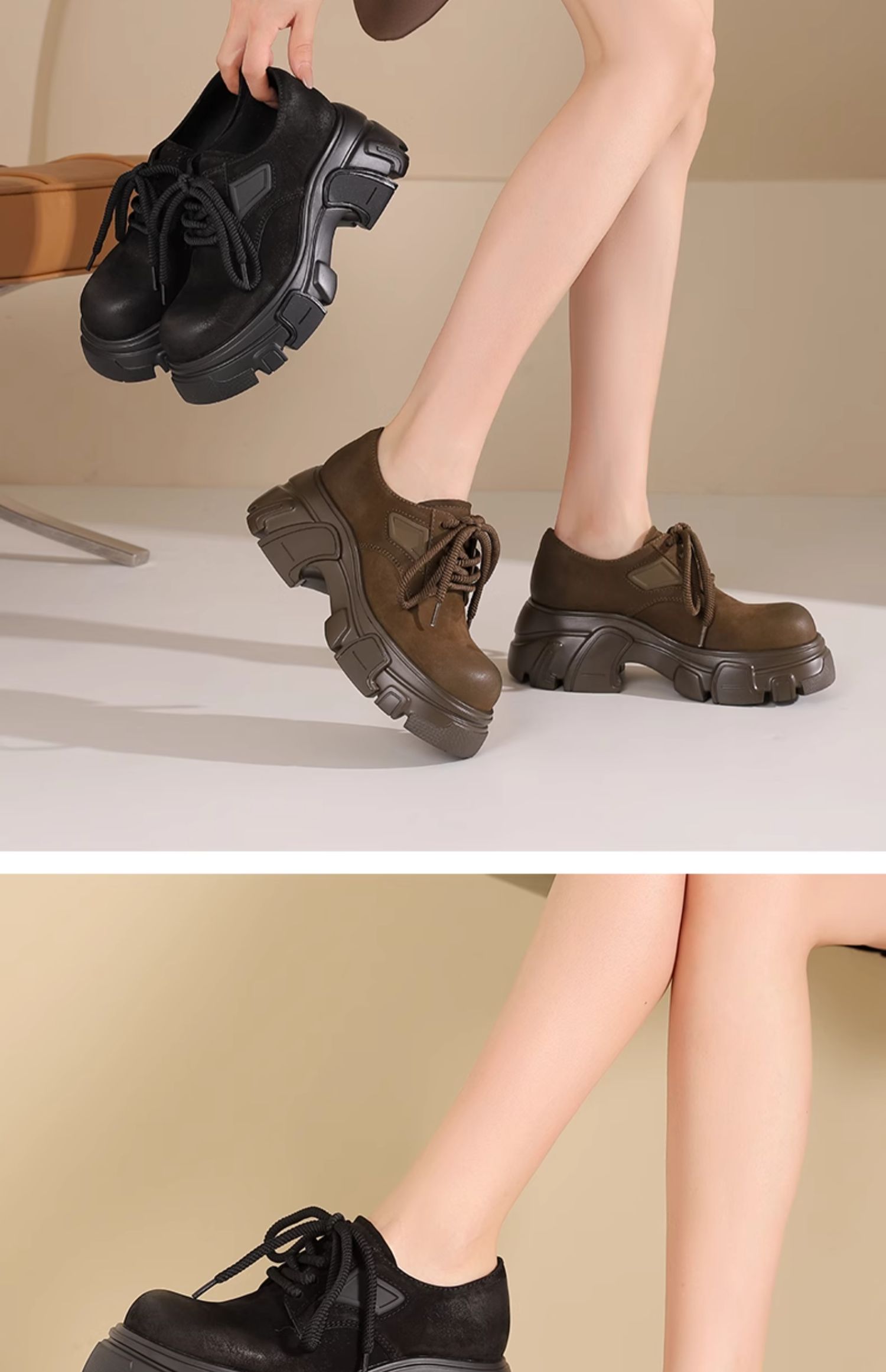 westory2024秋季新品厚底*大头鞋复古休闲百搭乐福鞋女W24CM75431