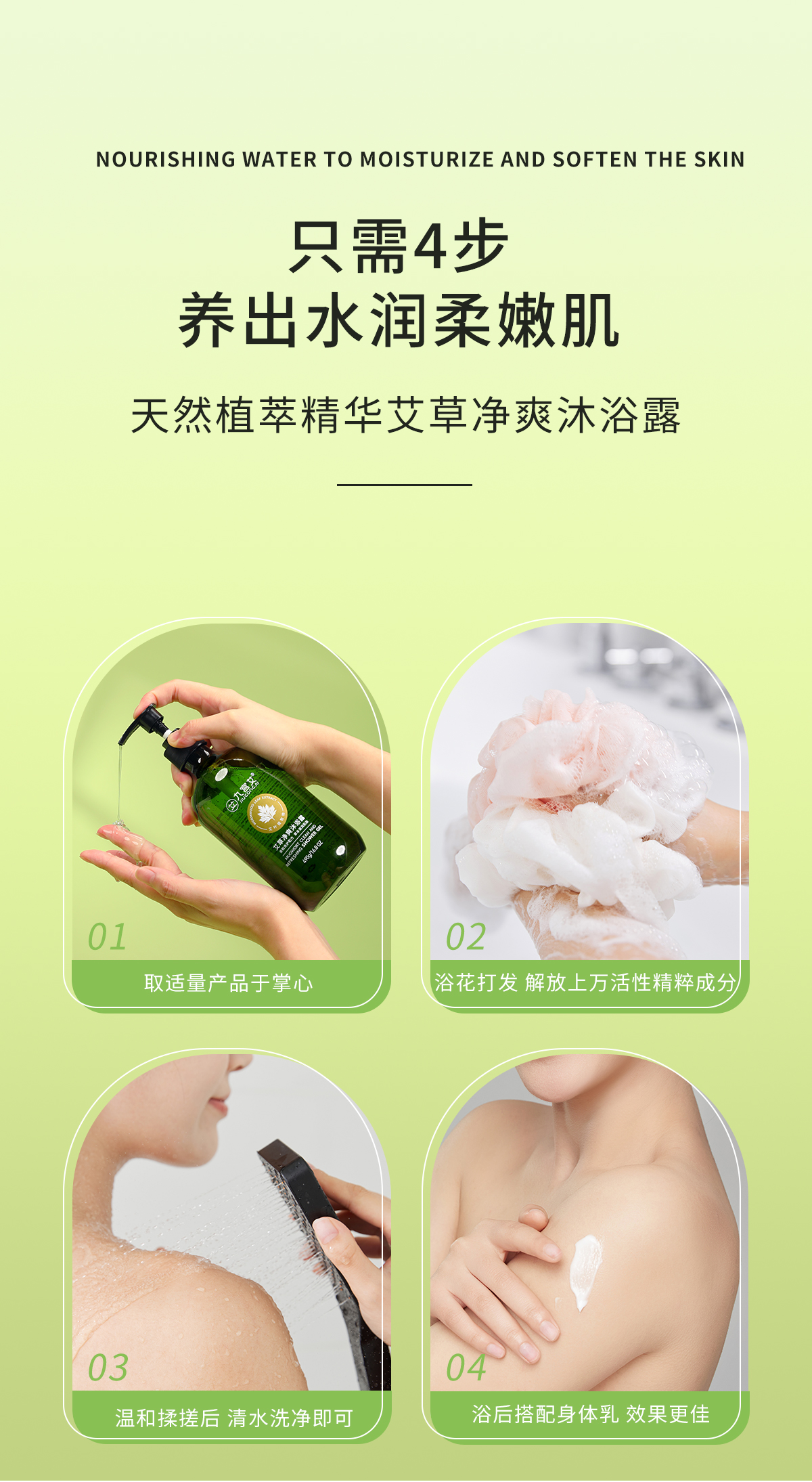 九宫艾艾草清爽沐浴露 持久留香 滋润保湿