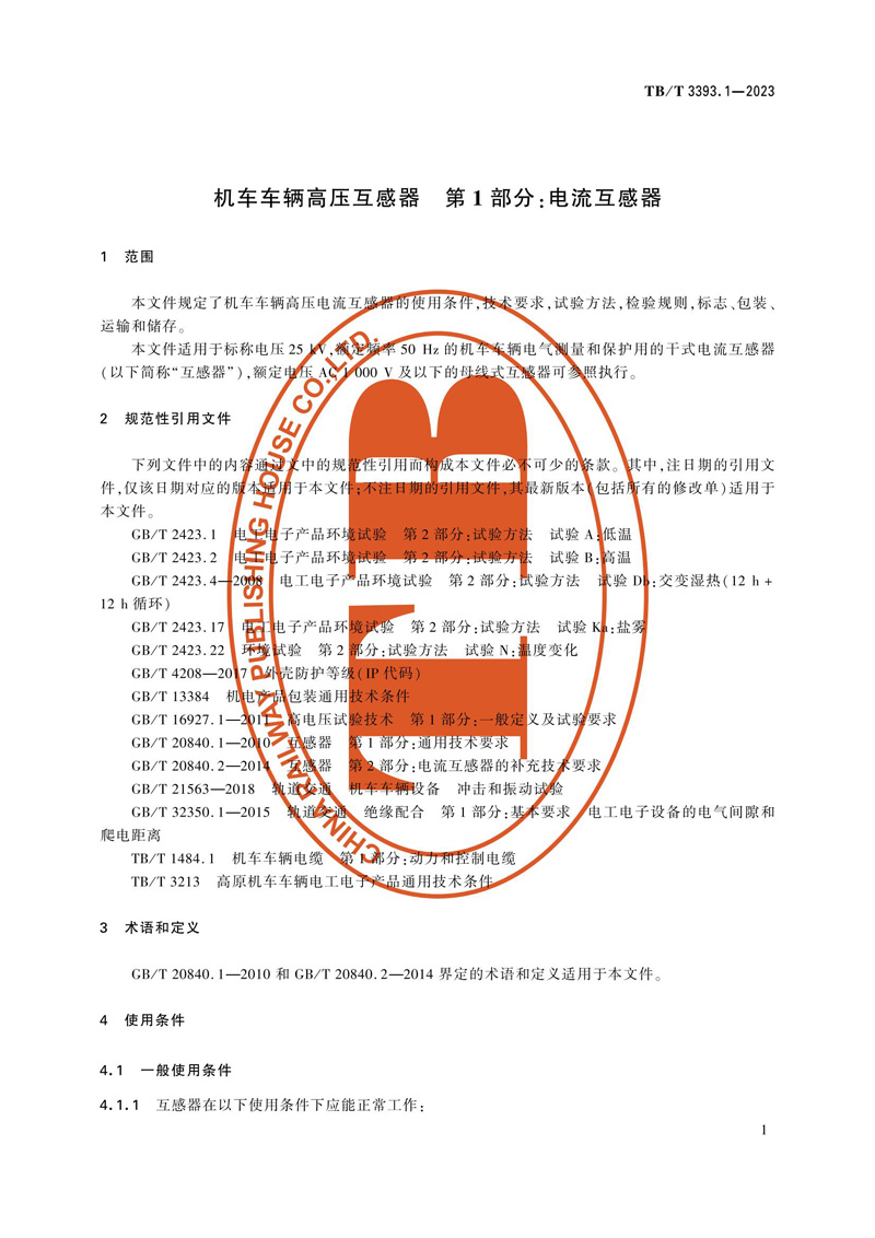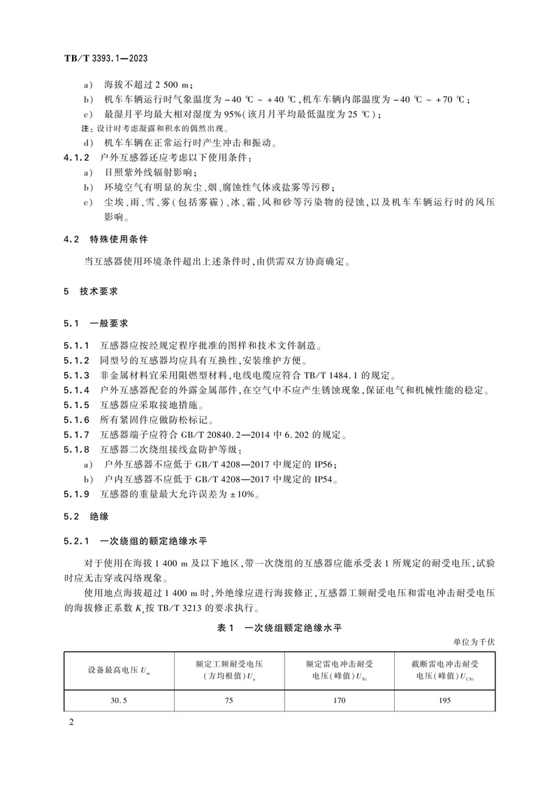 3393.1-2015。本文件规定了机车车辆高压电流互感器的使用条件、技术要求、试验方法、检验规则、标志、包装、运输和储存。本文件适用于标称电压25