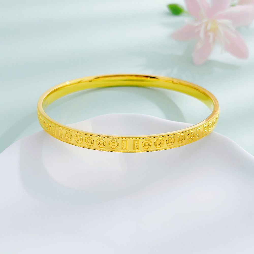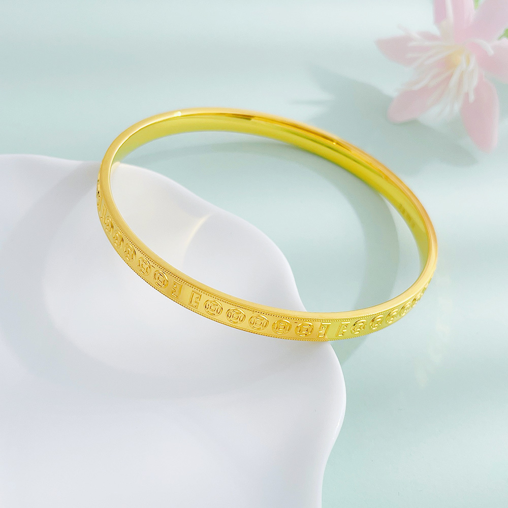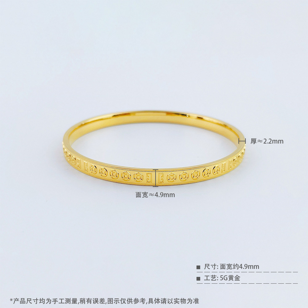 【限时克减150元】足金999 5G黄金空心固口手镯传福招财铜钱手镯(面宽约4.7-5.1mm)(BE5GSZ00047),(预售产品下单后不退款不退货不换货不补差价)