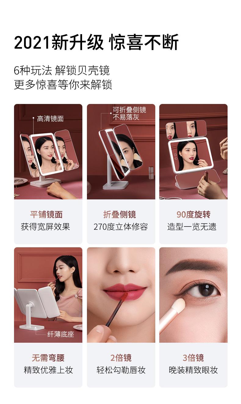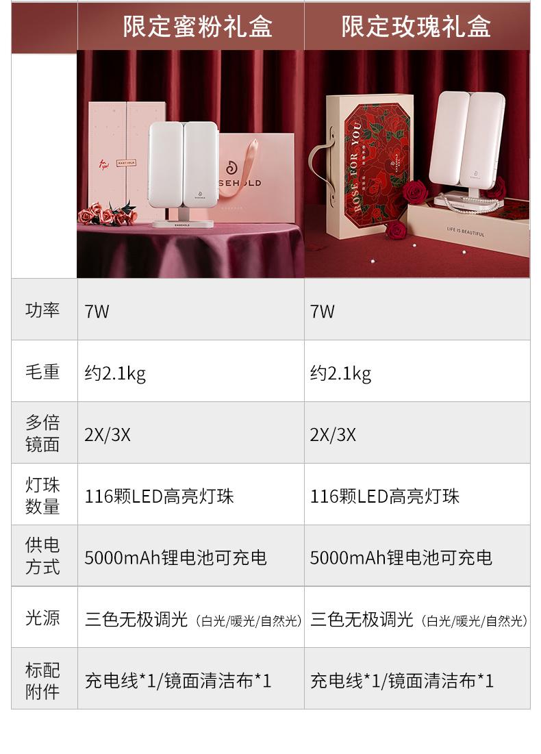 【限定玫瑰礼盒】EASEHOLD忆镜led贝壳化妆镜高级实用礼物送女生 YJ