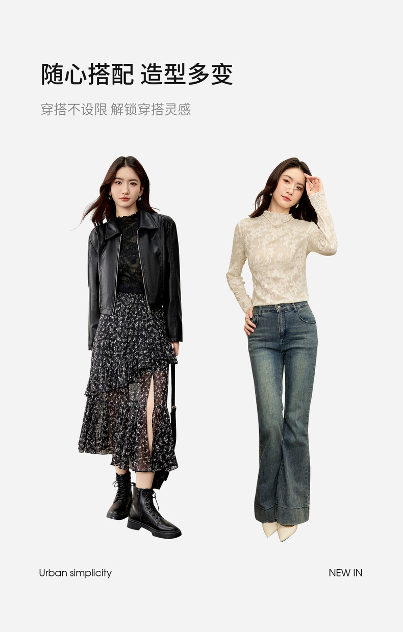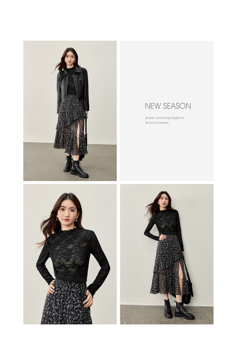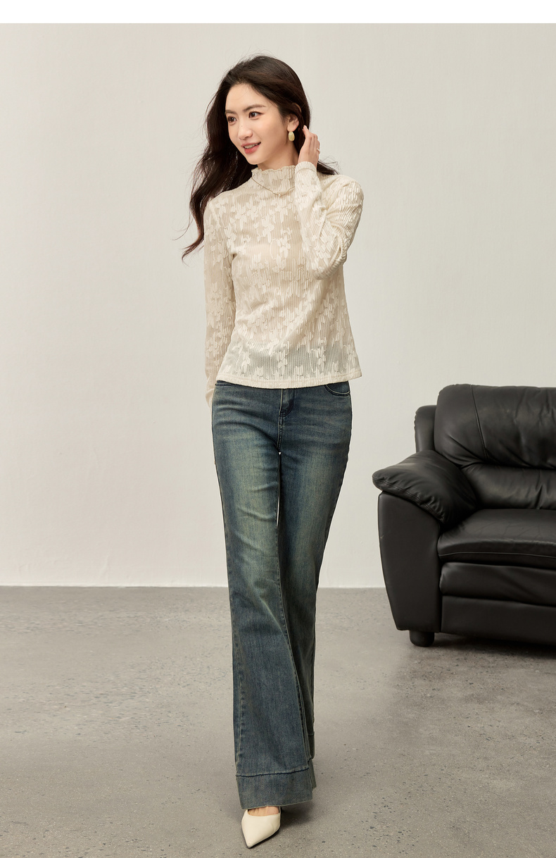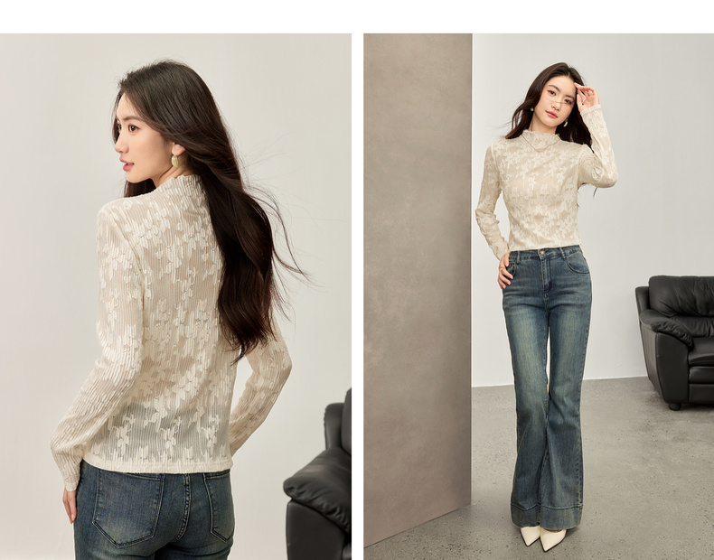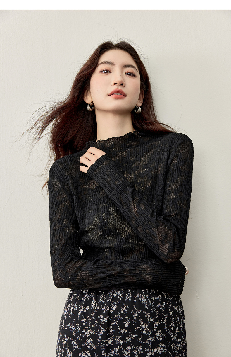 【内购】【花卉肌理】优雅通勤半高领修身弹力长袖可打底蕾丝衫-153SA2834