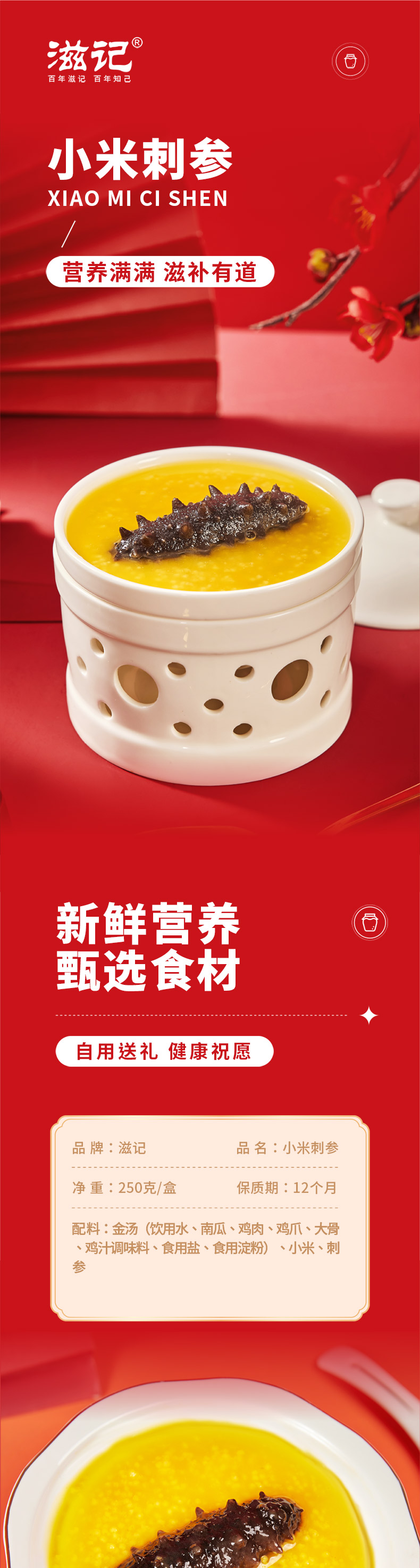 滋记小米刺参*3盒(250g/盒 海参小米粥)生产日期: 3月
