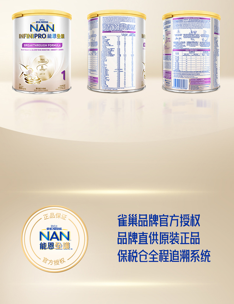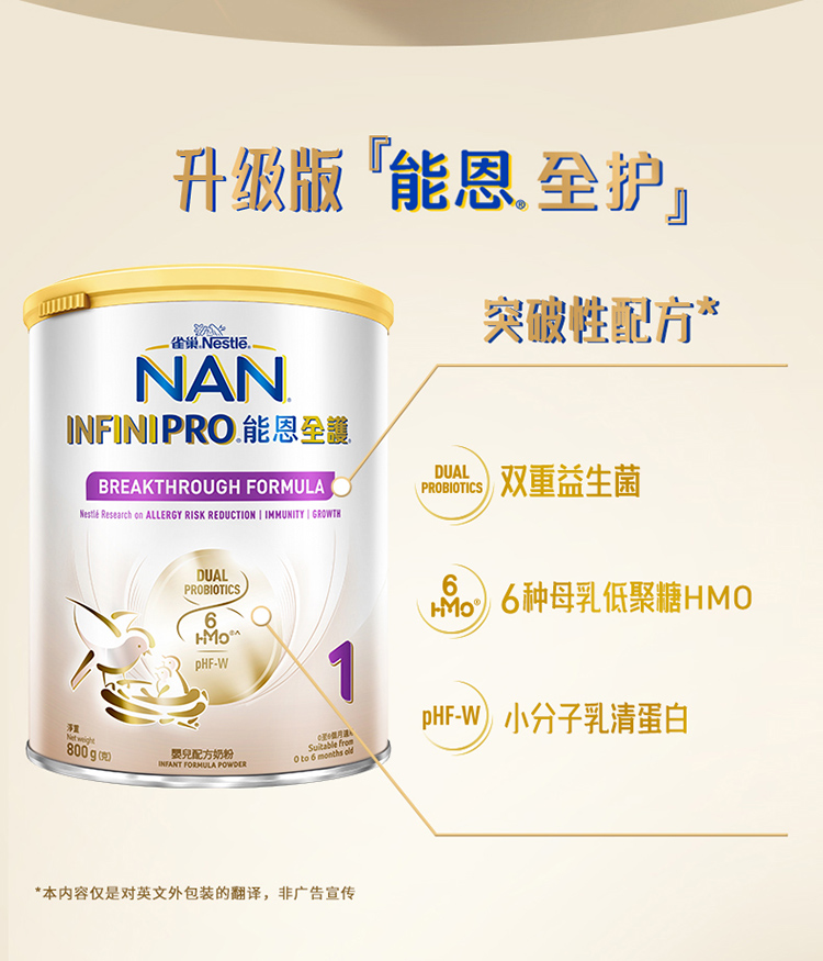 【跨境进口】1段800g义乌仓 | Nestle港版雀巢能恩全护6HMO婴儿配方奶粉1段800g,效期27年2月| 报关后不支持退换货,介意慎拍