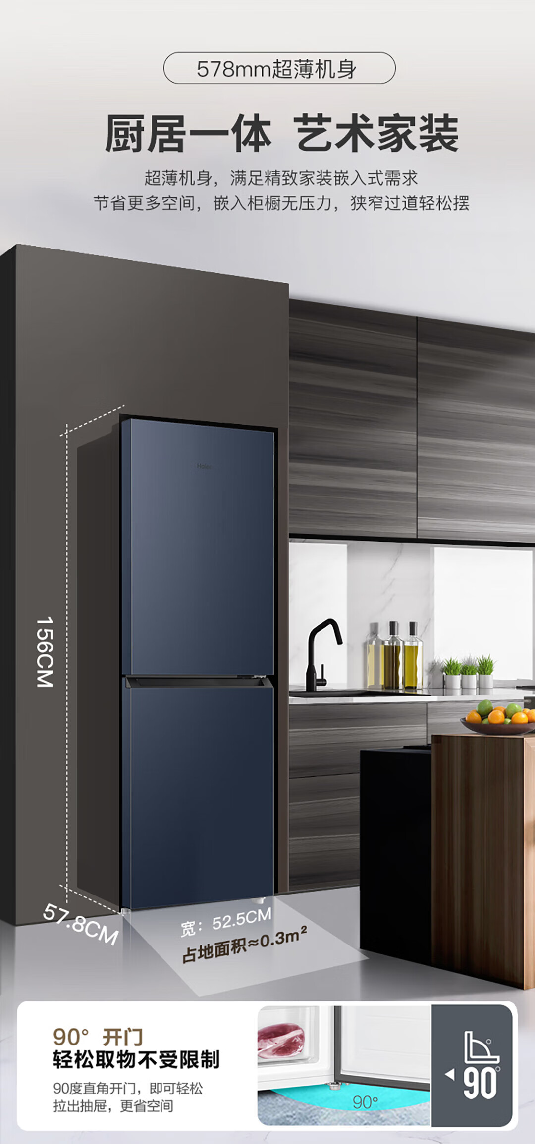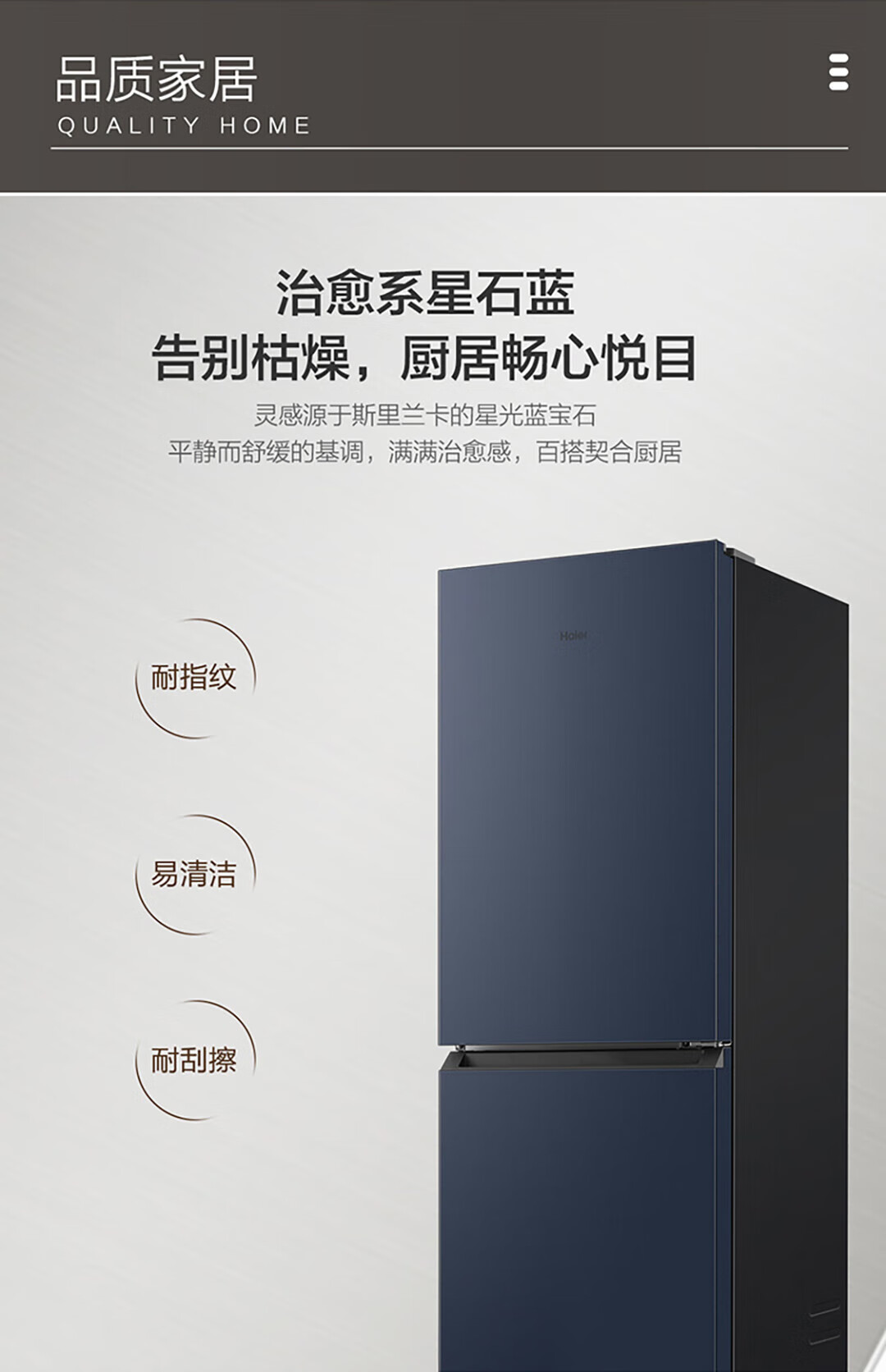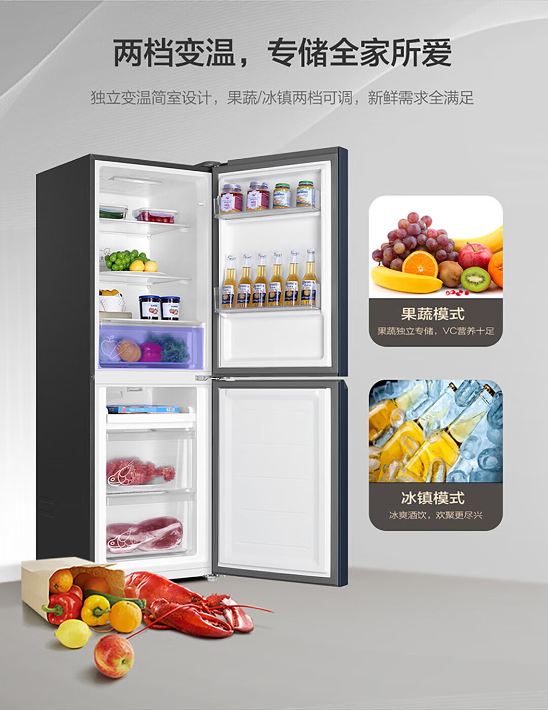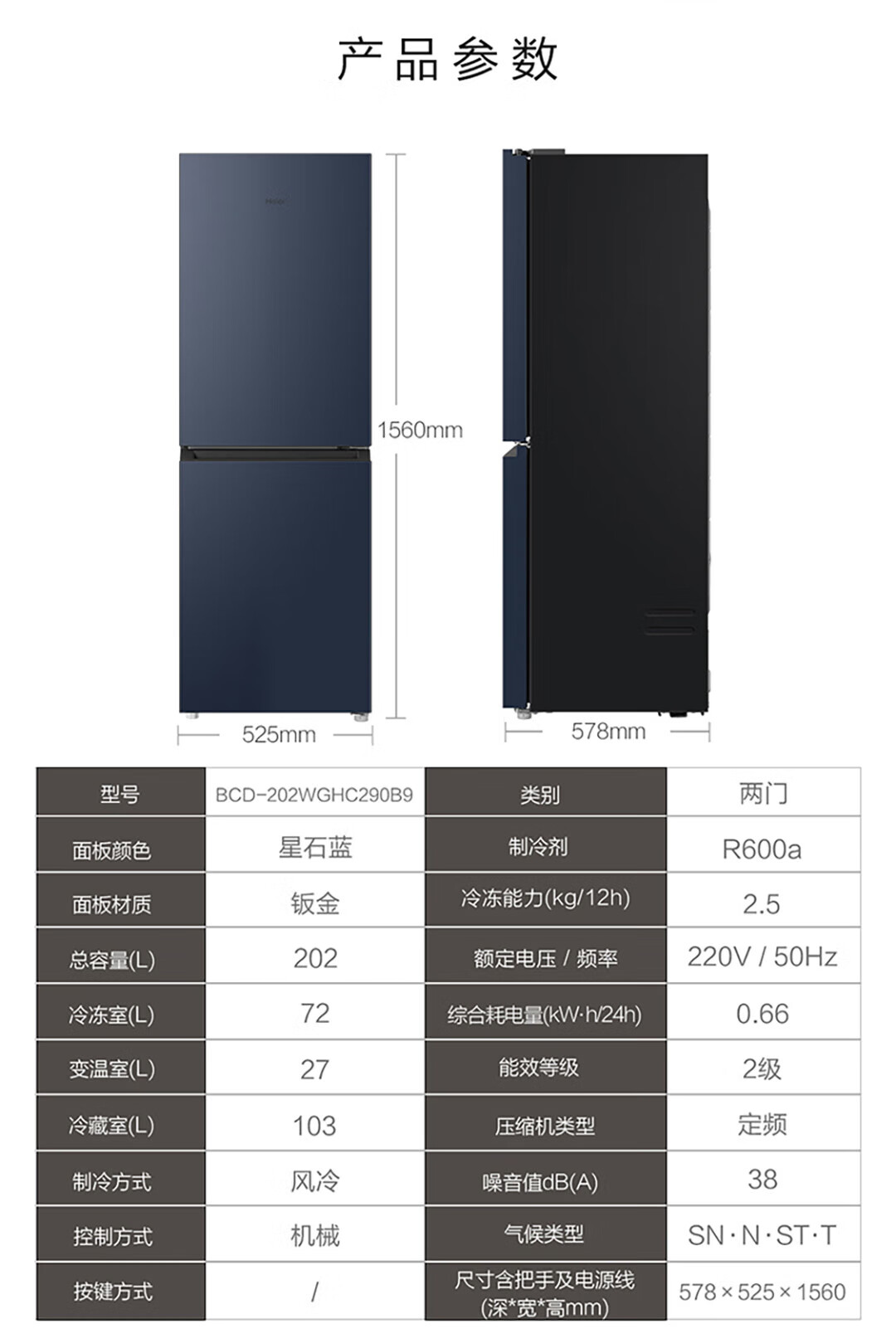 海尔(Haier)冰箱 BCD-202WGHC290B9 202升双门二门风冷无霜超薄小型家用电冰箱节能省电小冰箱