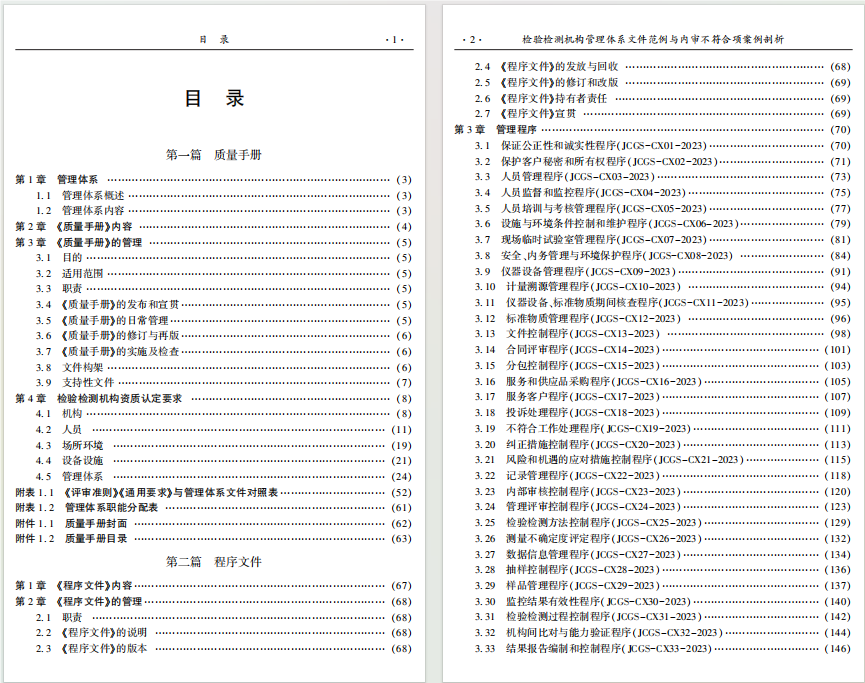 检验检测机构管理体系文件范例与内审不符合项案例剖析