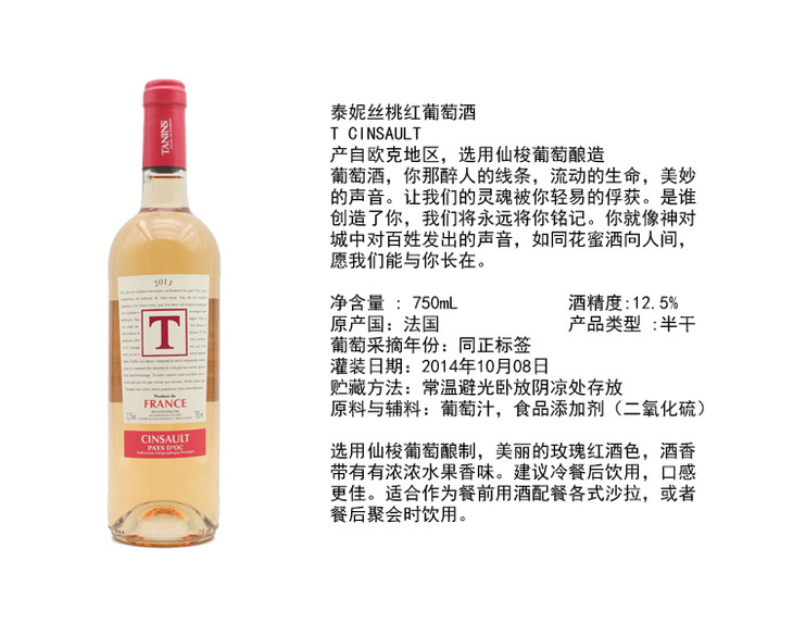 【双支特惠装】泰妮丝桃红葡萄酒 Tanins - Cinsault Rose 750ml*2
