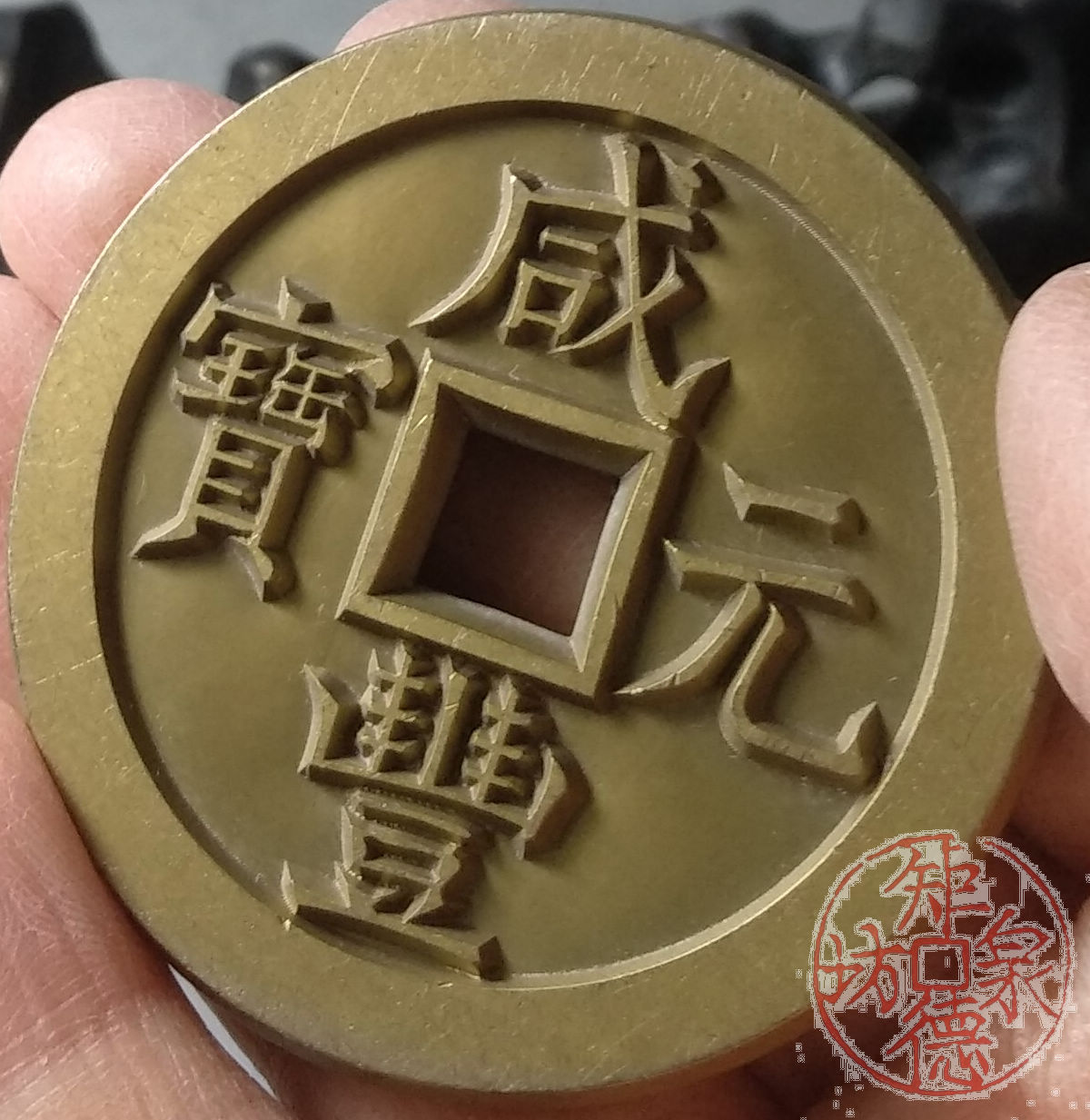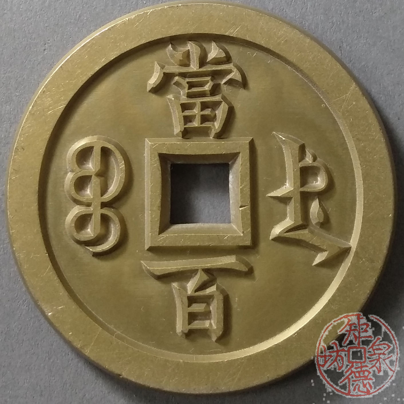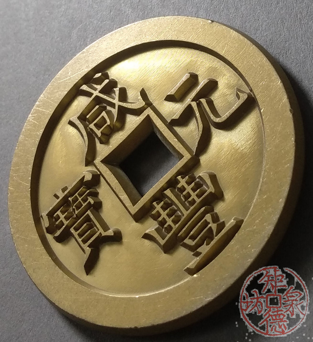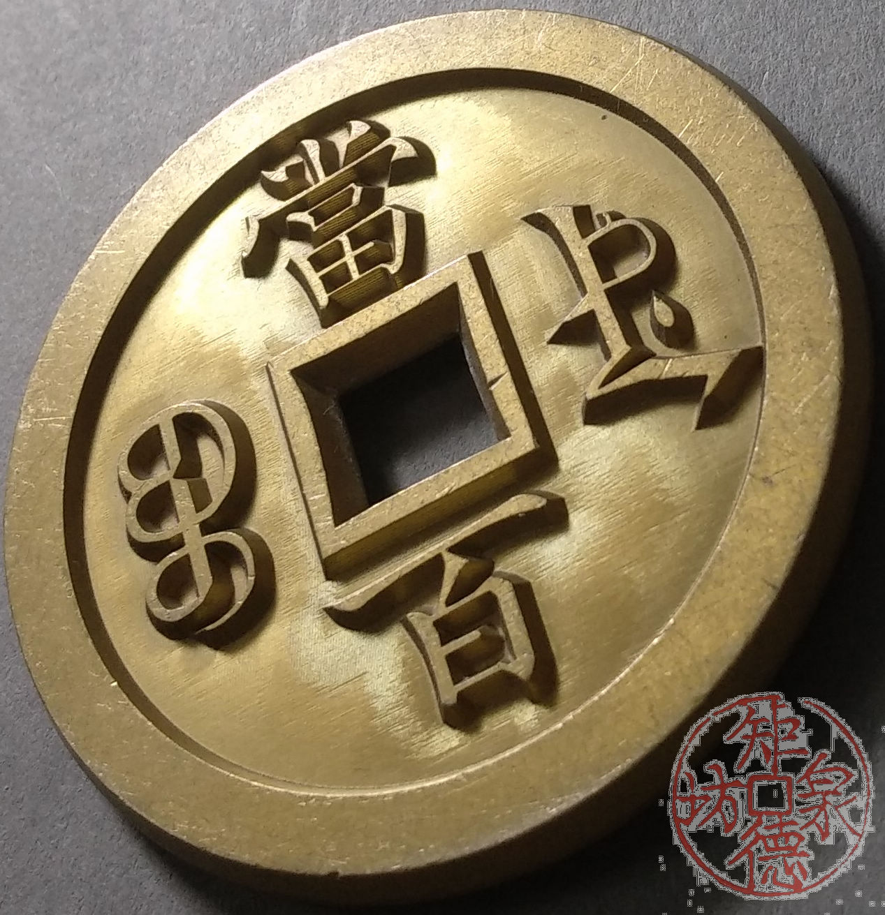 古泉书馆文创 咸丰元宝 宝德当百 雕母 文房铜镇 DM0014