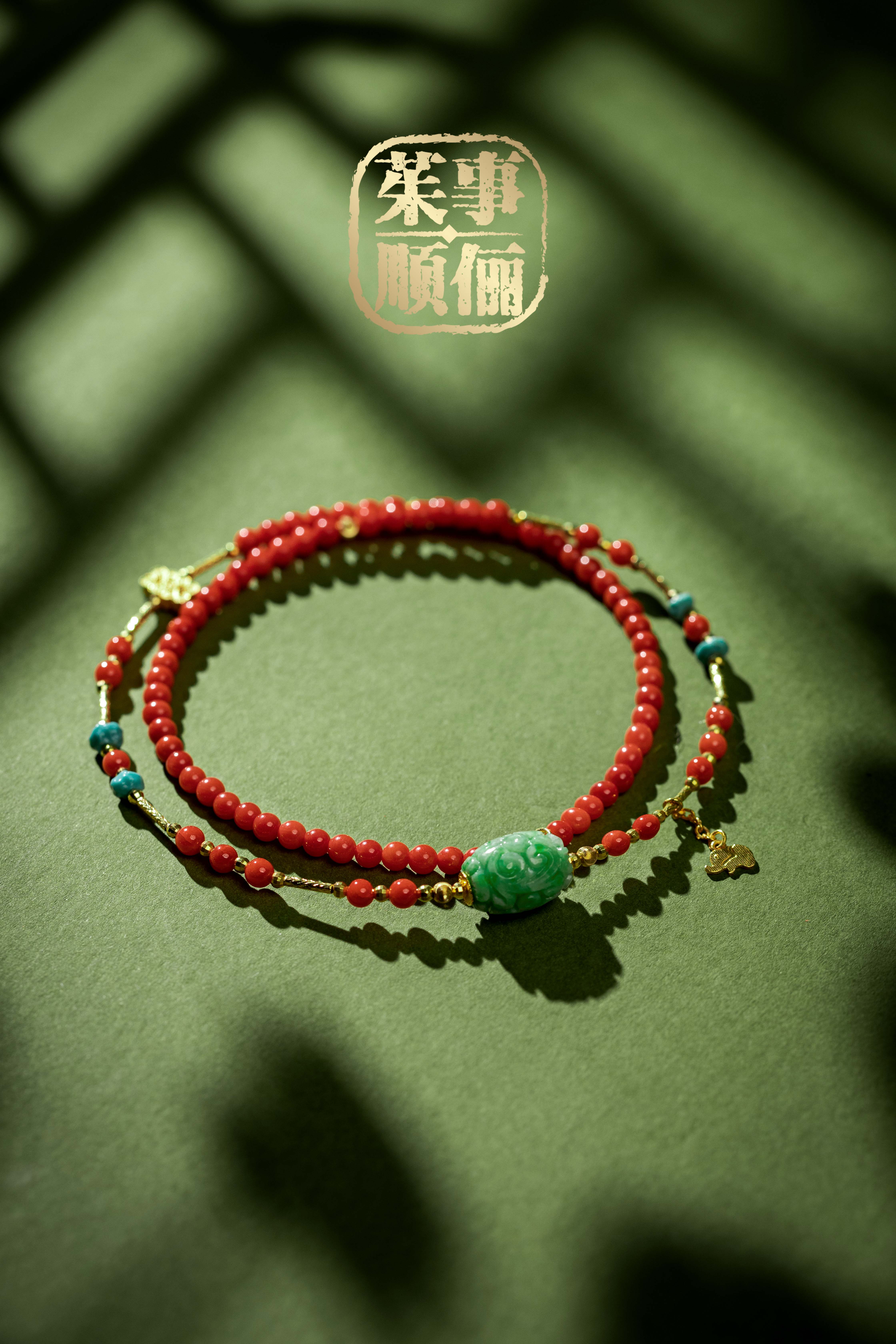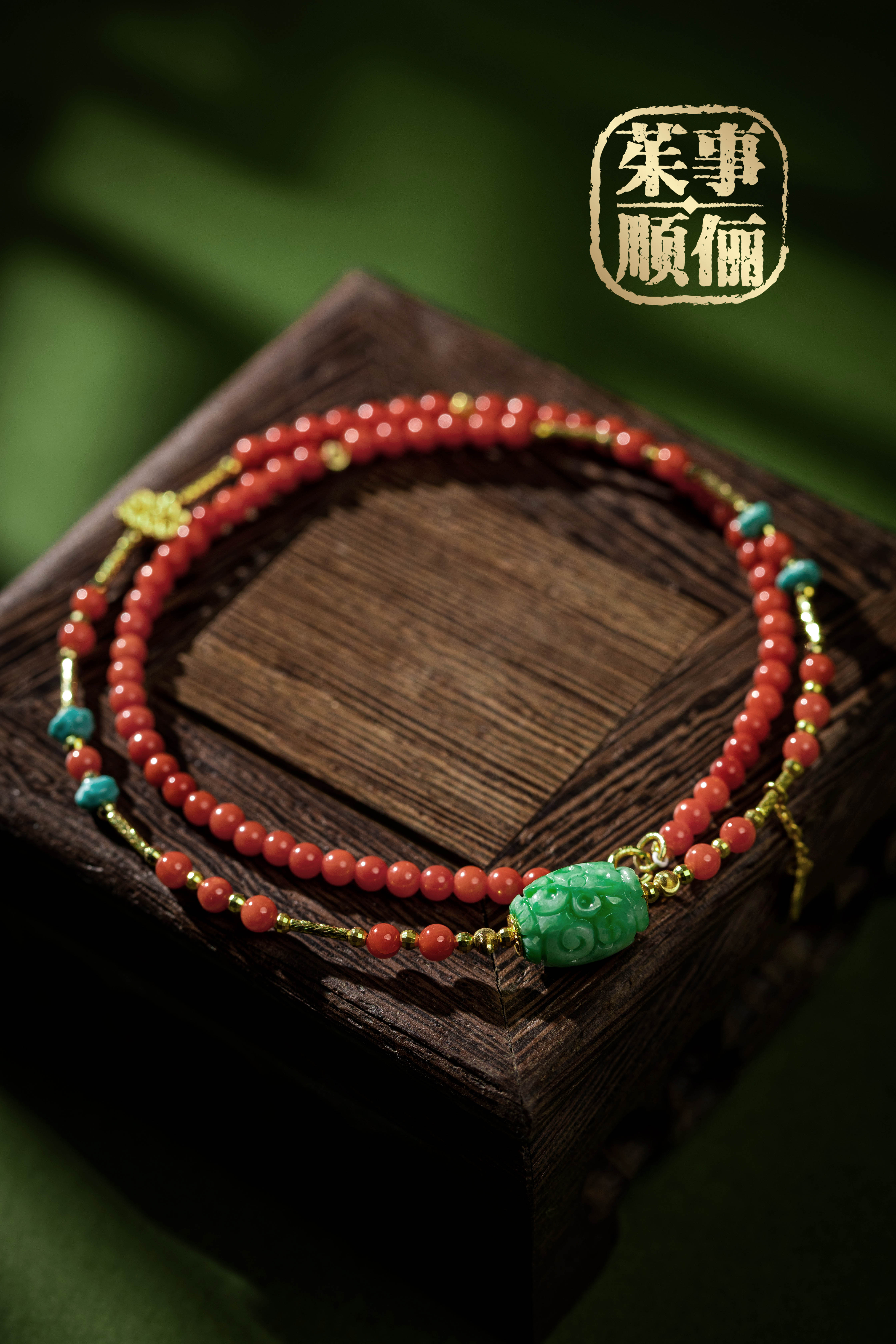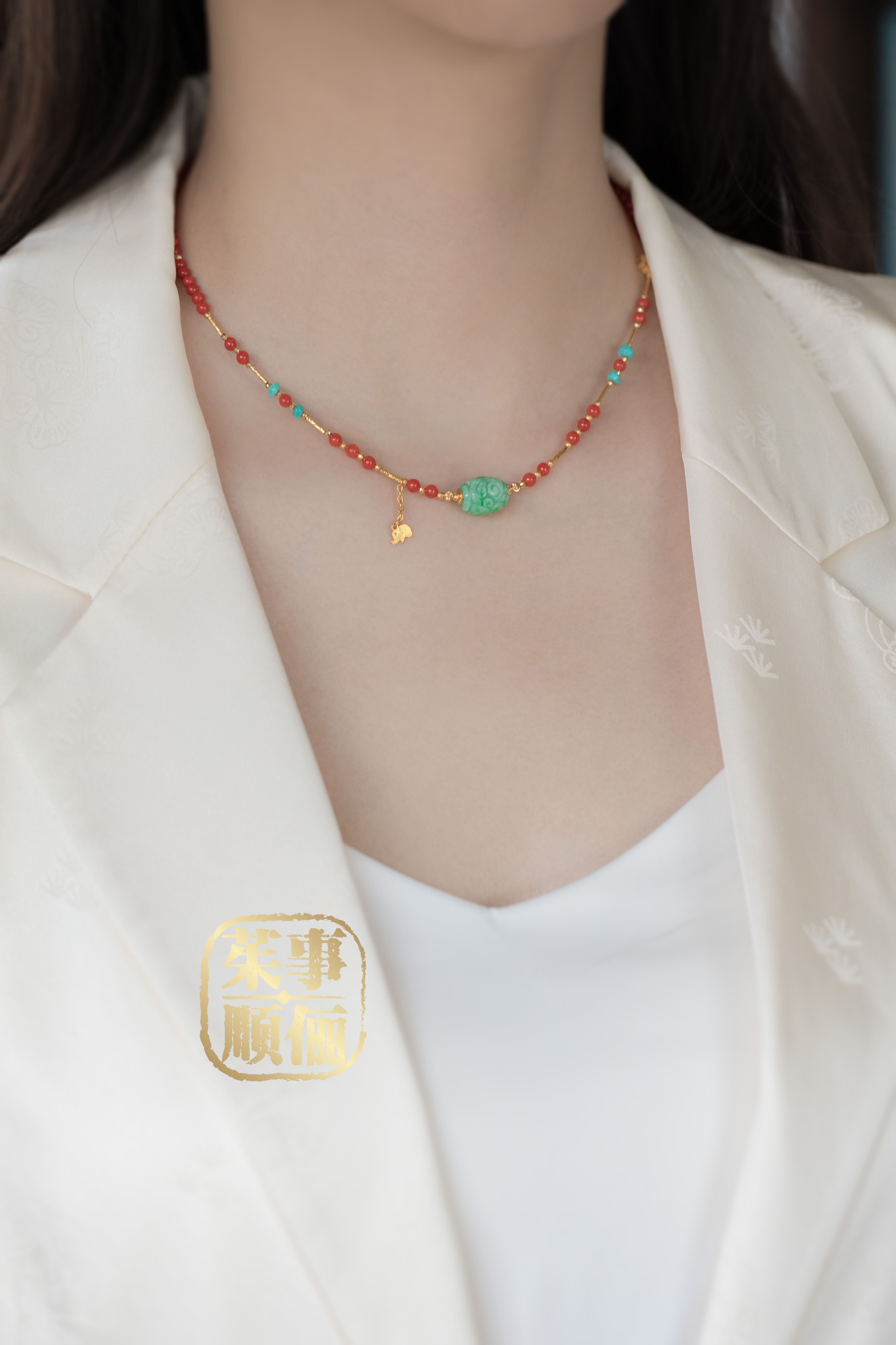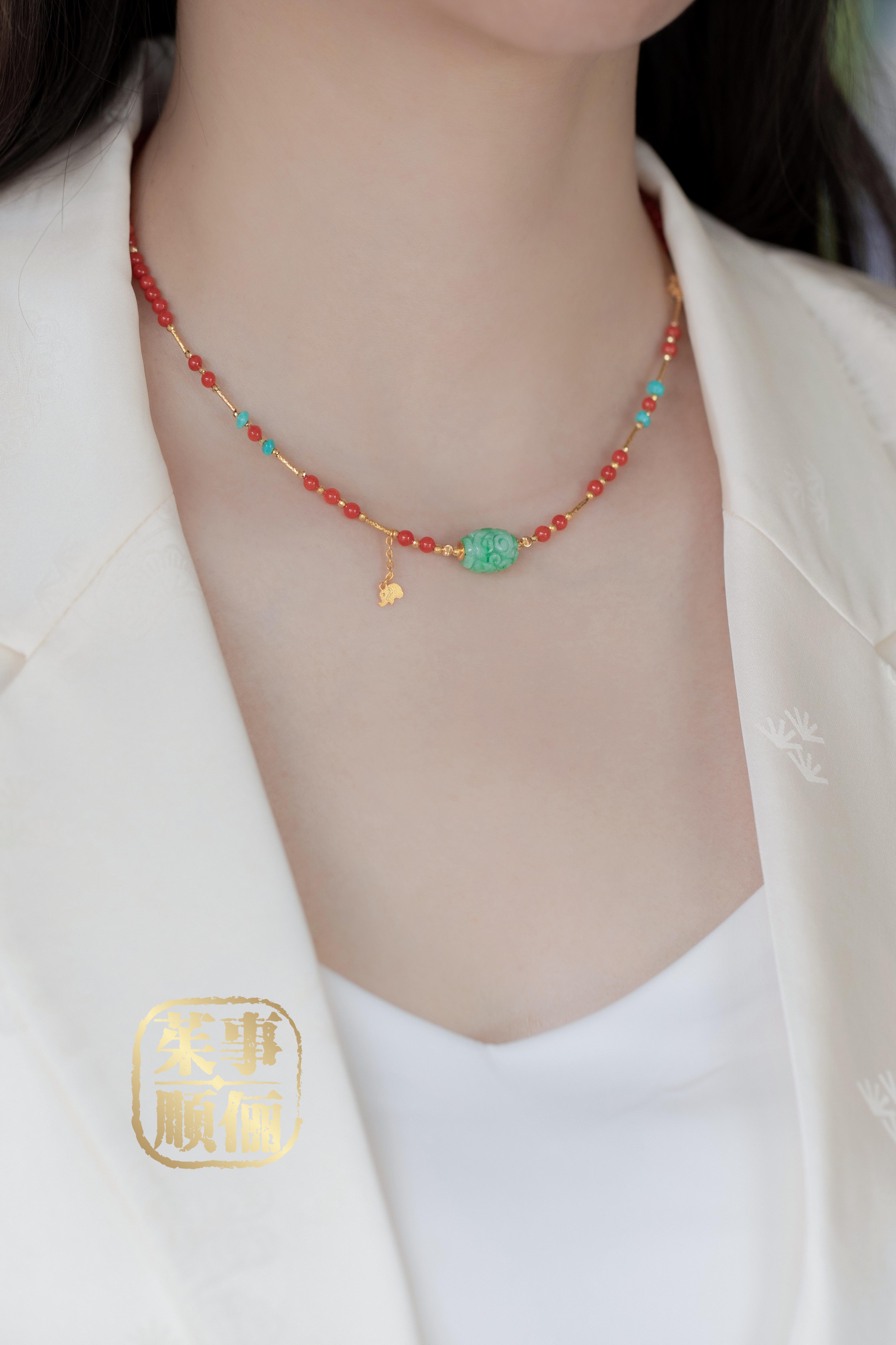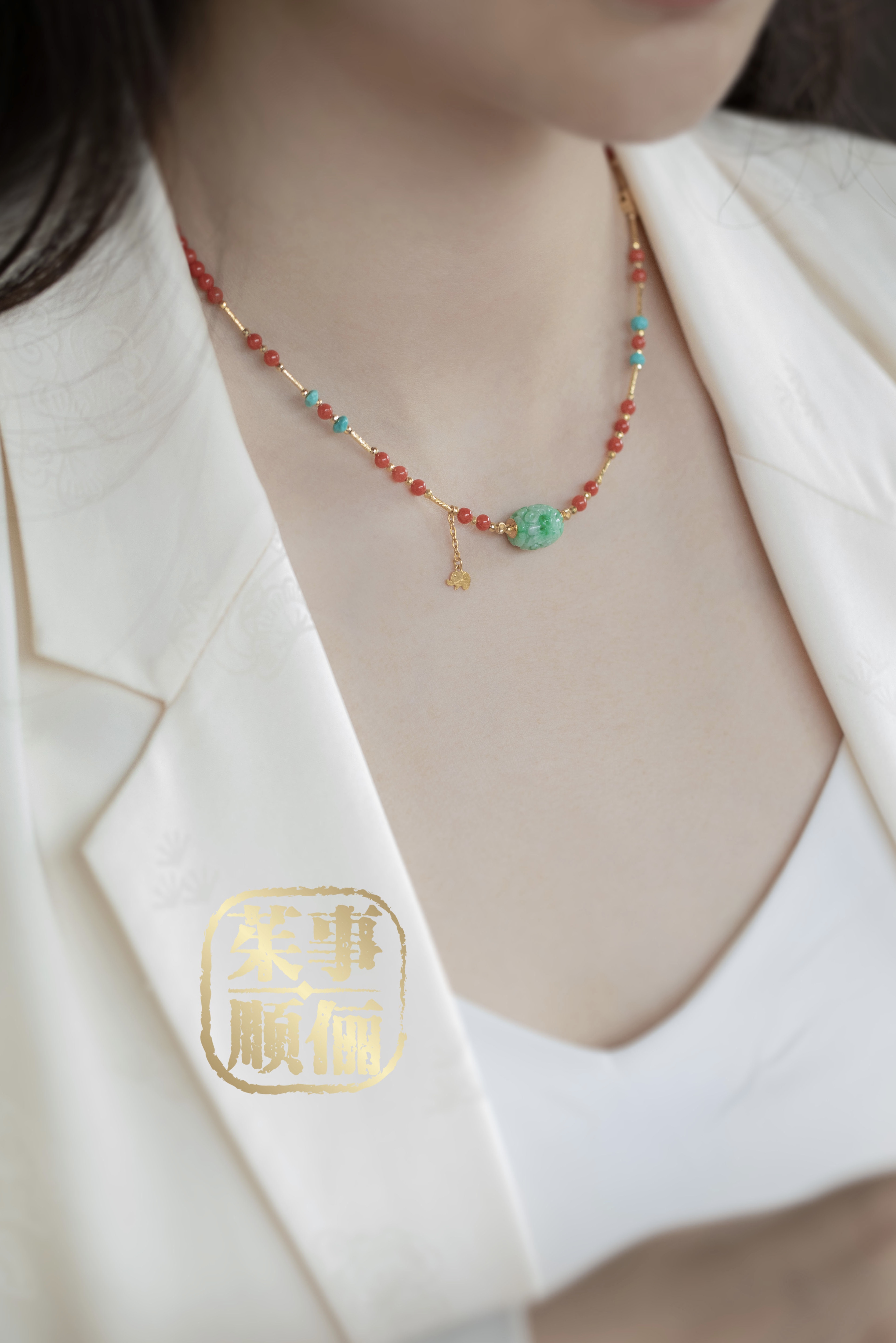 【茱事顺俪】18K黄金翡翠绿松石珊瑚项链