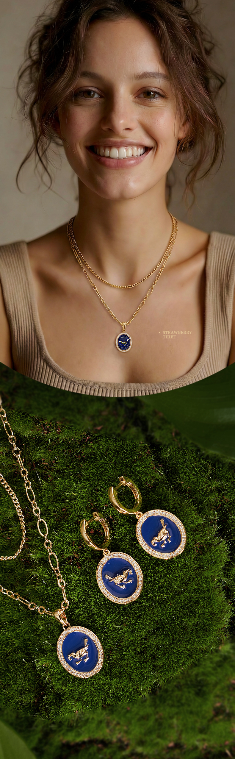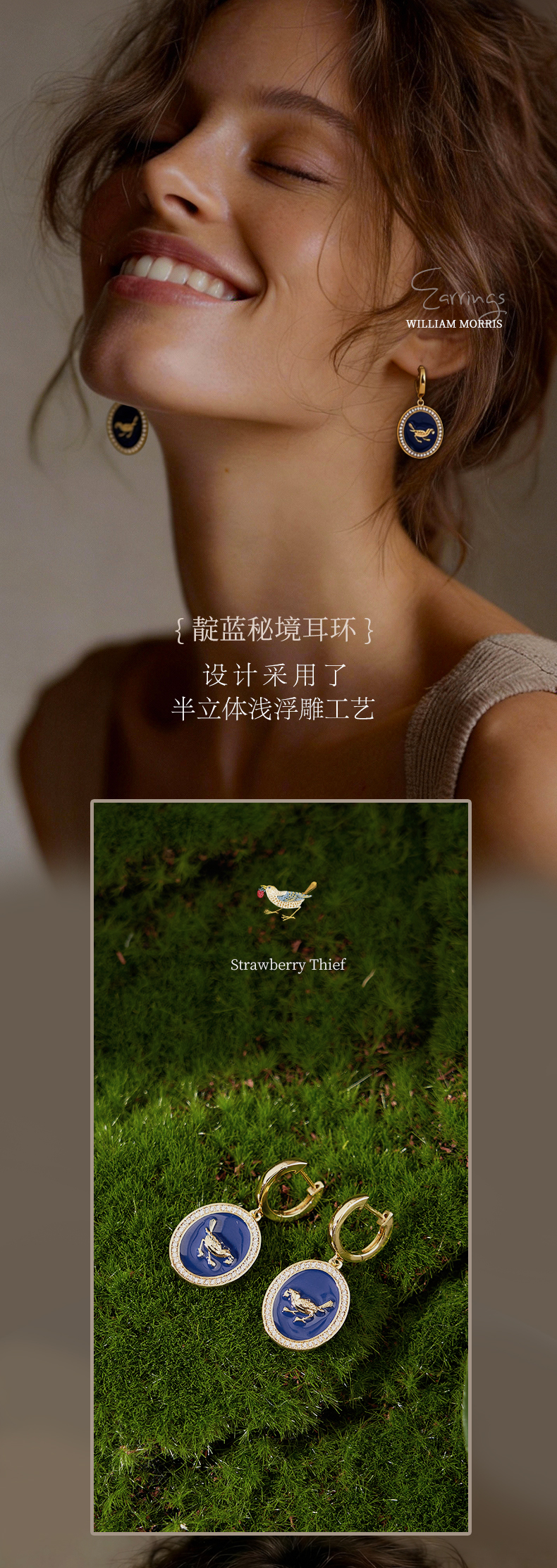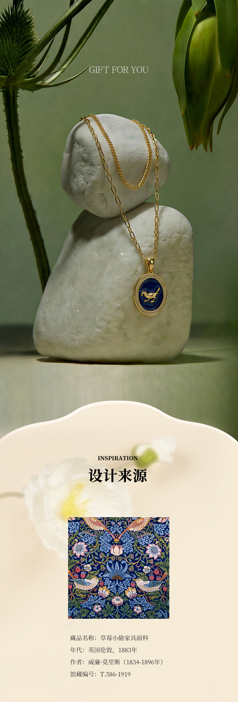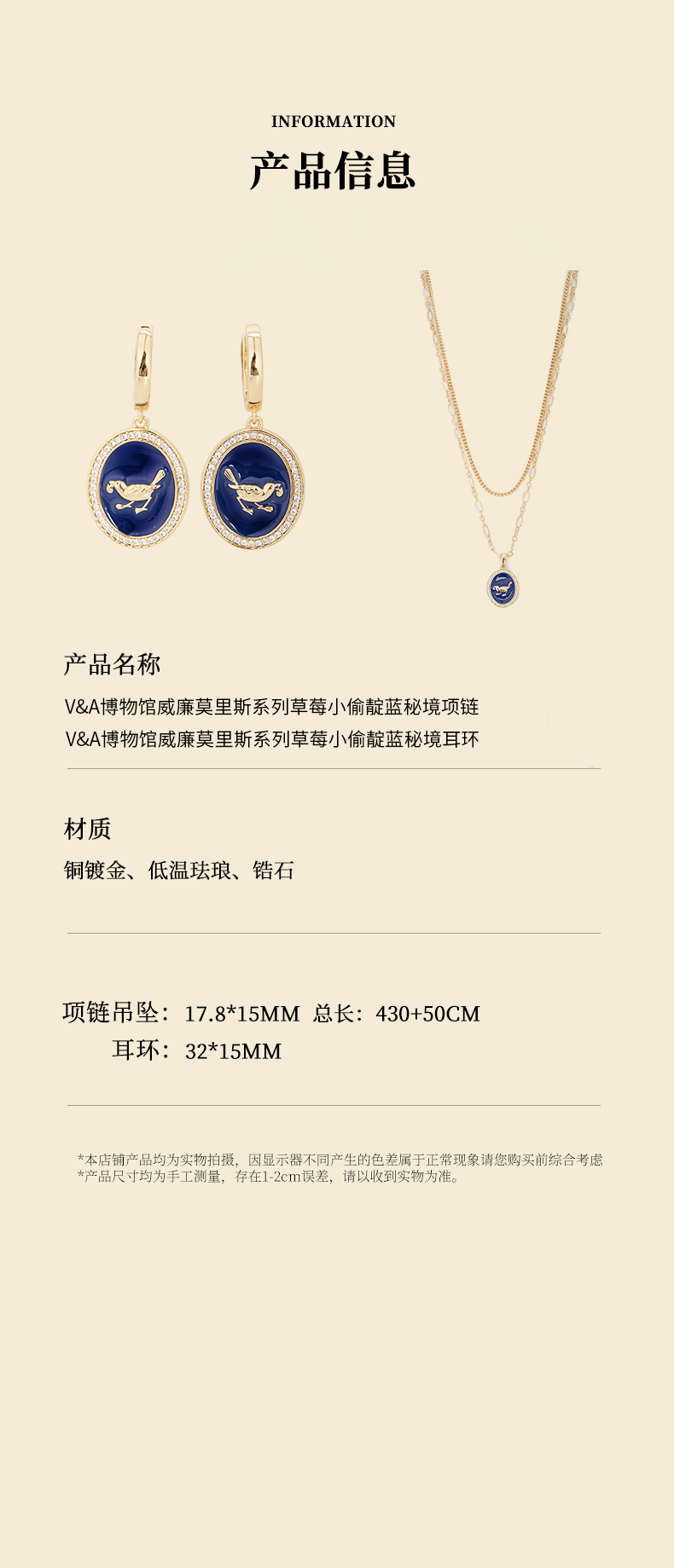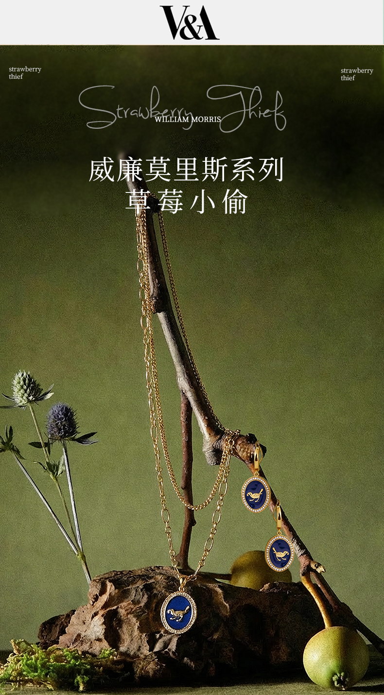 V&A博物馆威廉莫里斯系列草莓小偷靛蓝秘境项链 耳环