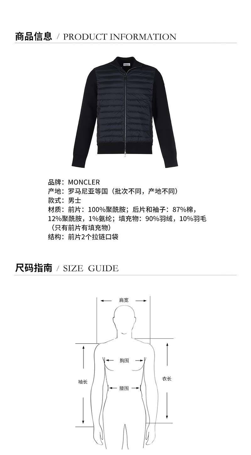 Moncler/蒙克莱【22春夏新款】男士薄款高领鹅绒拉链开衫休闲外套 9B00008 V9100