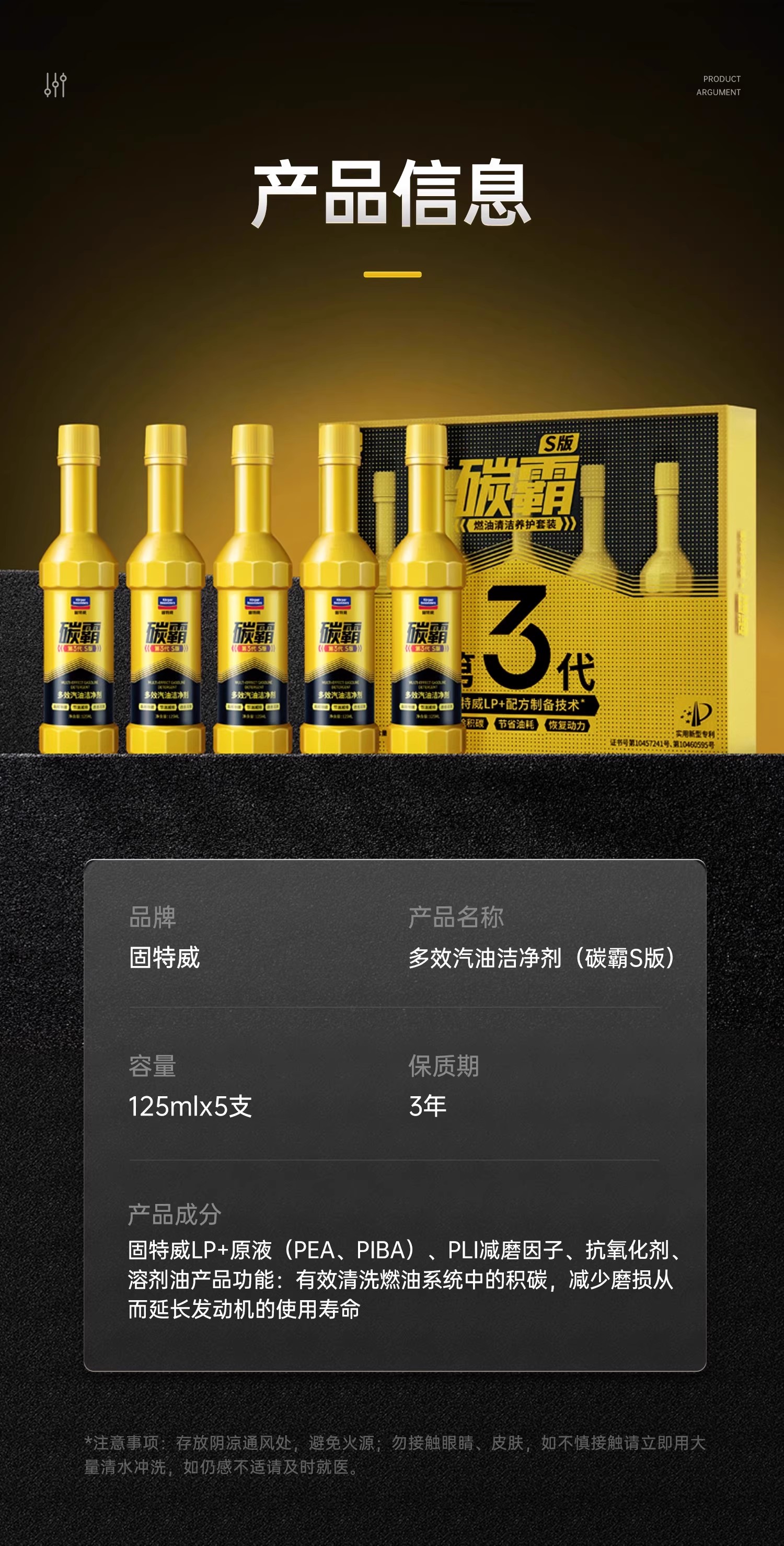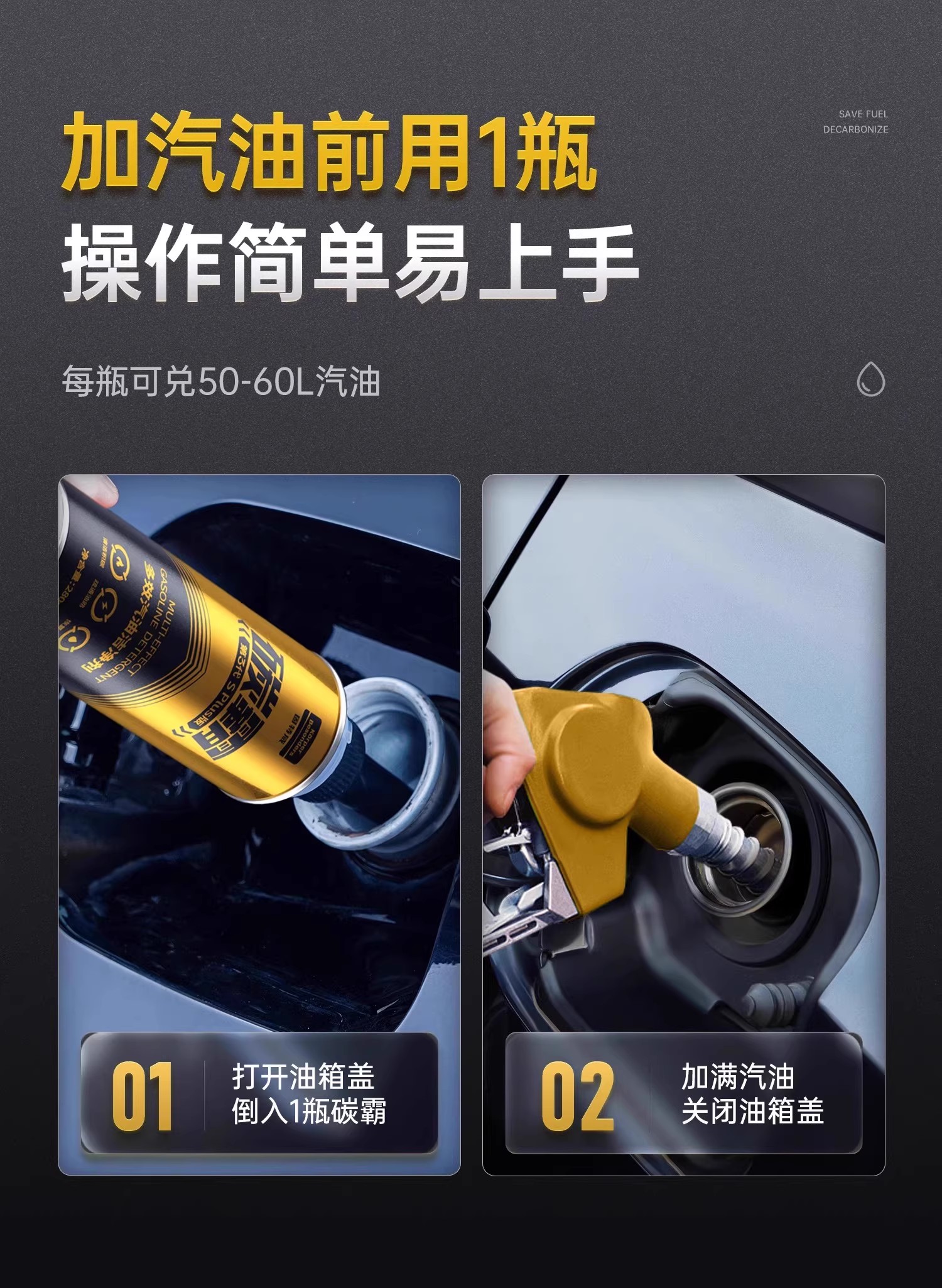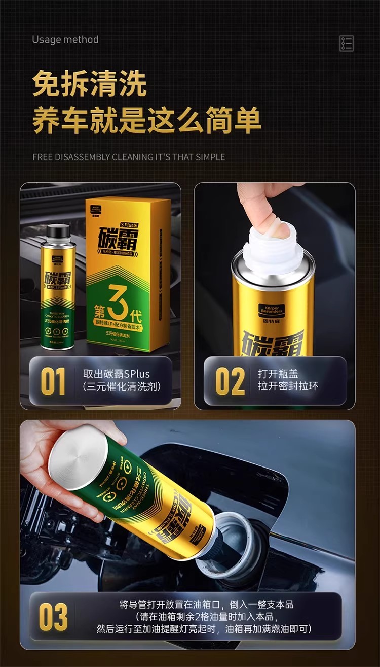 套装礼包含:碳霸S燃油清洁养护套装(五支装)+碳霸多效汽油洁净剂280ml+三元催化清洗剂280ml+发动机抗磨修复剂280ml,平时单独买这些产品要花好几百元,现在只要219元就能全部带回家!