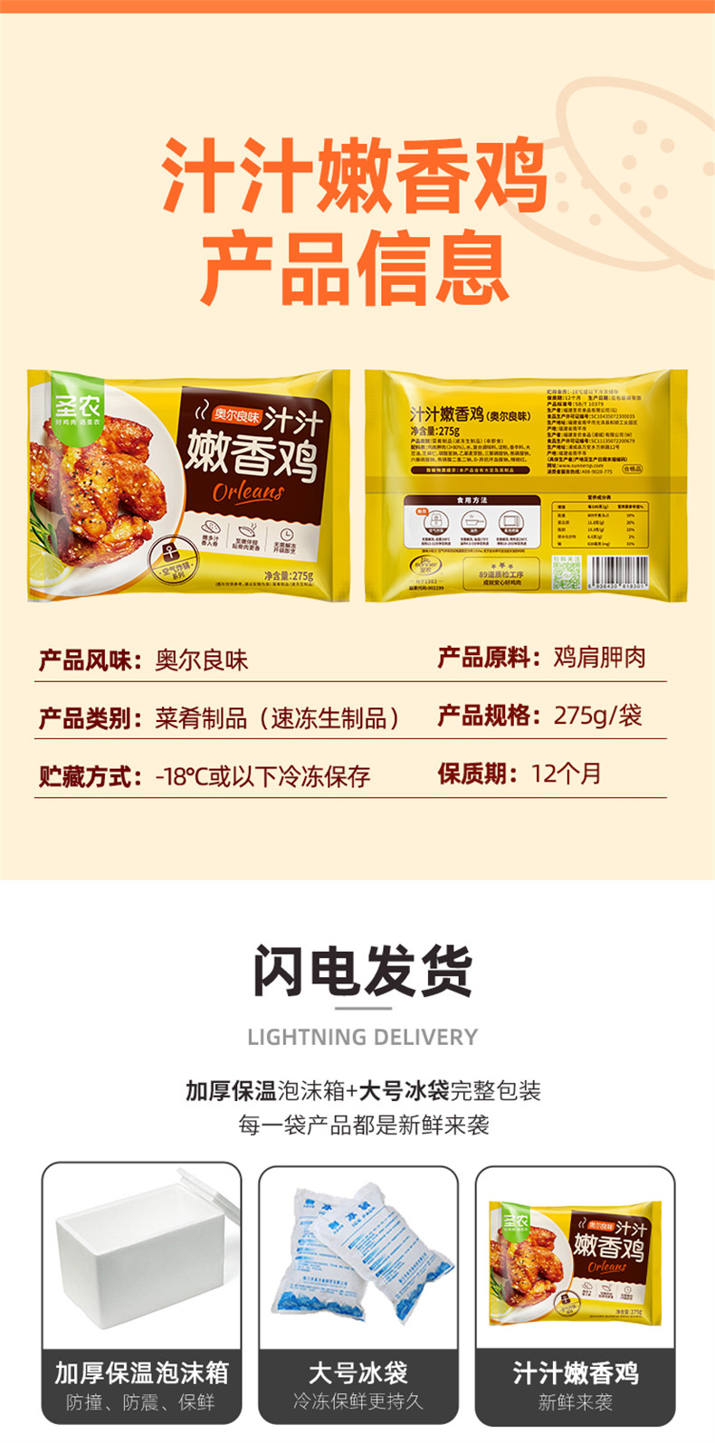 【鲜嫩多汁】圣农 汁汁嫩香鸡 275g*6