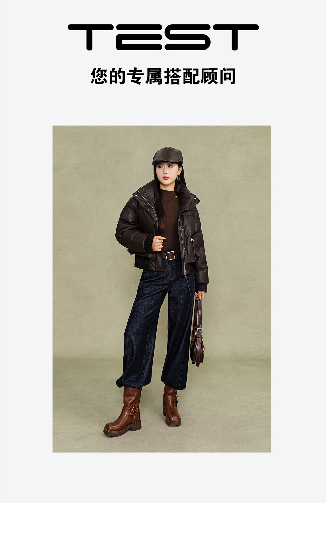 冬上新立领宽松显瘦棕色皮质夹克外套2254153 商品图3