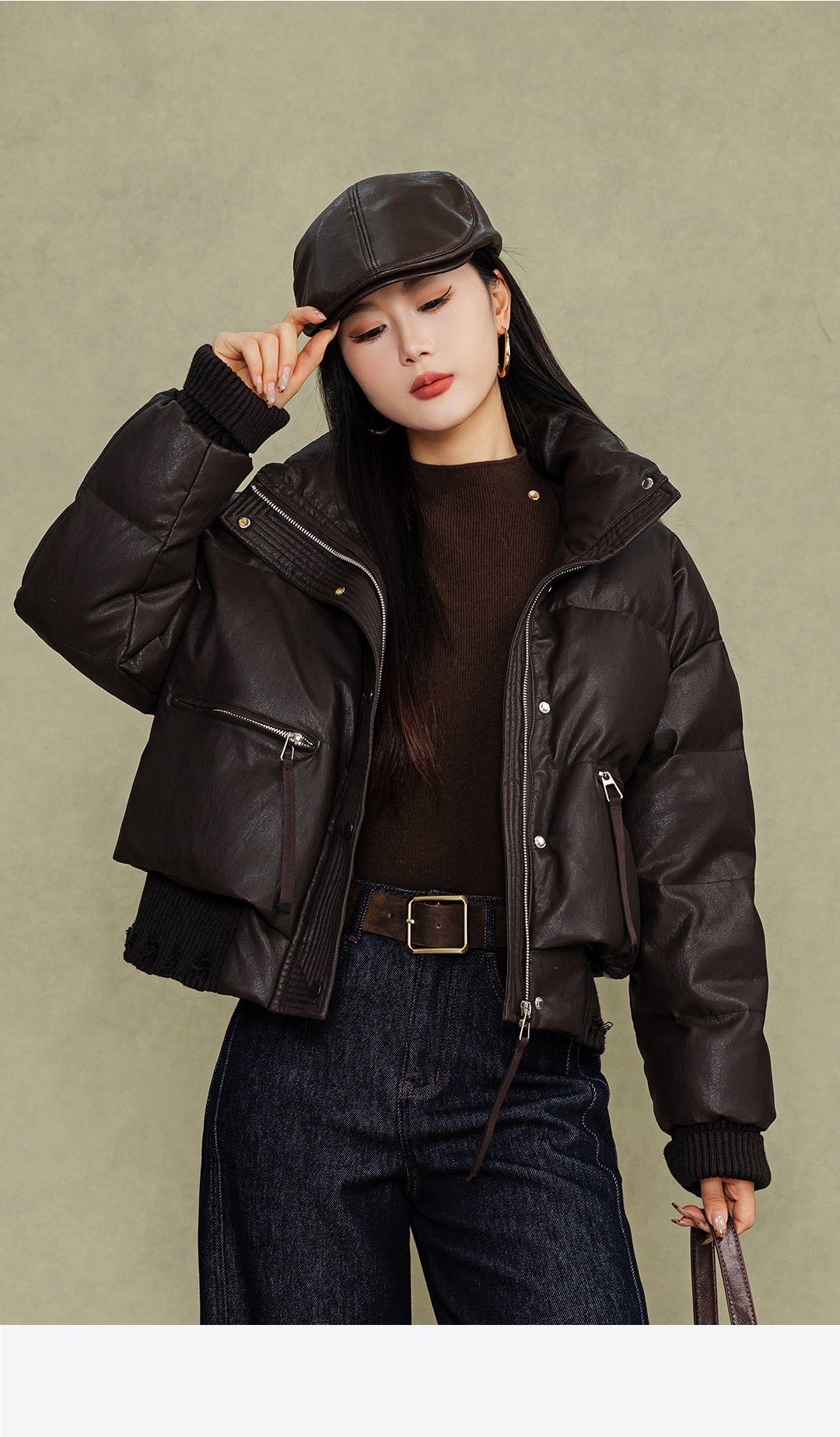 冬上新立领宽松显瘦棕色皮质夹克外套2254153 商品图1