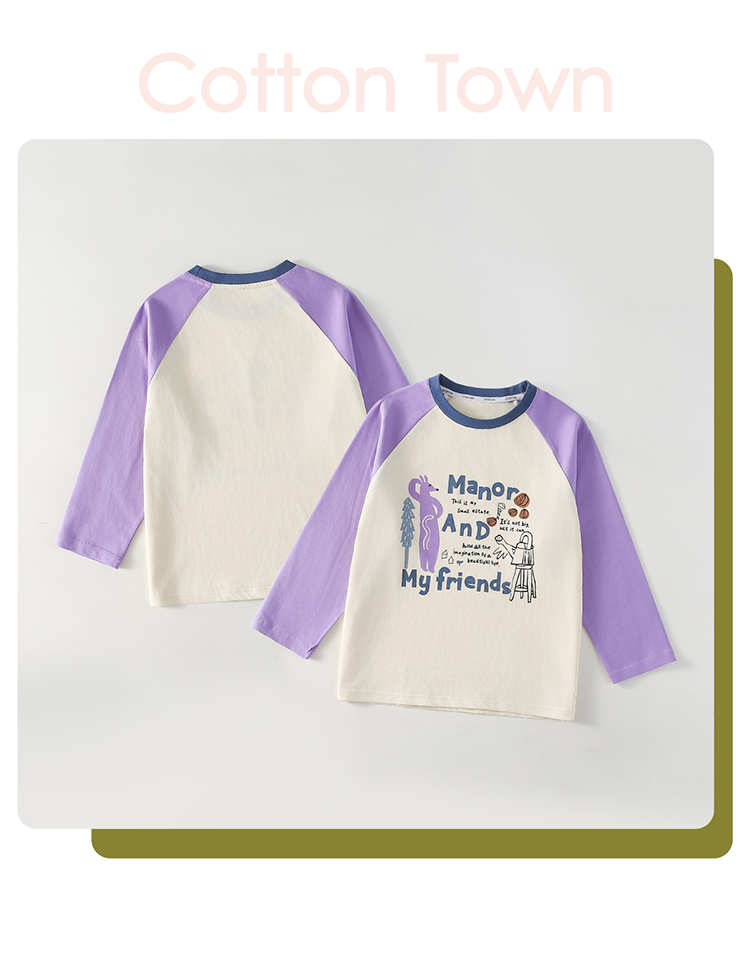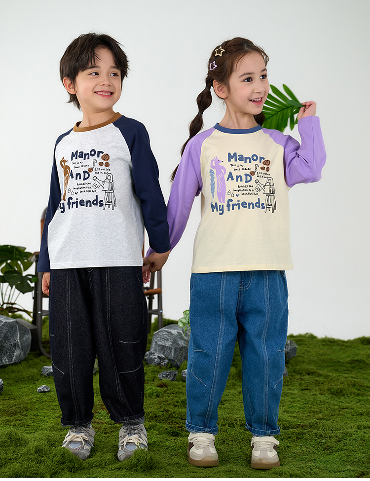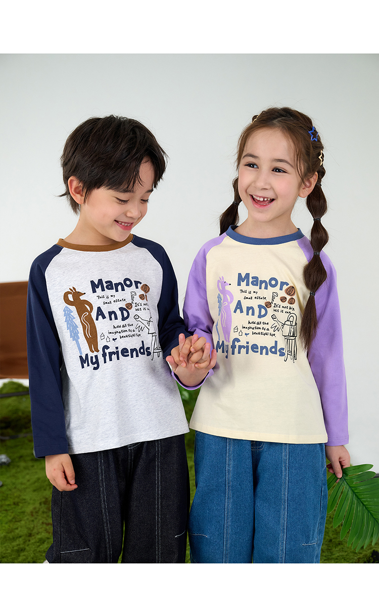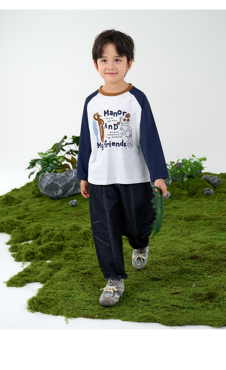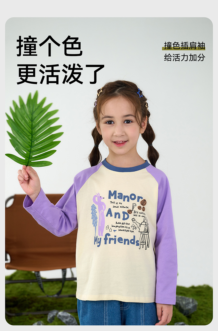 【10A抗菌纯棉】棉花堂休闲撞色插肩袖童装长袖T恤-FA61024
