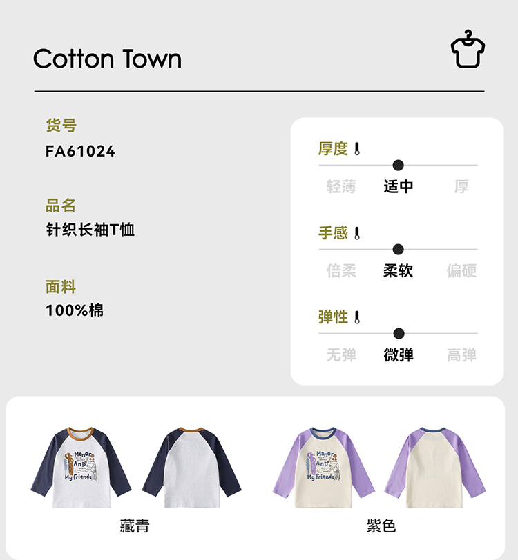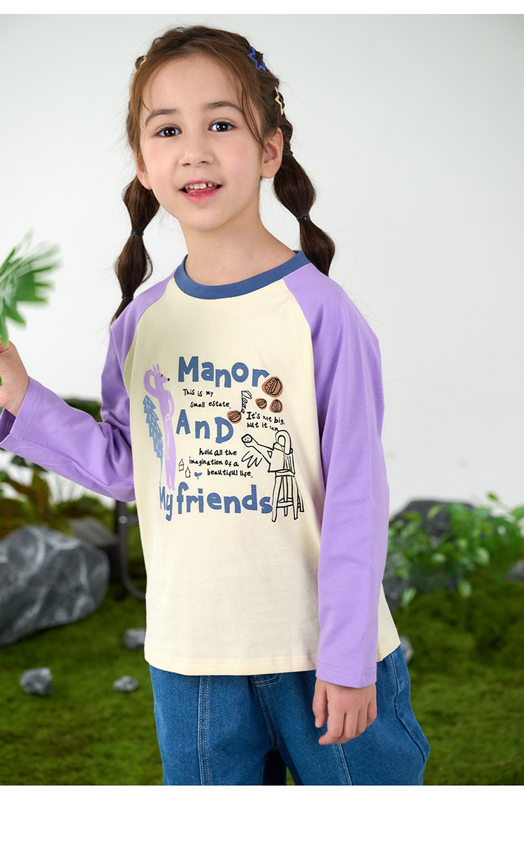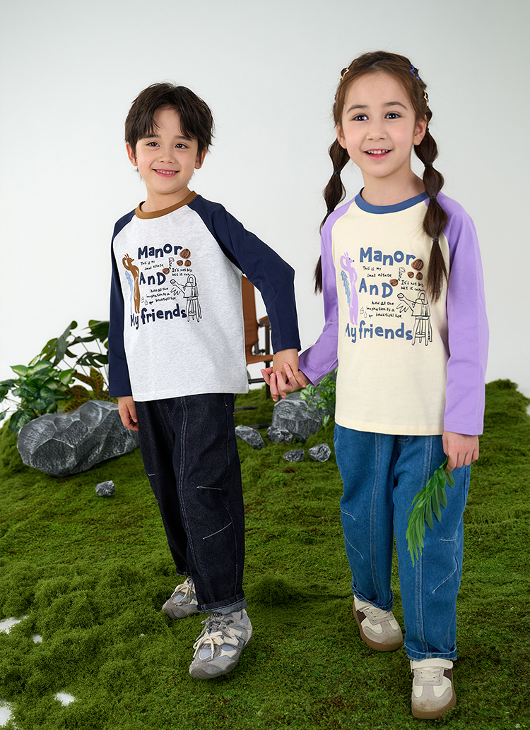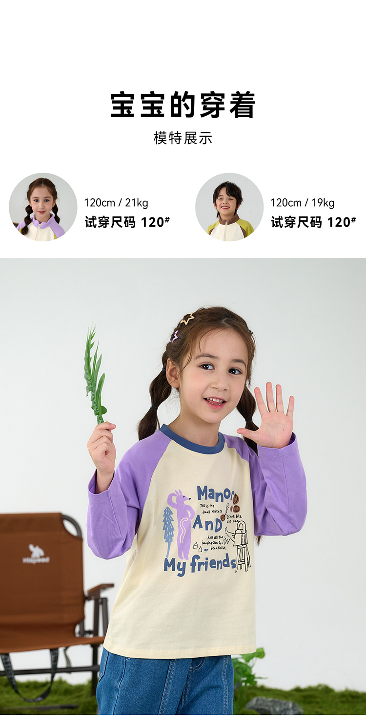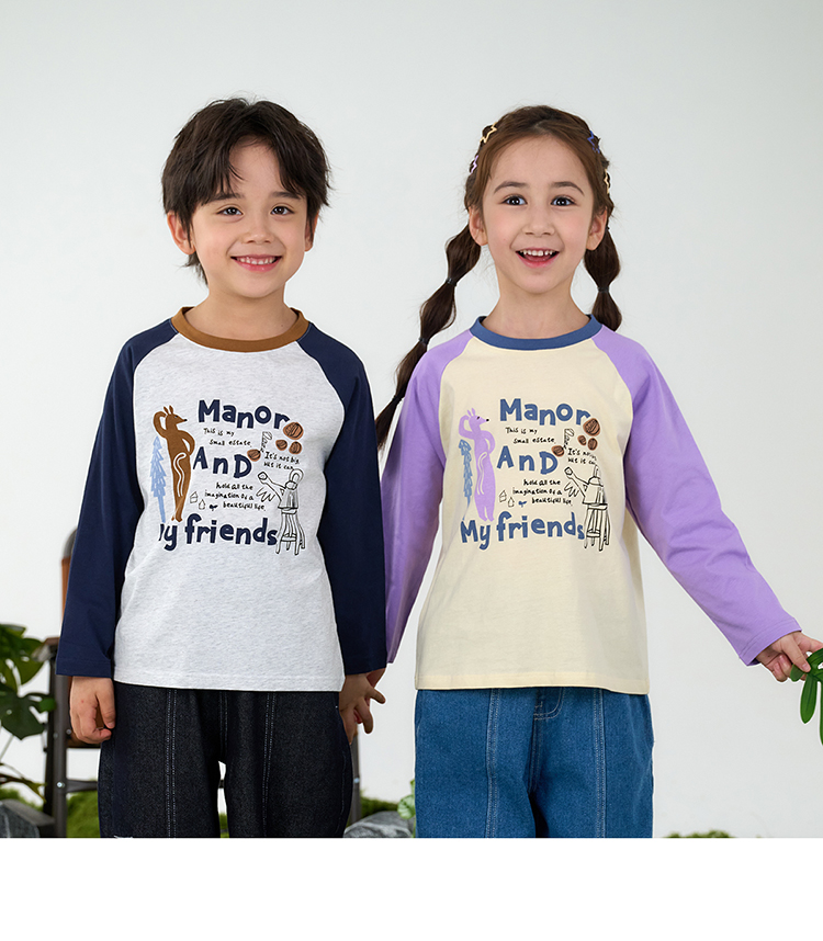 【10A抗菌纯棉】棉花堂休闲撞色插肩袖童装长袖T恤-FA61024