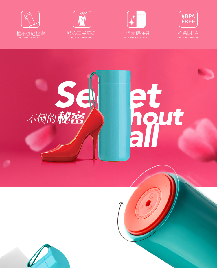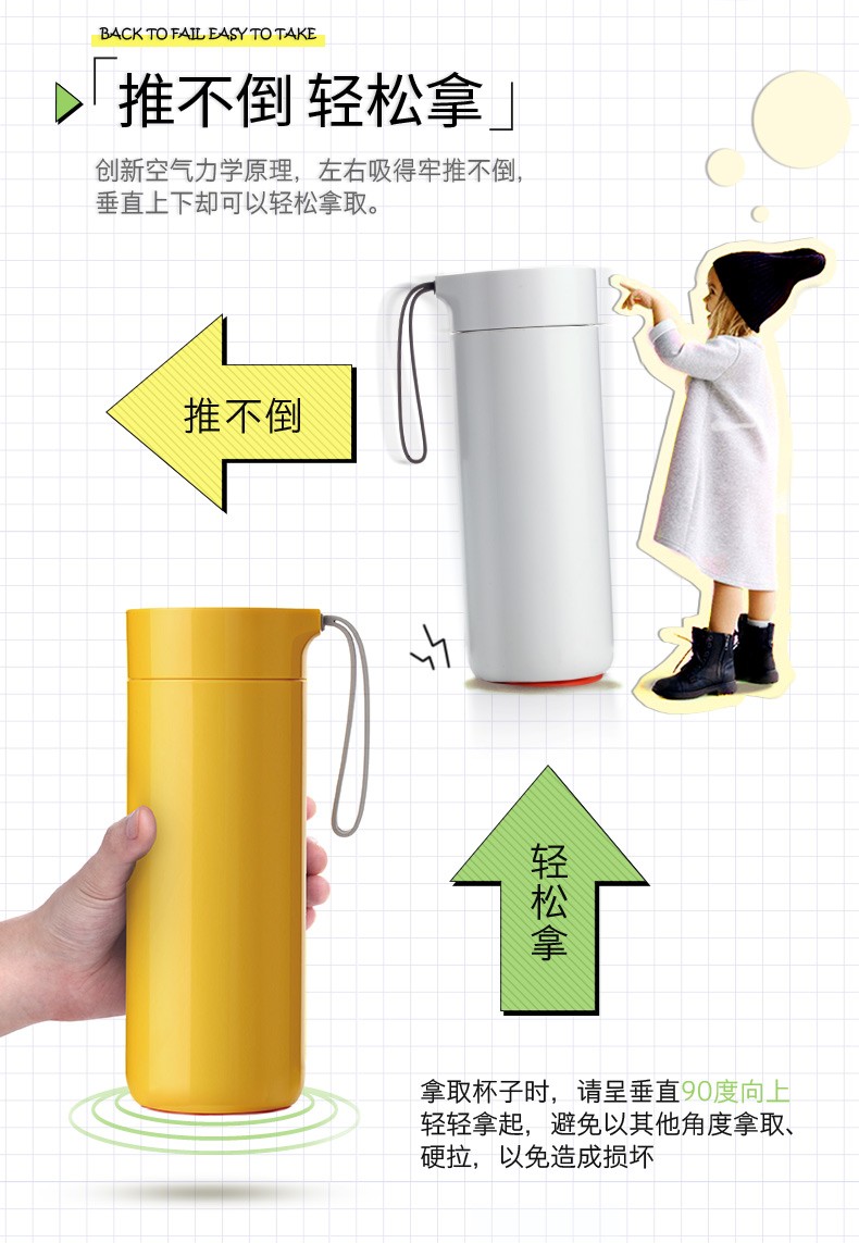 Artiart创意不倒杯保温杯大容量便携杯真空不锈钢杯子