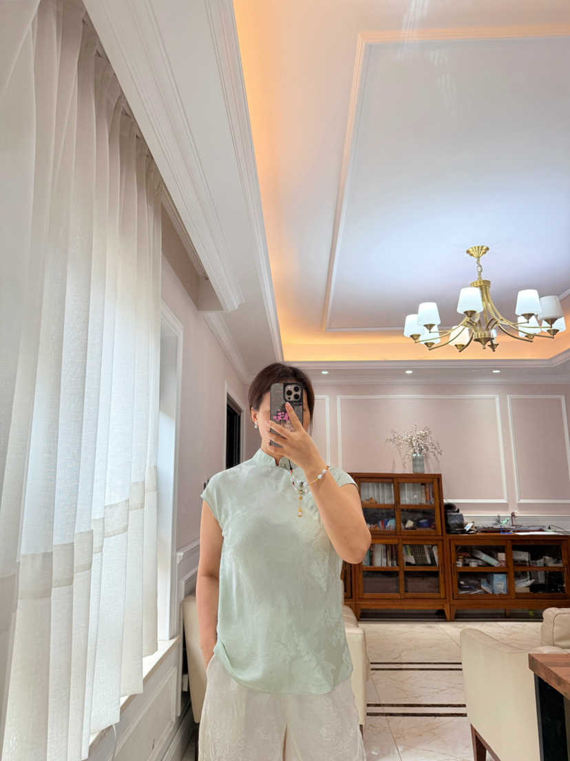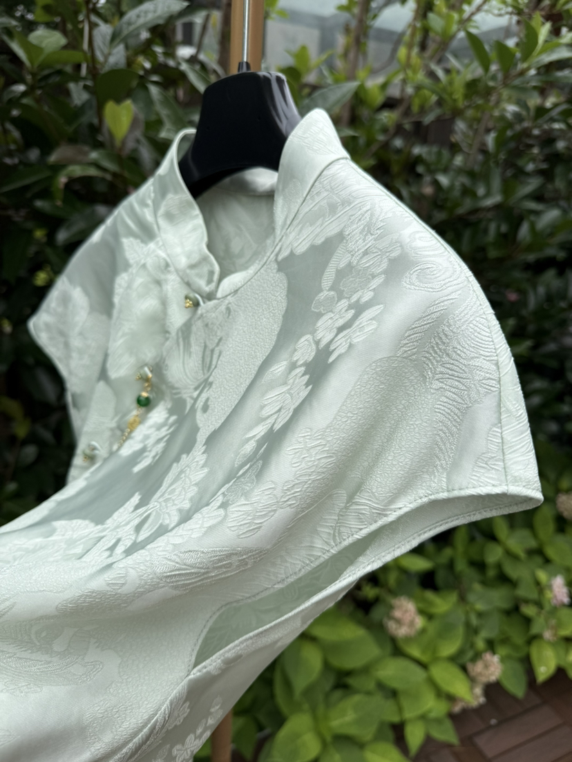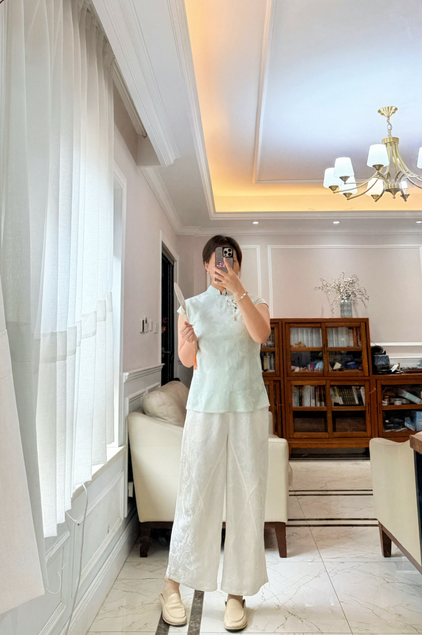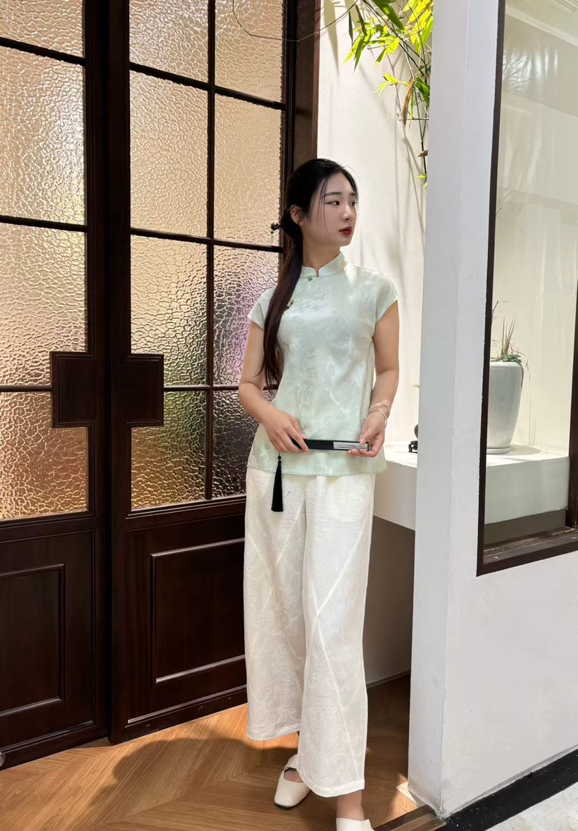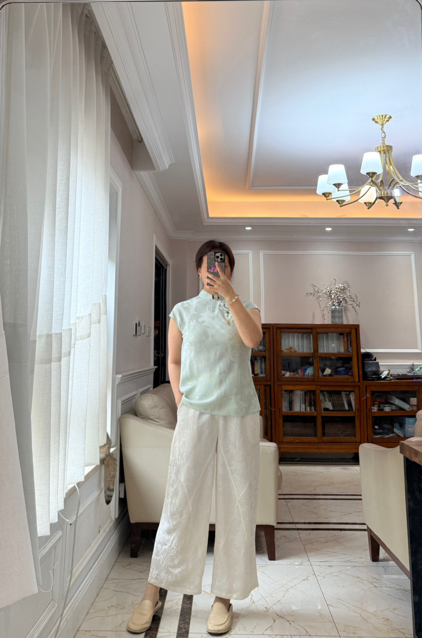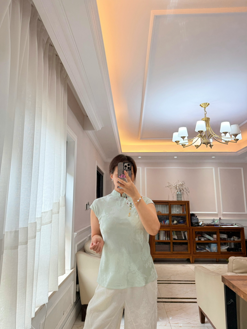 624-7 新中式 雨后新绿 提花面料 斜襟小衫 H4462 我穿L合身不宽裕