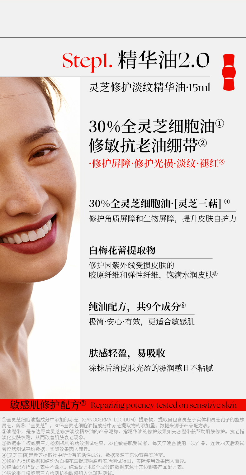东边野兽灵芝修护淡纹精华油+菌王面霜