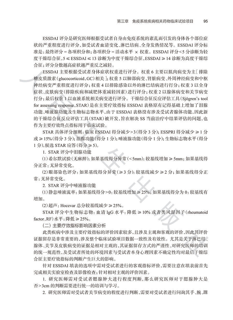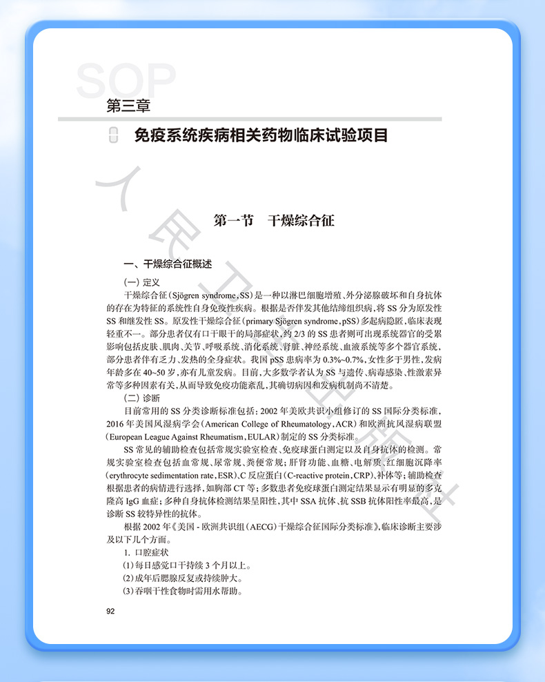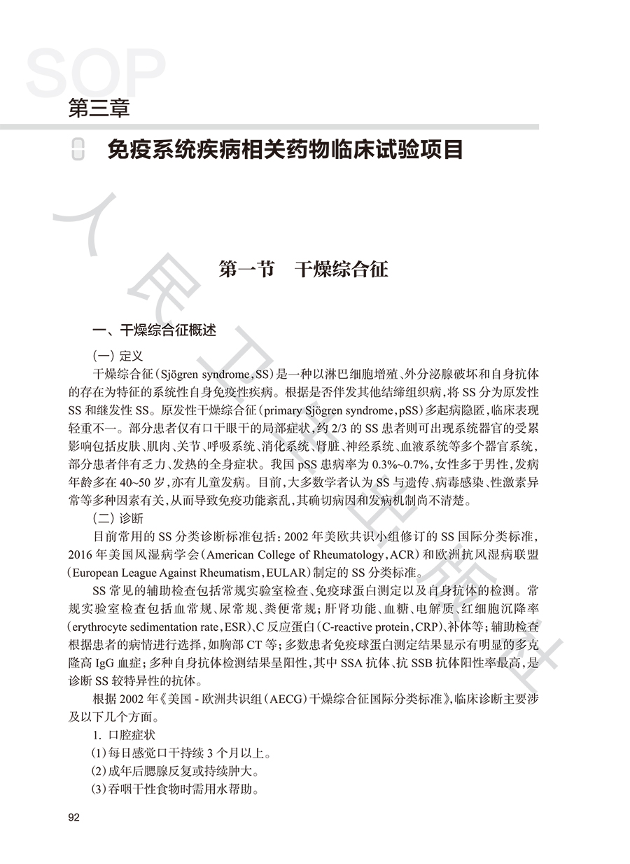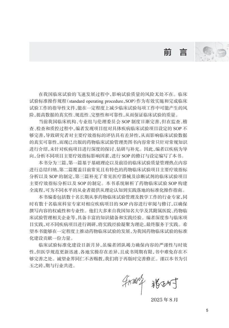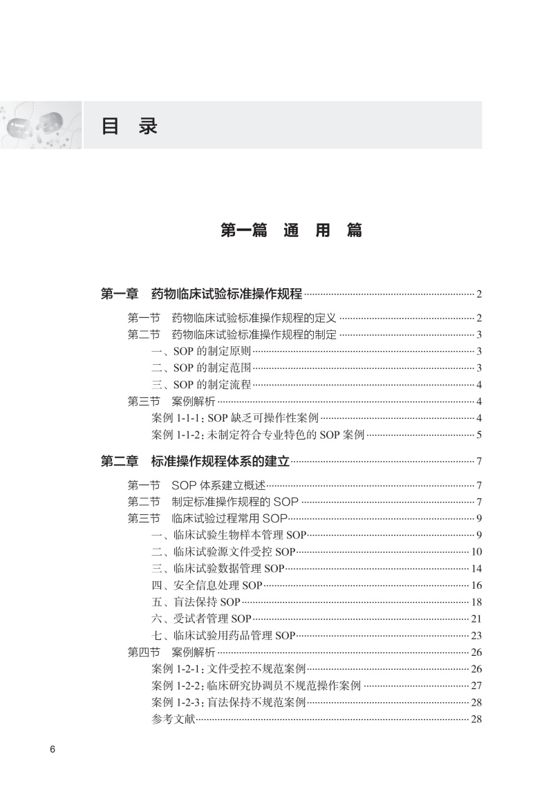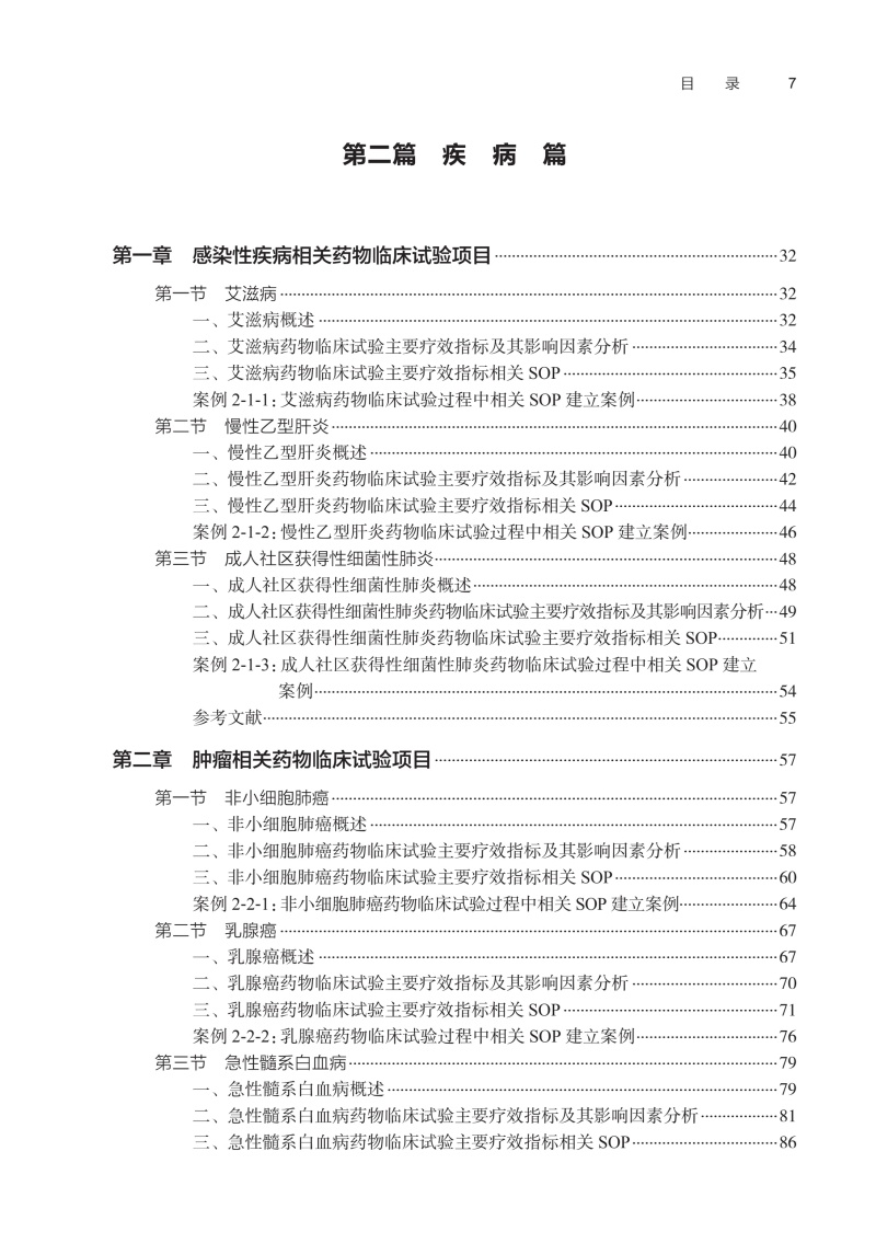 本书分为基础篇和项目篇两篇。其中基础篇主要包括药物临床试验标准操作规程概念、SOP体系的建立与实施等内容。项目篇根据ICD-11疾病分类标准,按照药物临床试验实际项目开展的疾病大类选择,排除了药物临床试验较少的疾病大类不进行撰写。最终选择15个疾病大类进行撰写,而后根据每一大类下药物临床试验主要疗效指标的特殊性,选择代表性疾病项目进行阐述。本书将覆盖最常见的临床试验项目主要疗效指标分析,介绍前沿的临床试验质量管理热点内容。使即将从事药物临床试验或者从业人员了解并细致掌握药物临床试验疗效指标评价SOP的建立。
