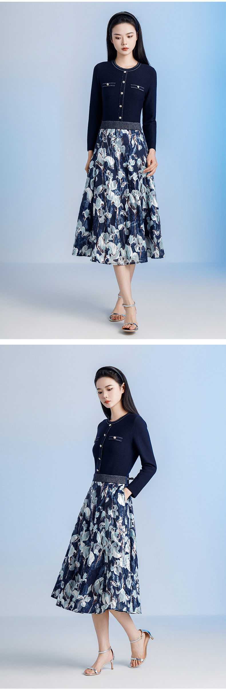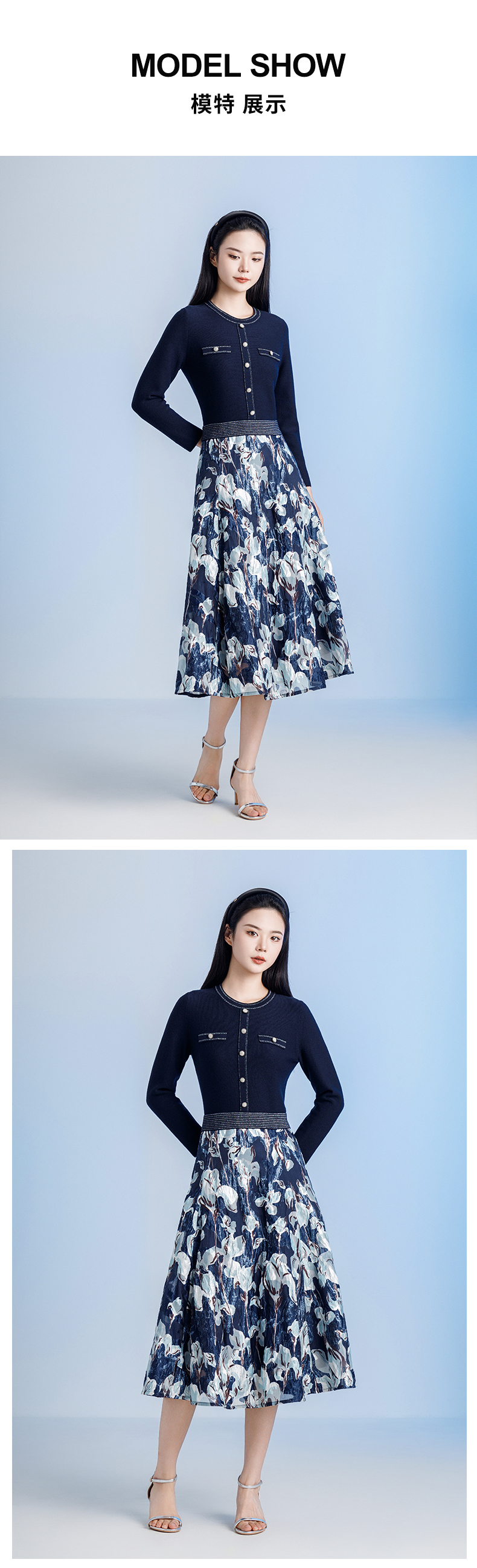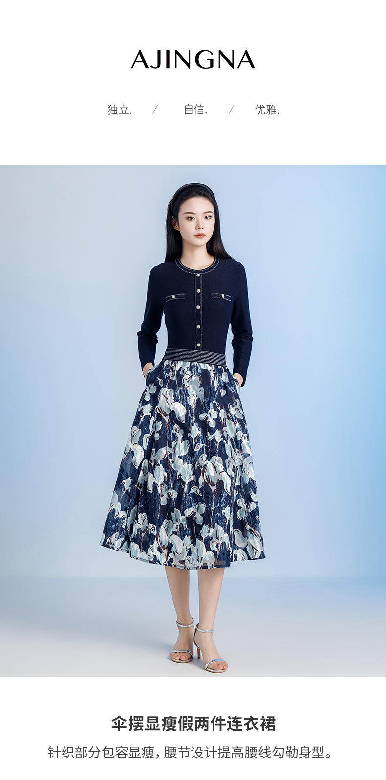 【商场同款】阿菁娜2024秋季新款伞摆显瘦假两件连衣裙A29Q112065