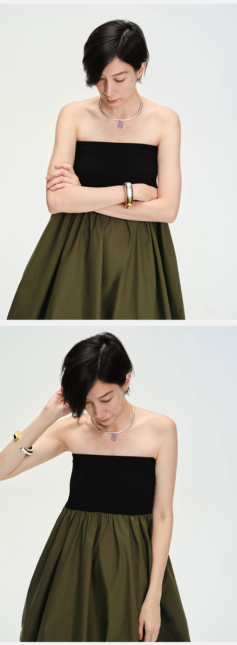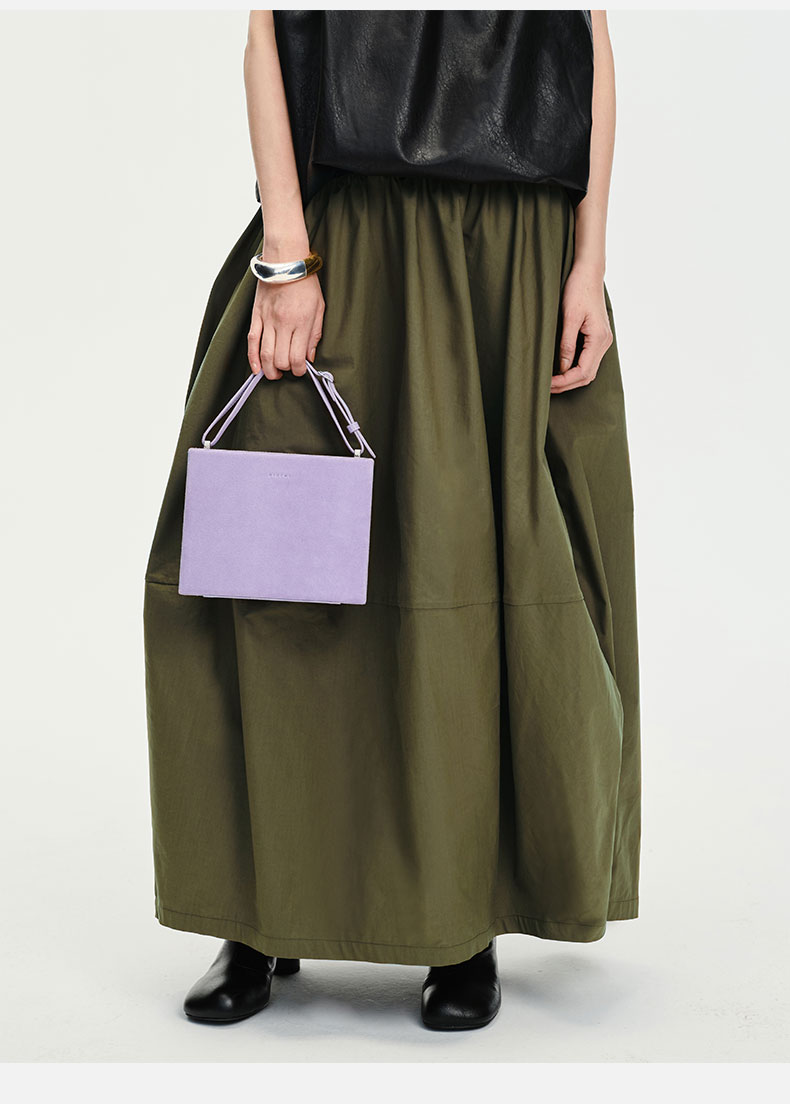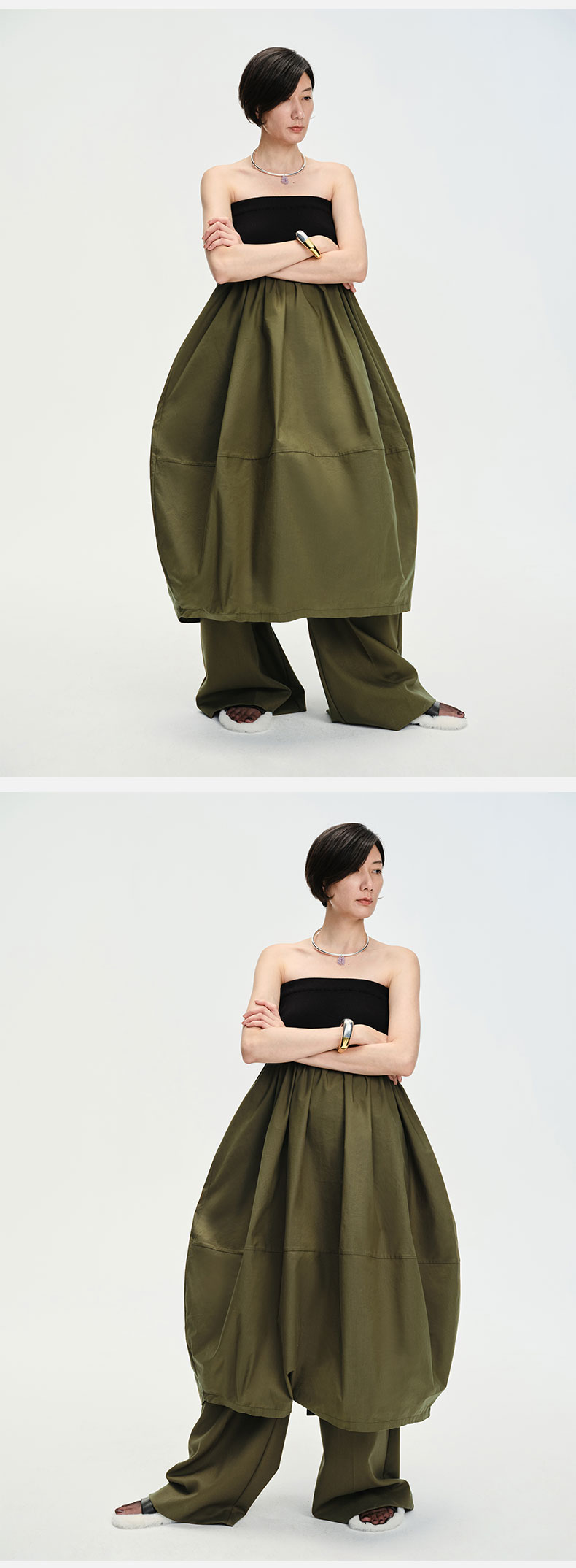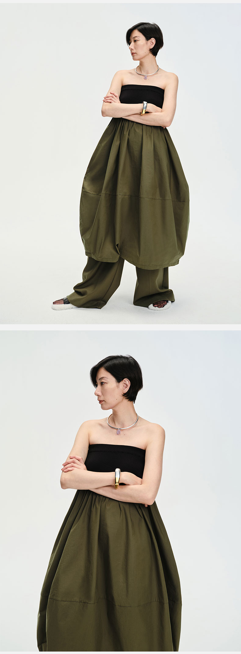 HIDEMI简约设计感弹⼒针织拼接多穿式蓬蓬裙摆茧型裙 ⿊⾊/军绿⾊