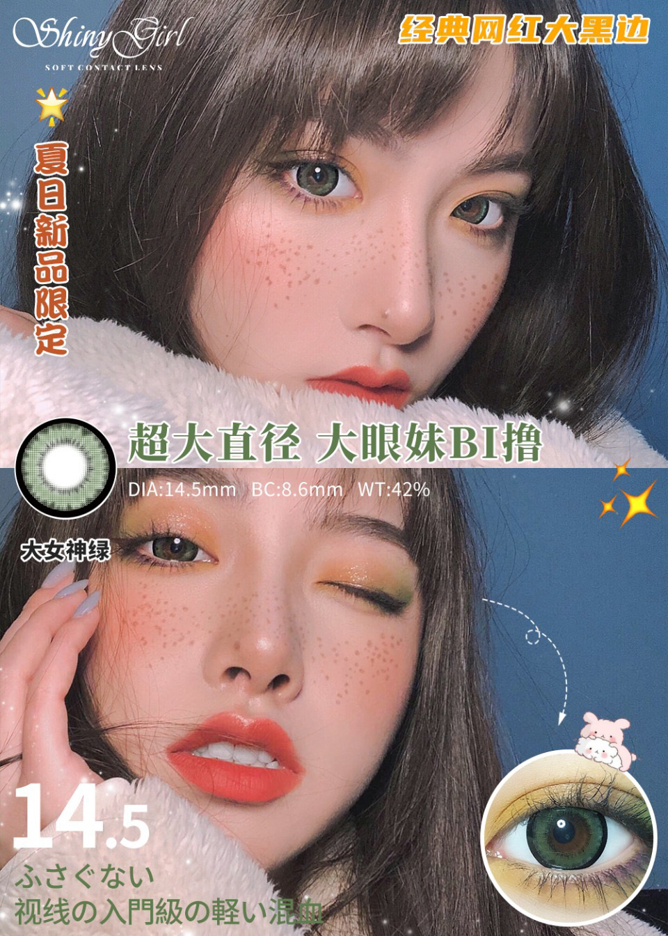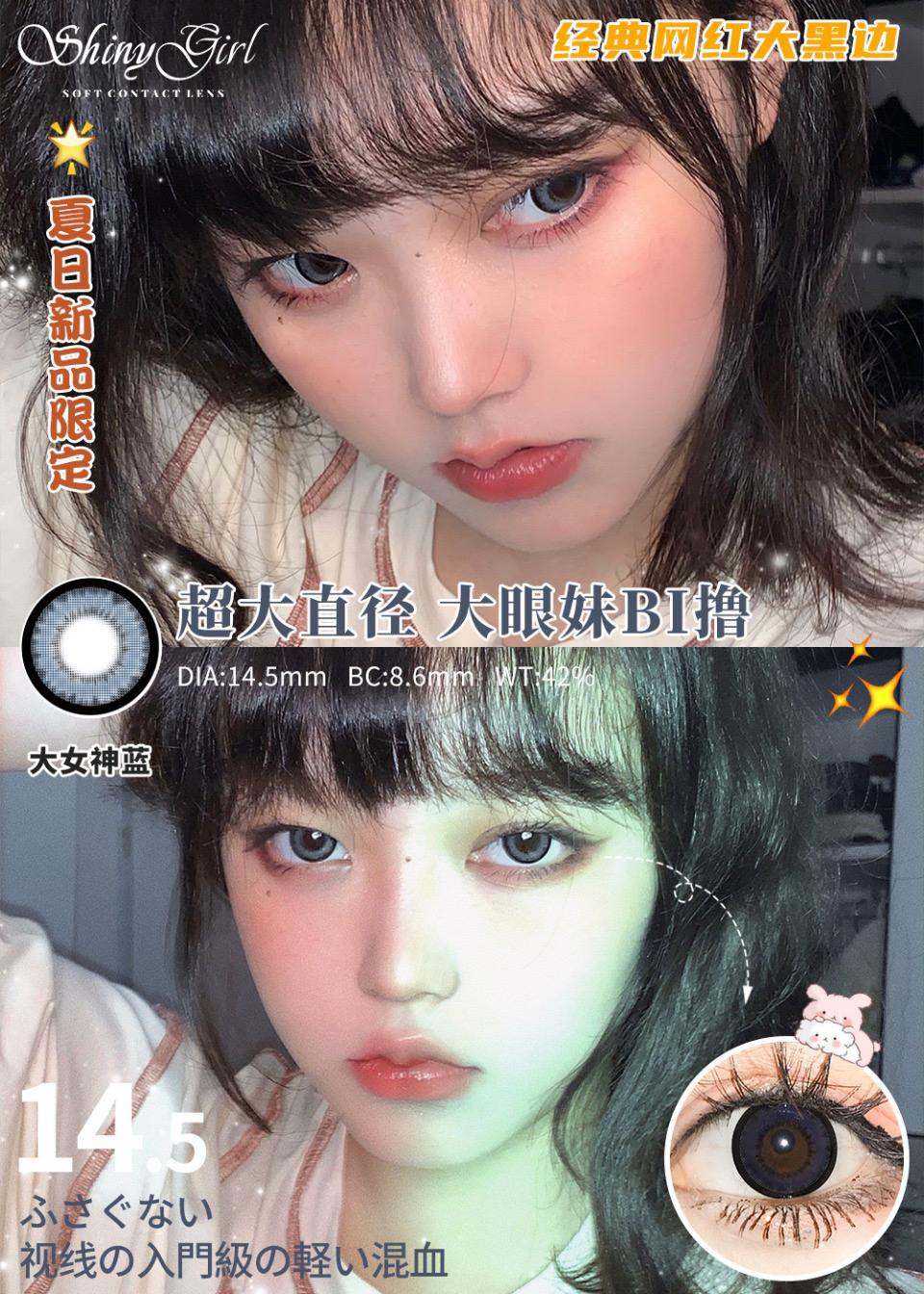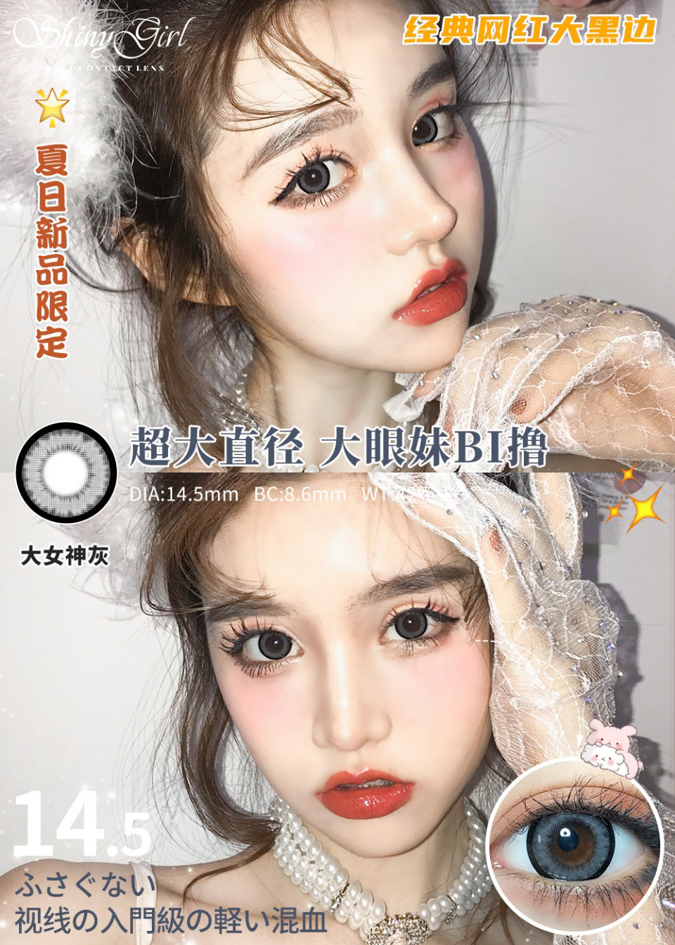 honeylens全系列活动大女神/风情可可/蓝灰硅水凝胶美瞳