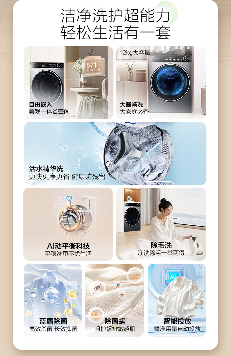 海尔滚筒洗衣机12公斤家用全自动大容量精华洗超薄659