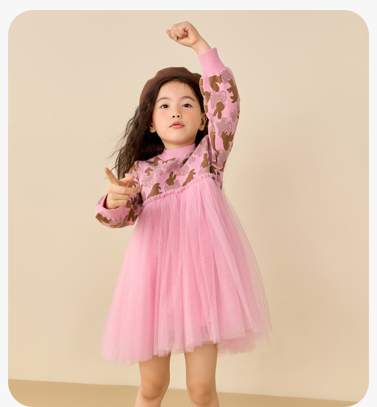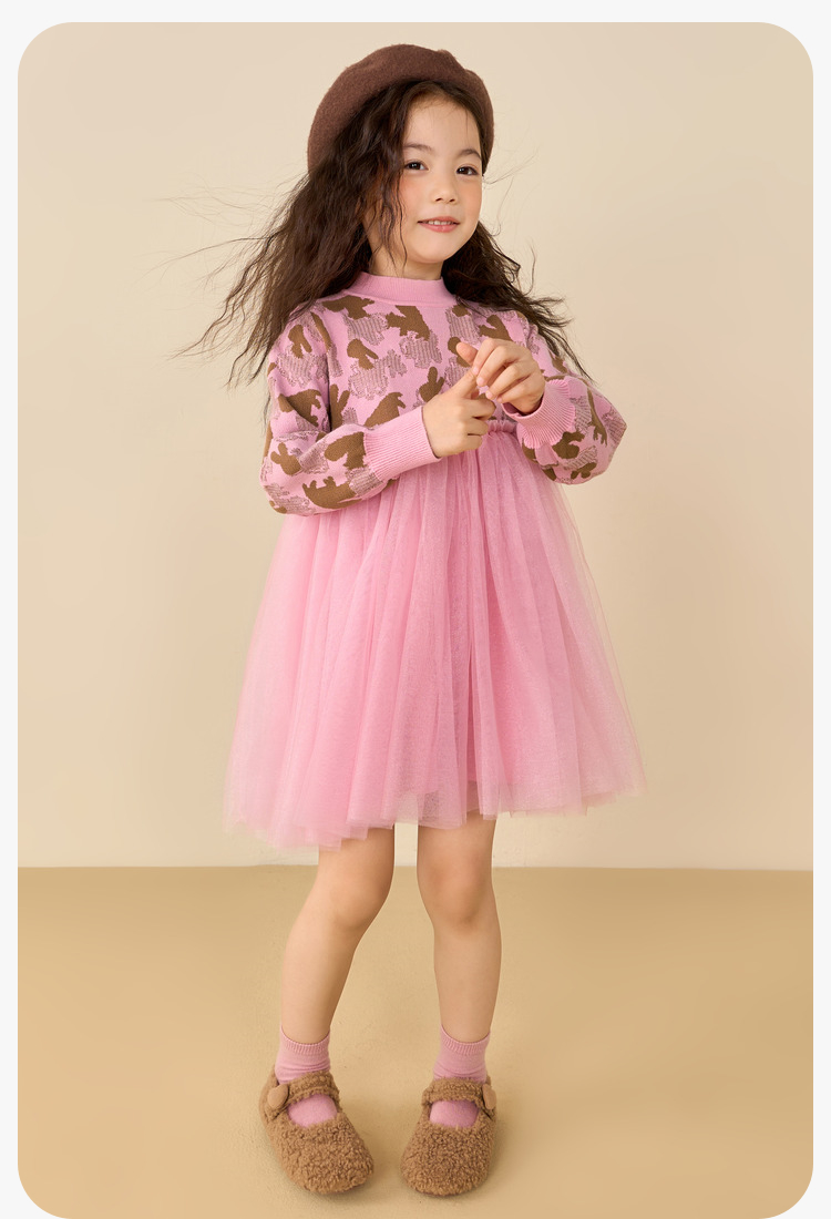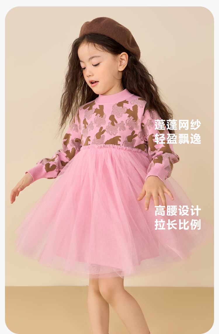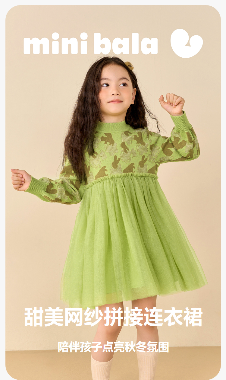 迷你巴拉女童连衣裙秋冬新款宝宝时尚甜美拼接儿童网纱裙