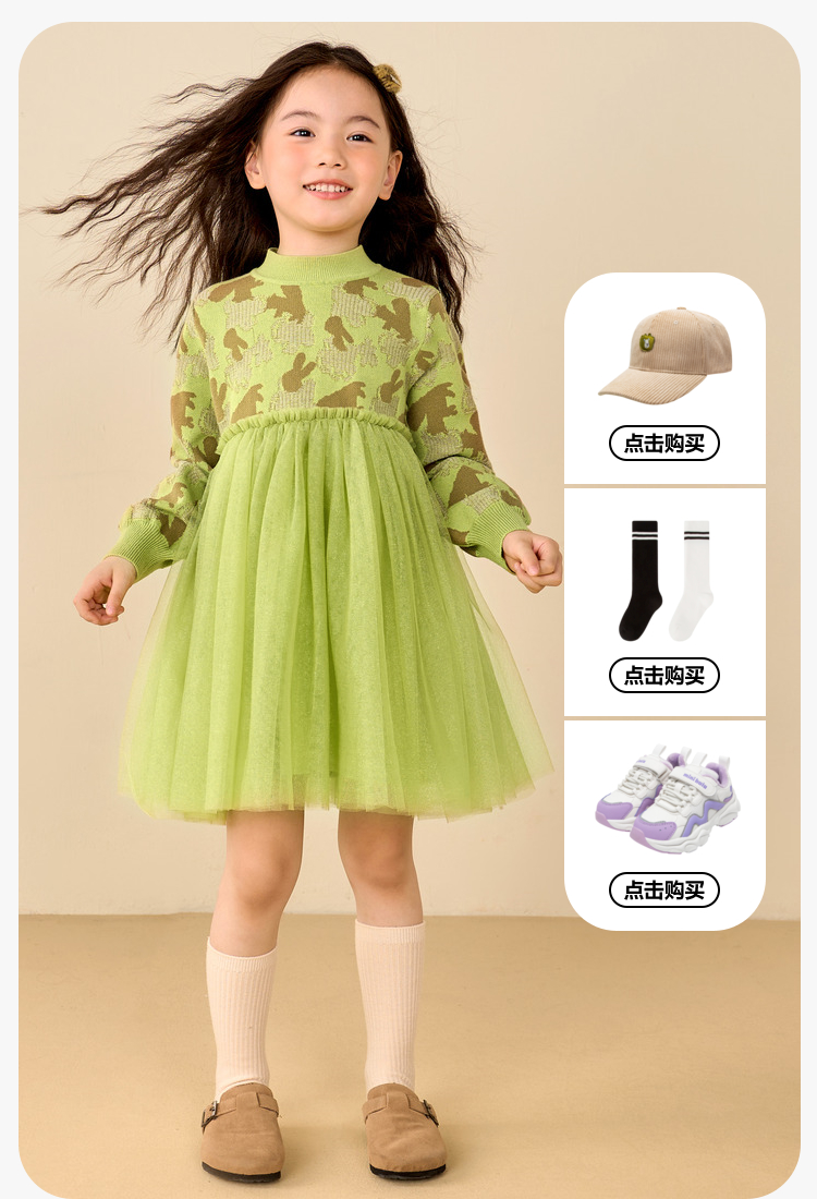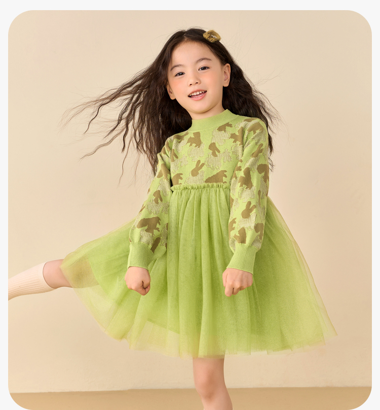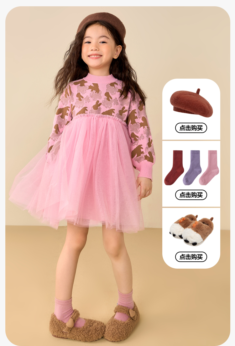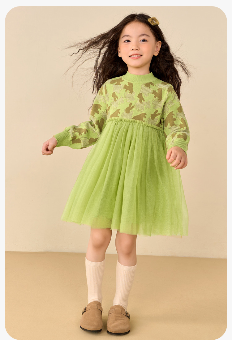 迷你巴拉女童连衣裙秋冬新款宝宝时尚甜美拼接儿童网纱裙