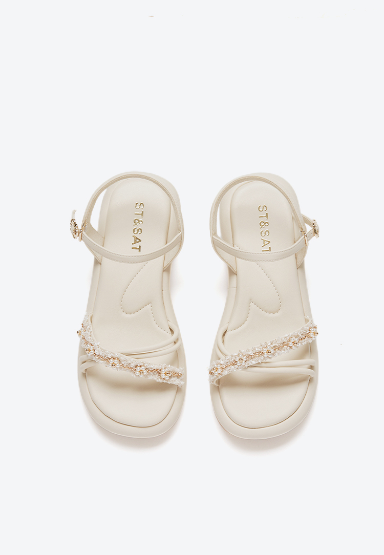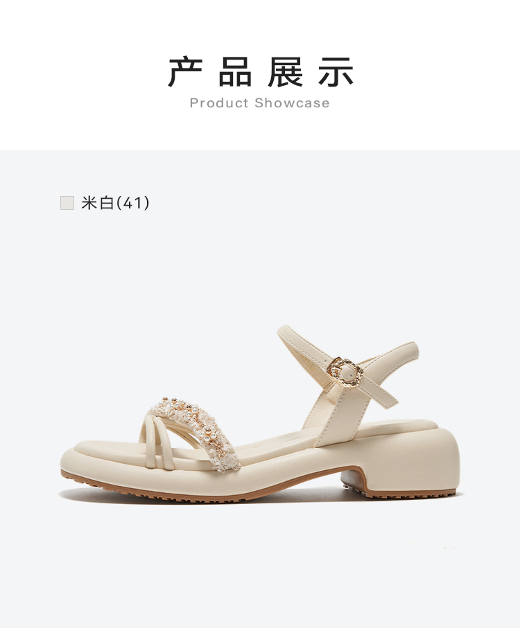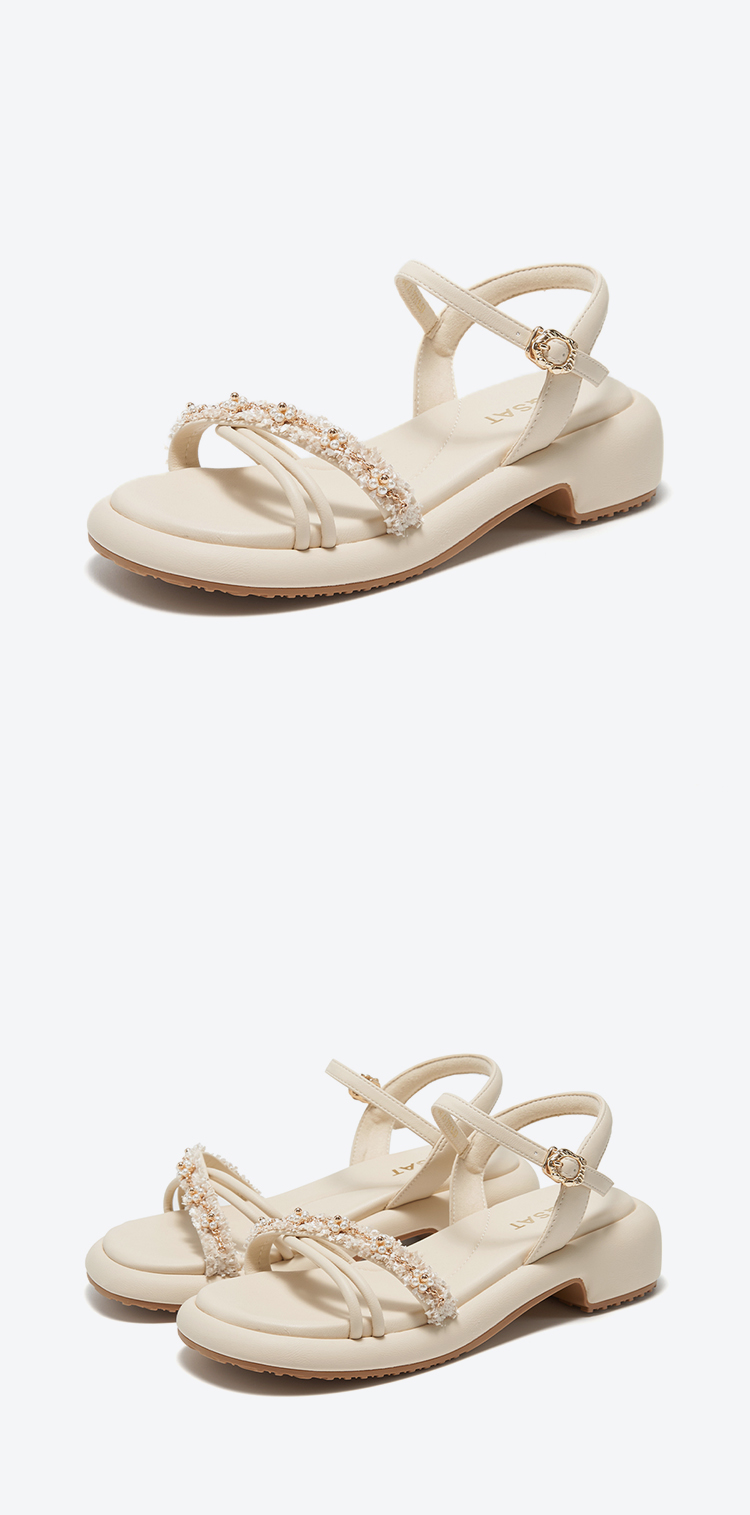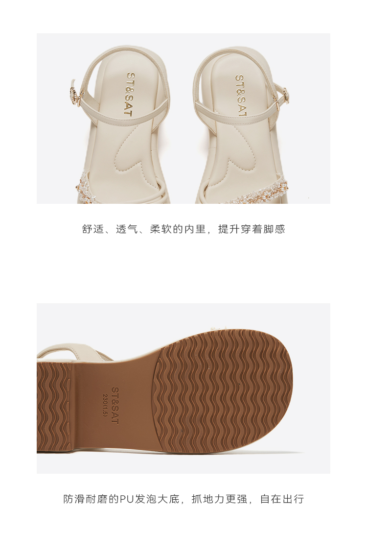 星期六优雅珍珠绊带厚底粗跟凉鞋SSC2115240