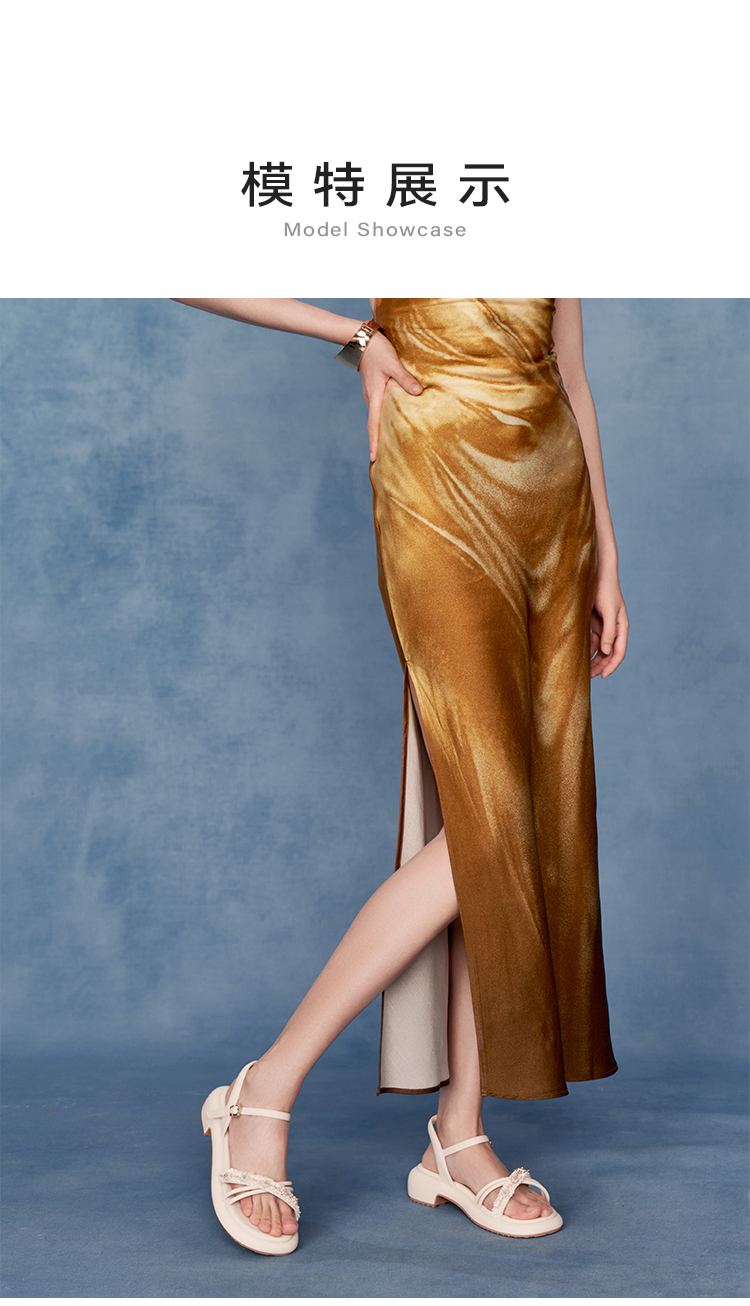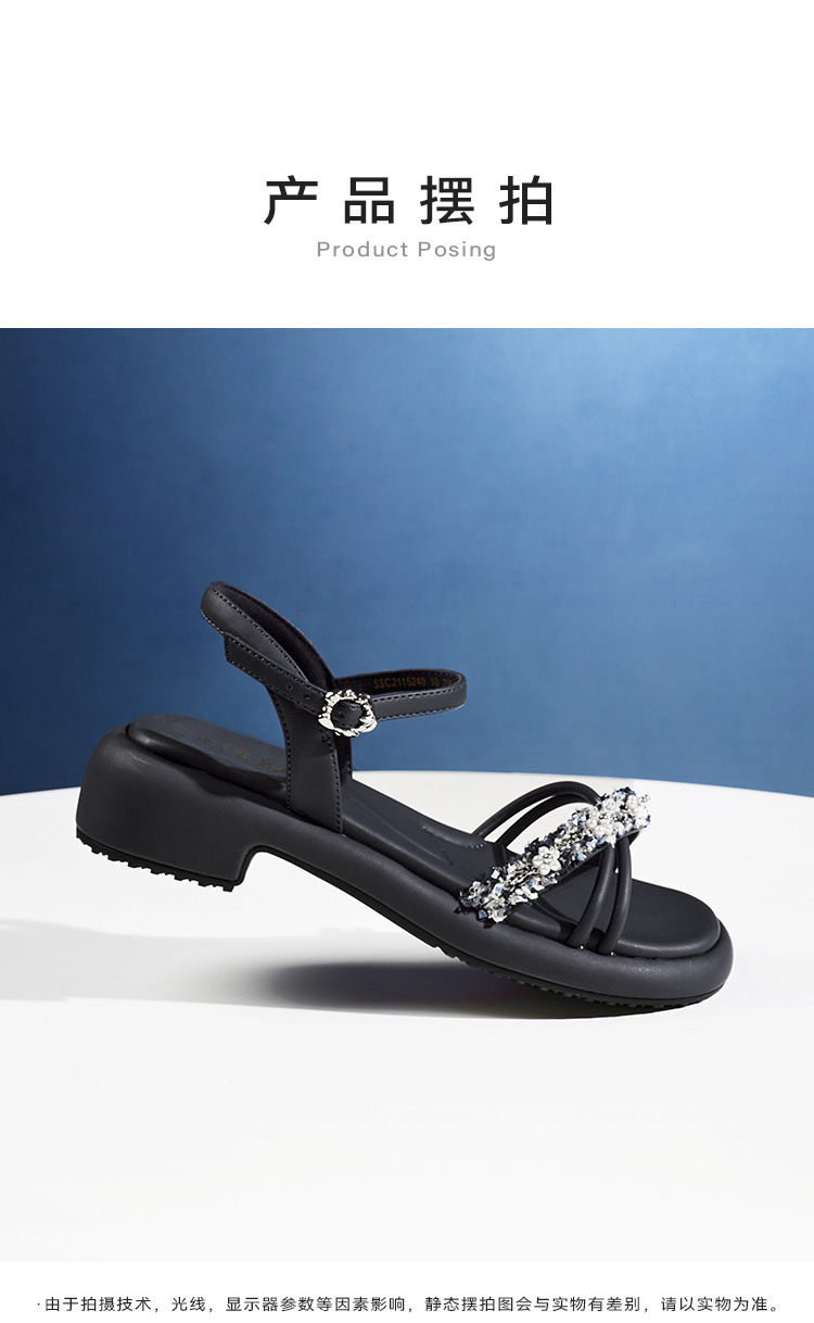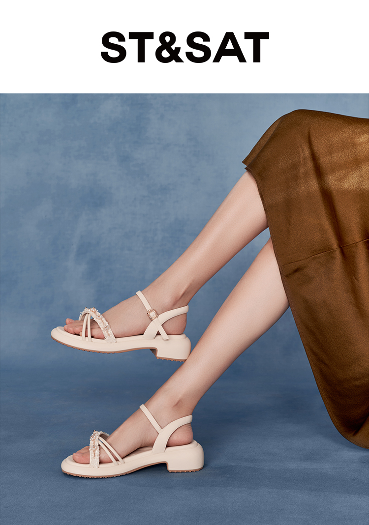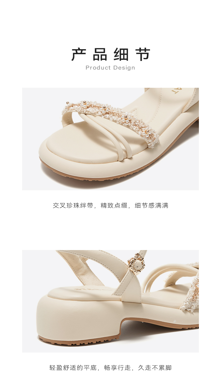 星期六优雅珍珠绊带厚底粗跟凉鞋SSC2115240