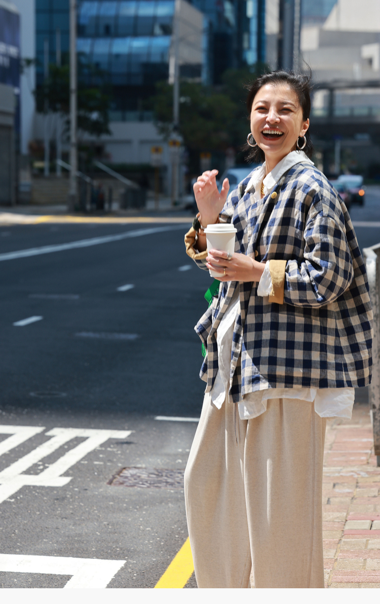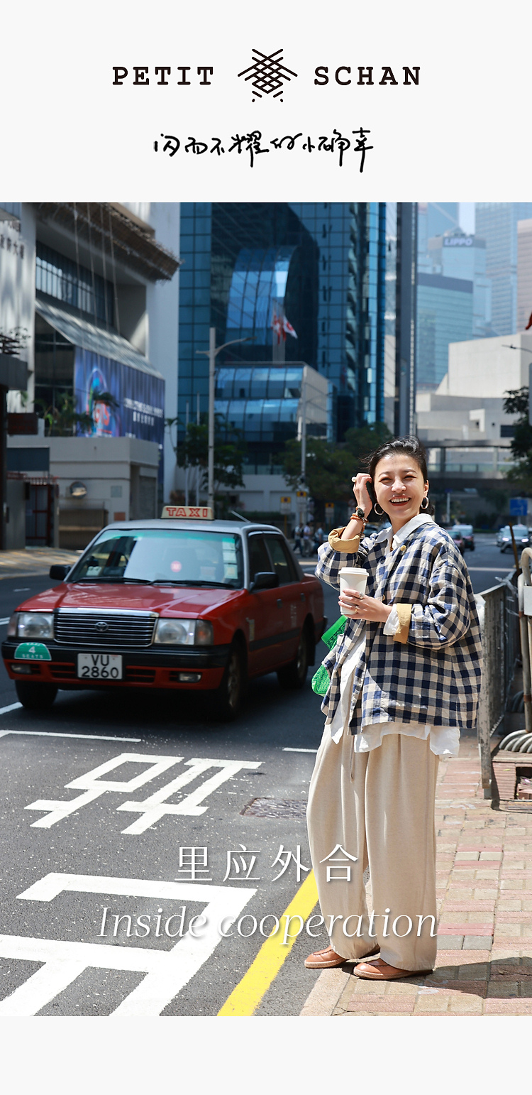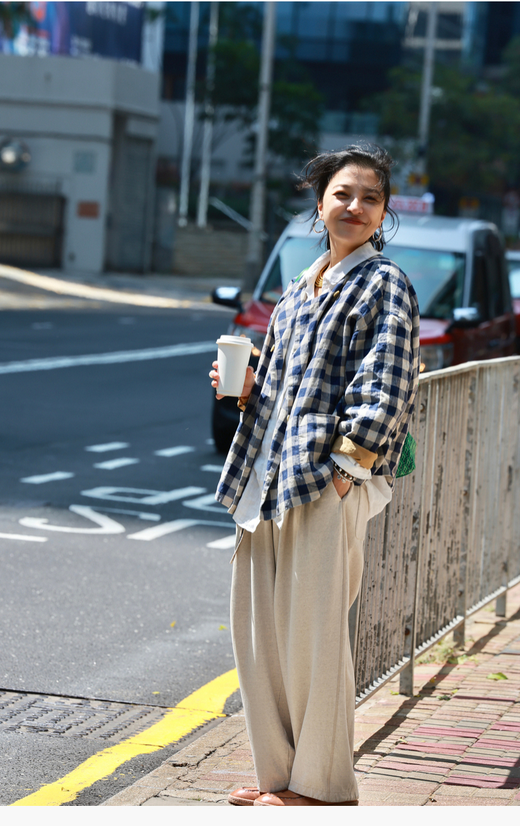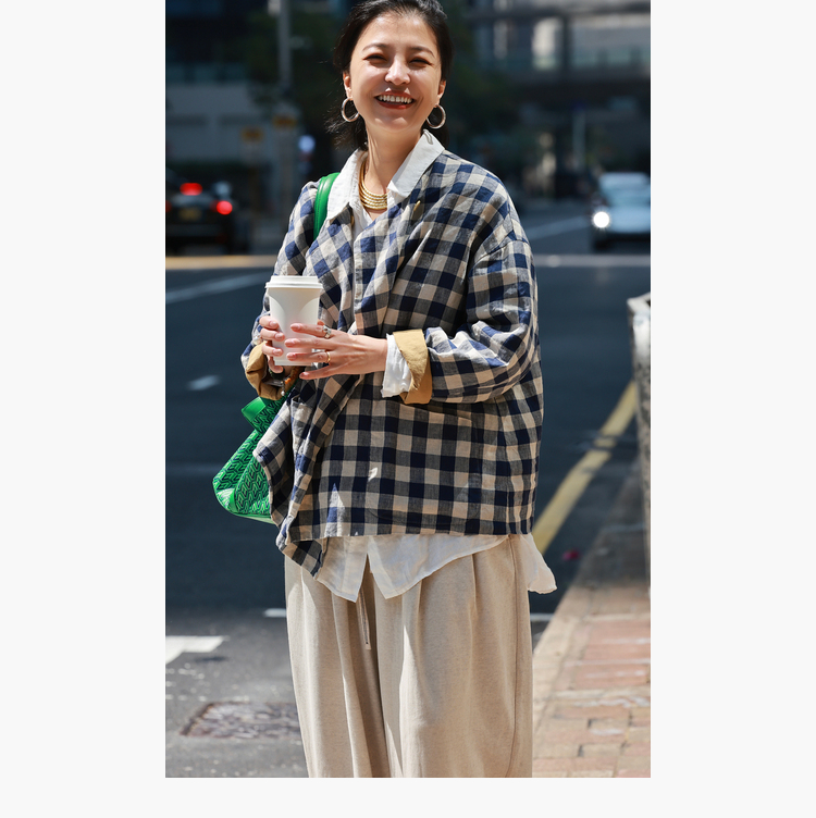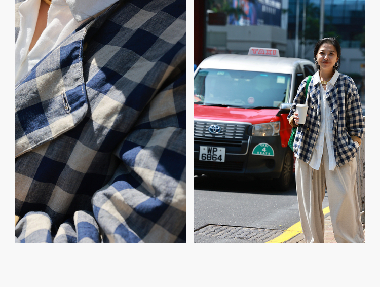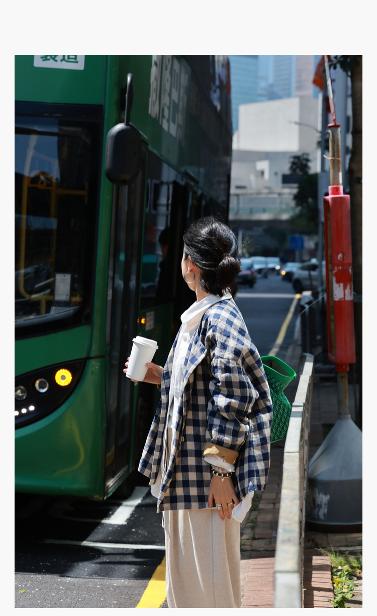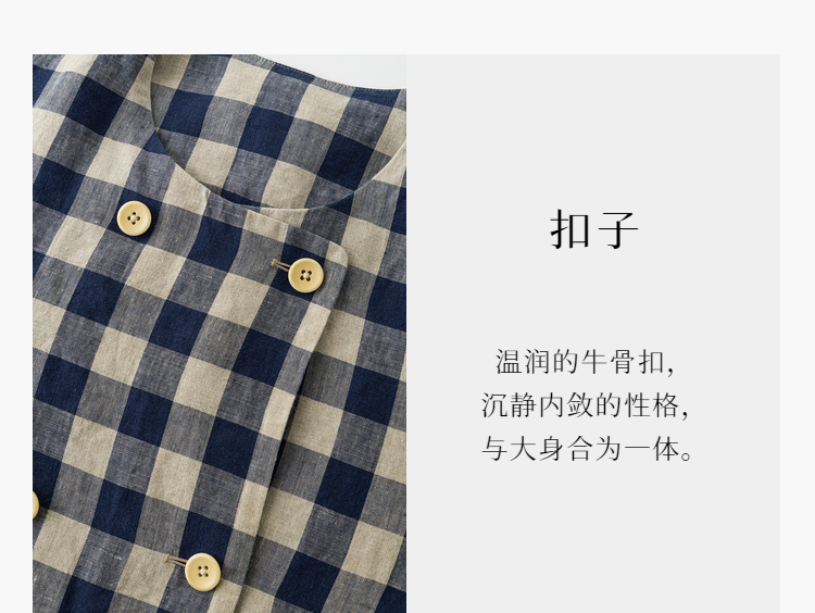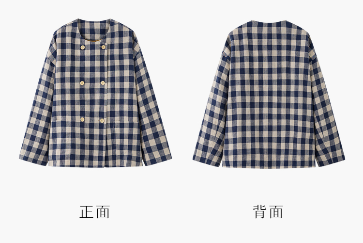 Petit Schan小闪 CLO#1066 Inside cooperation 里应外合 色织纯亚麻格纹双排扣圆领外套