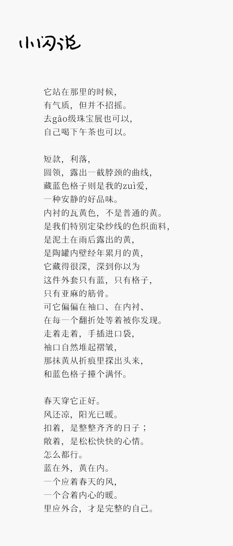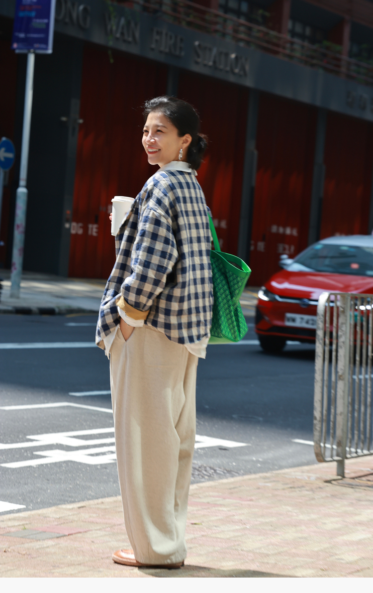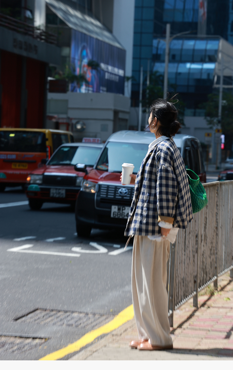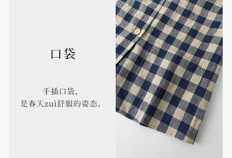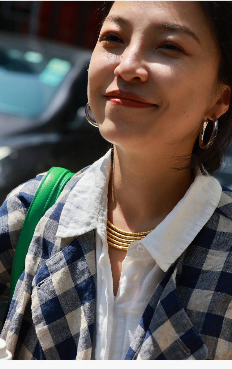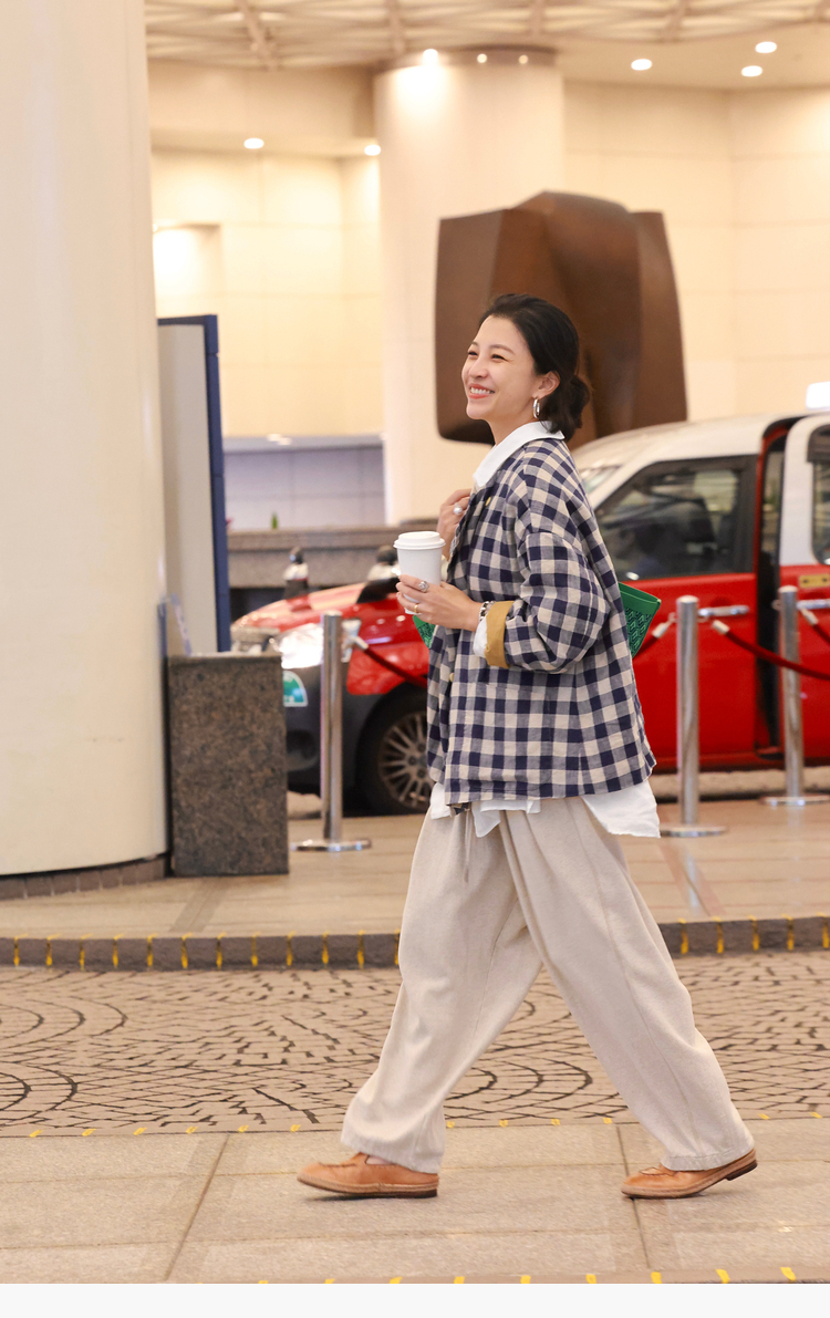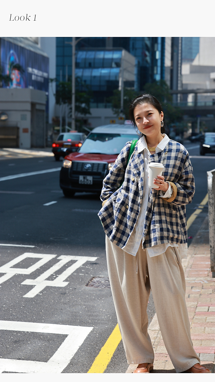 Petit Schan小闪 CLO#1066 Inside cooperation 里应外合 色织纯亚麻格纹双排扣圆领外套