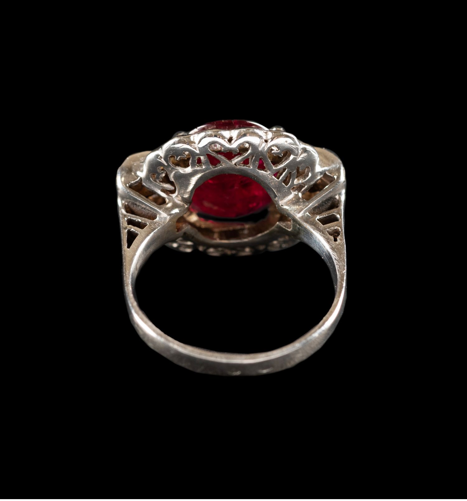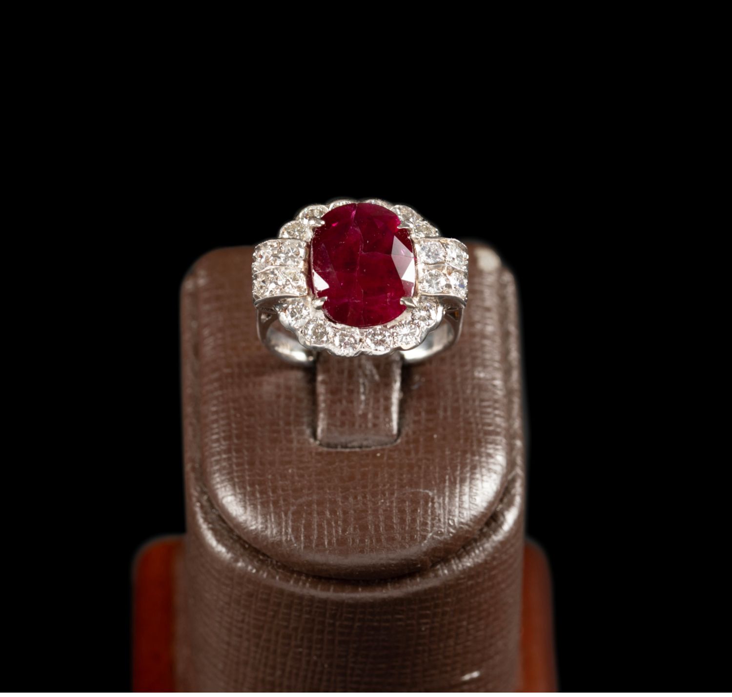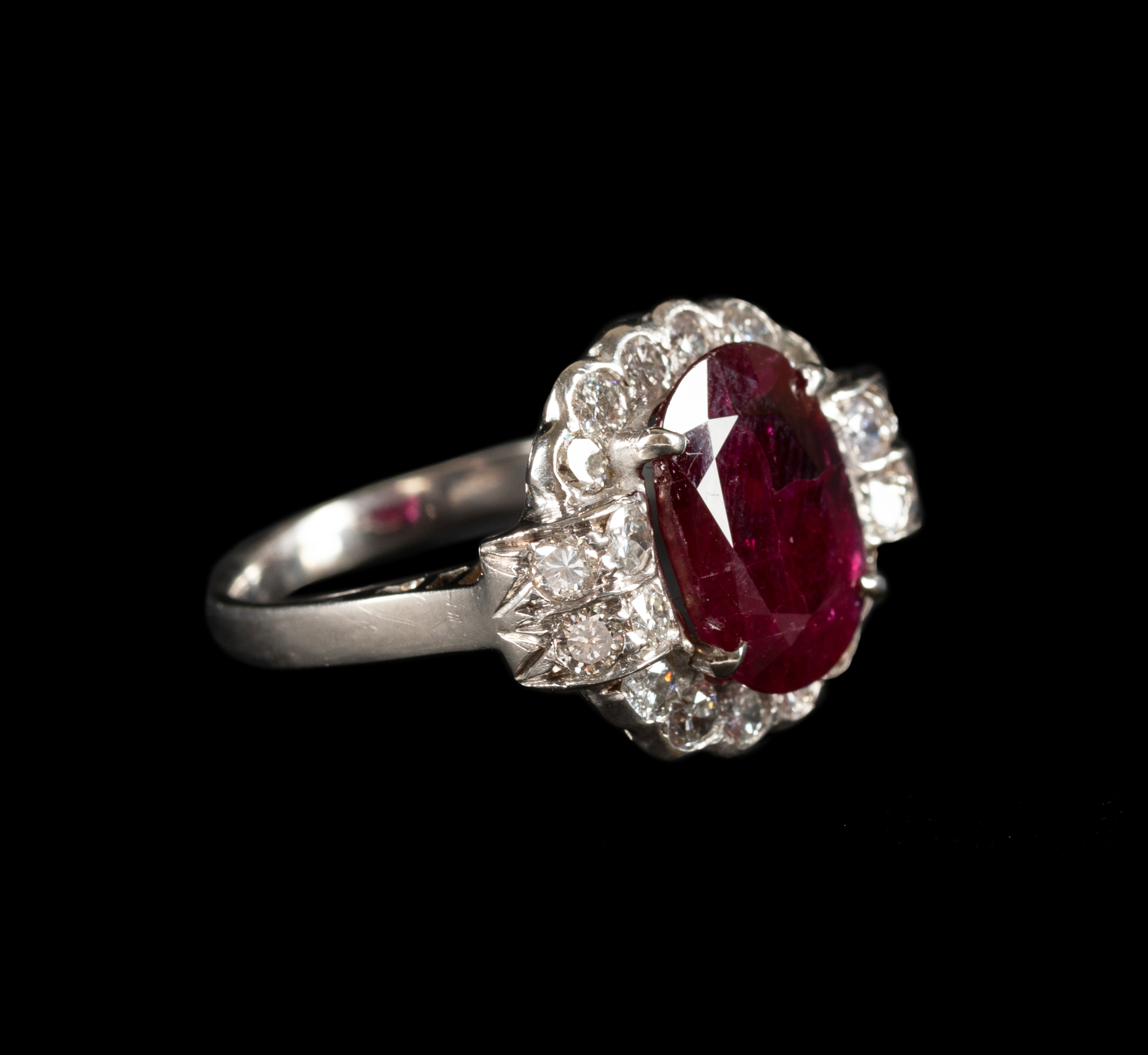独角鹿西洋古董珠宝首饰1965年代法国18k白金镶嵌钻石红宝石戒指