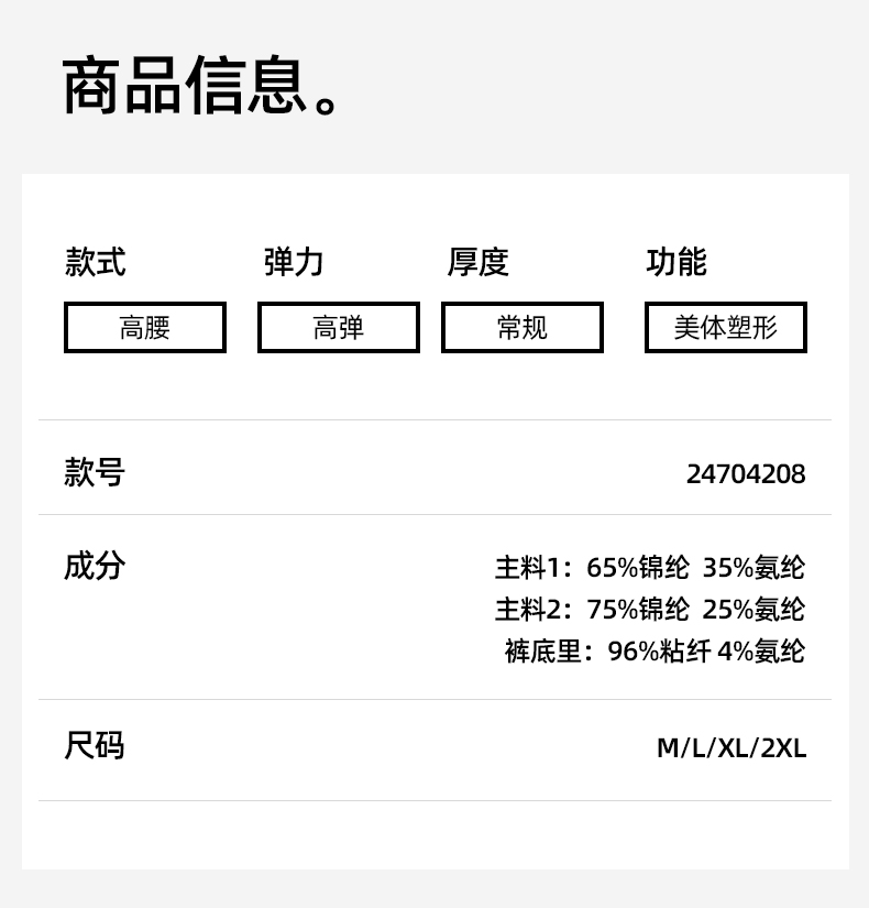 【商场同款】熳洁儿 女士束身裤高腰收腹中长款提臀24704208