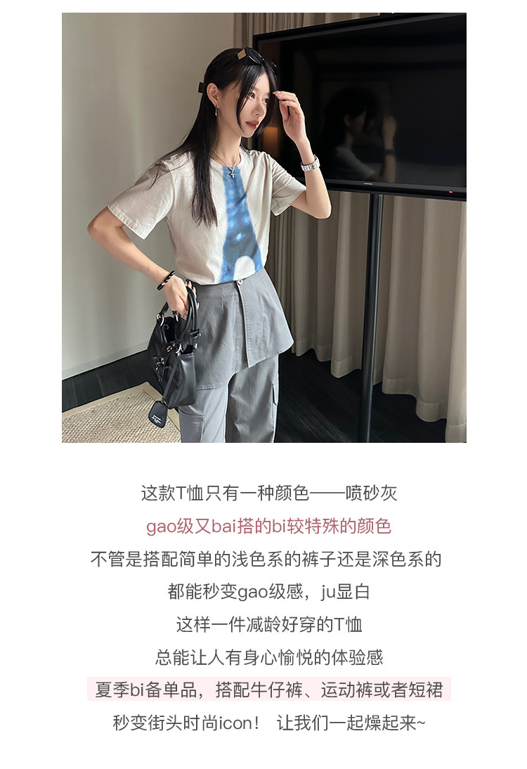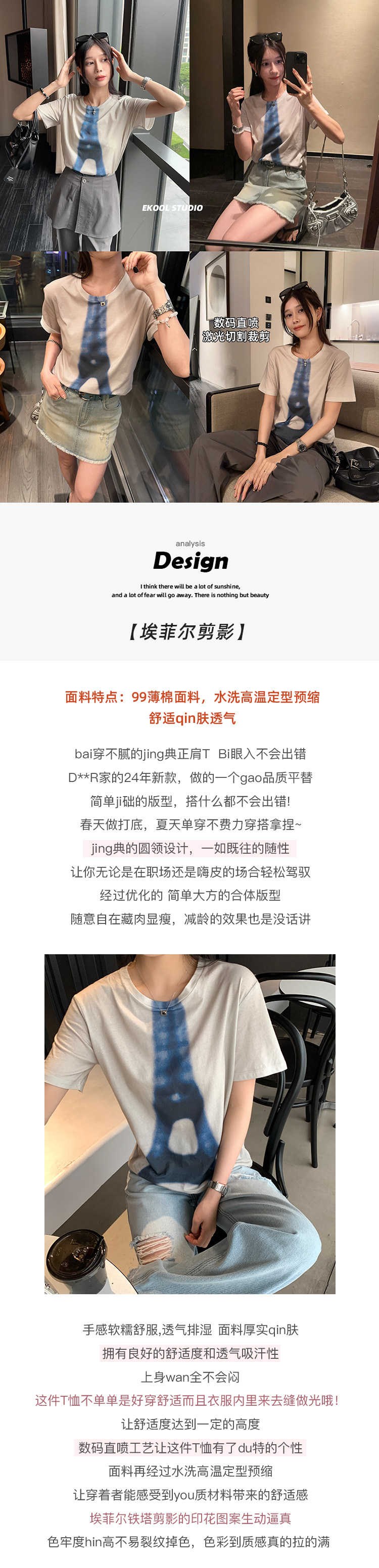 EKOOL4/28新品【埃菲尔剪影】数码印花短袖T恤女夏季宽松显瘦上衣