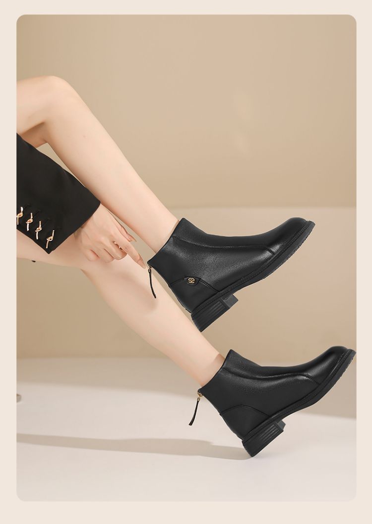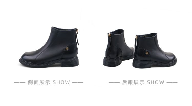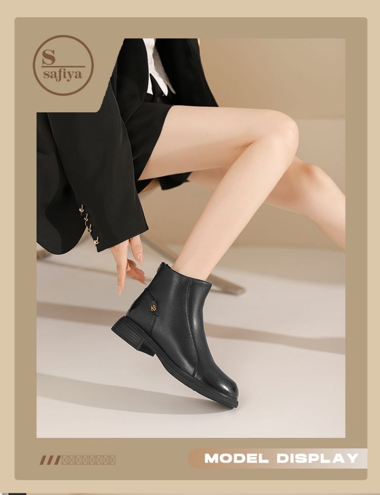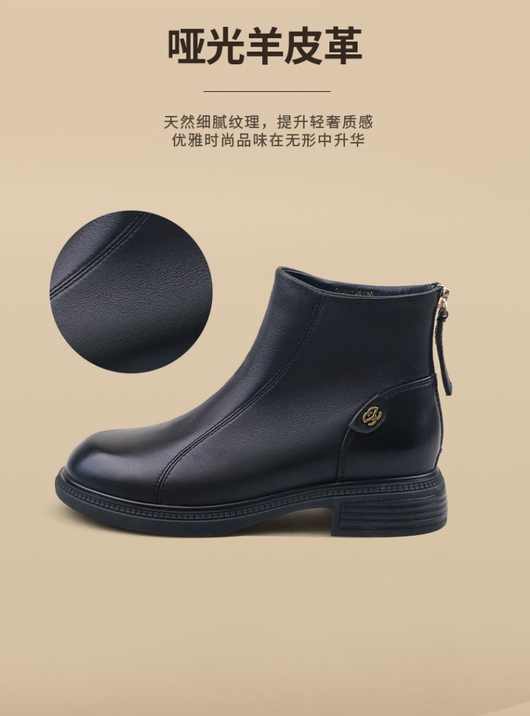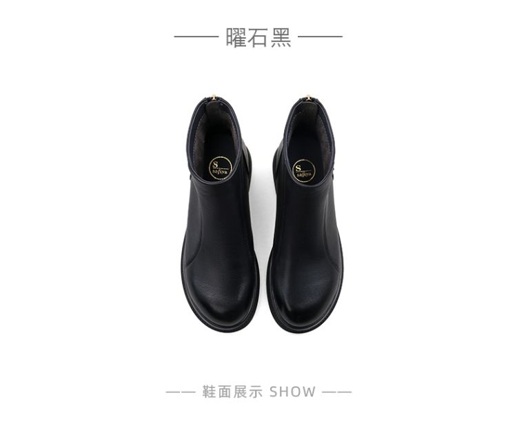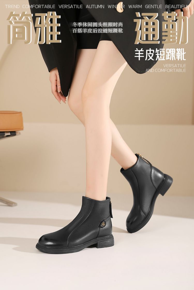 Safiya/索菲娅2024冬季休闲圆头粗跟时尚百搭羊皮后拉链短踝靴 SF44116139