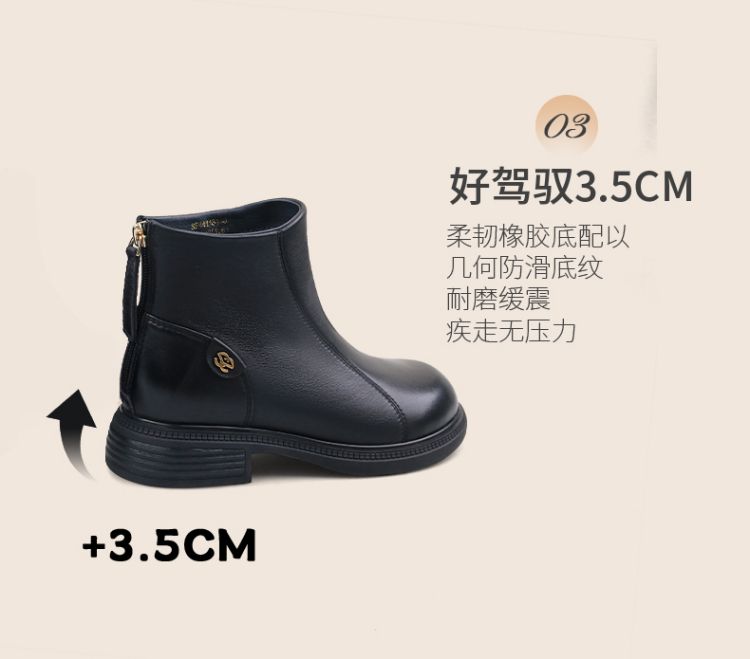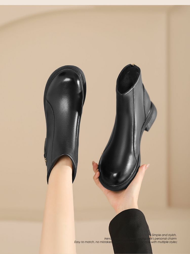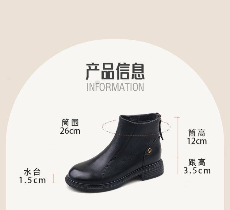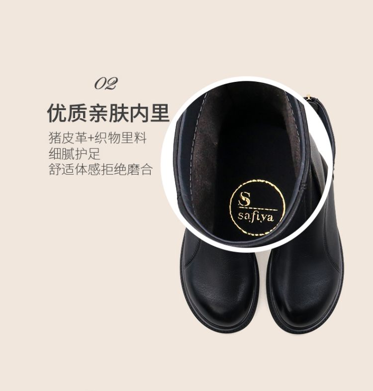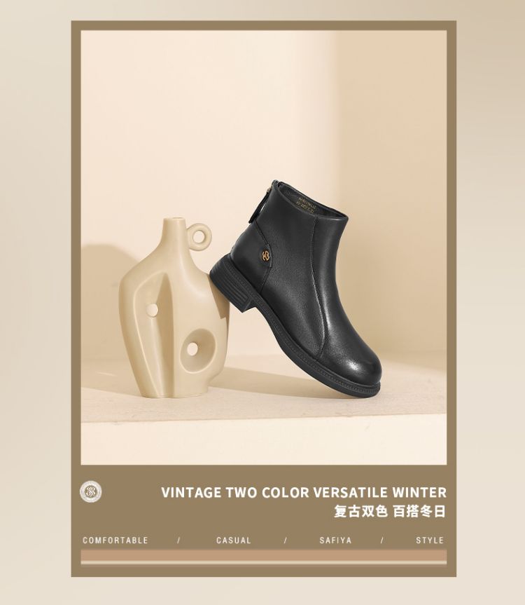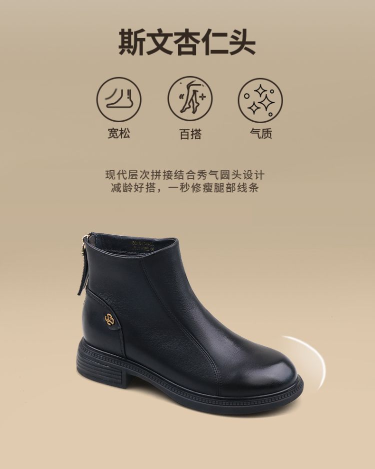 Safiya/索菲娅2024冬季休闲圆头粗跟时尚百搭羊皮后拉链短踝靴 SF44116139
