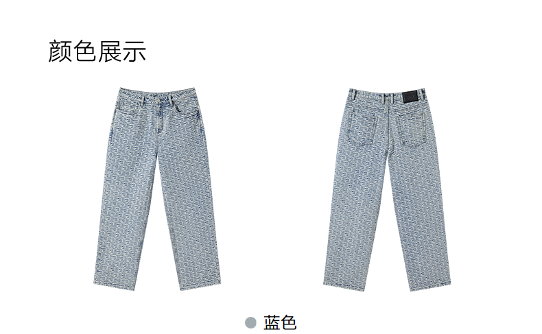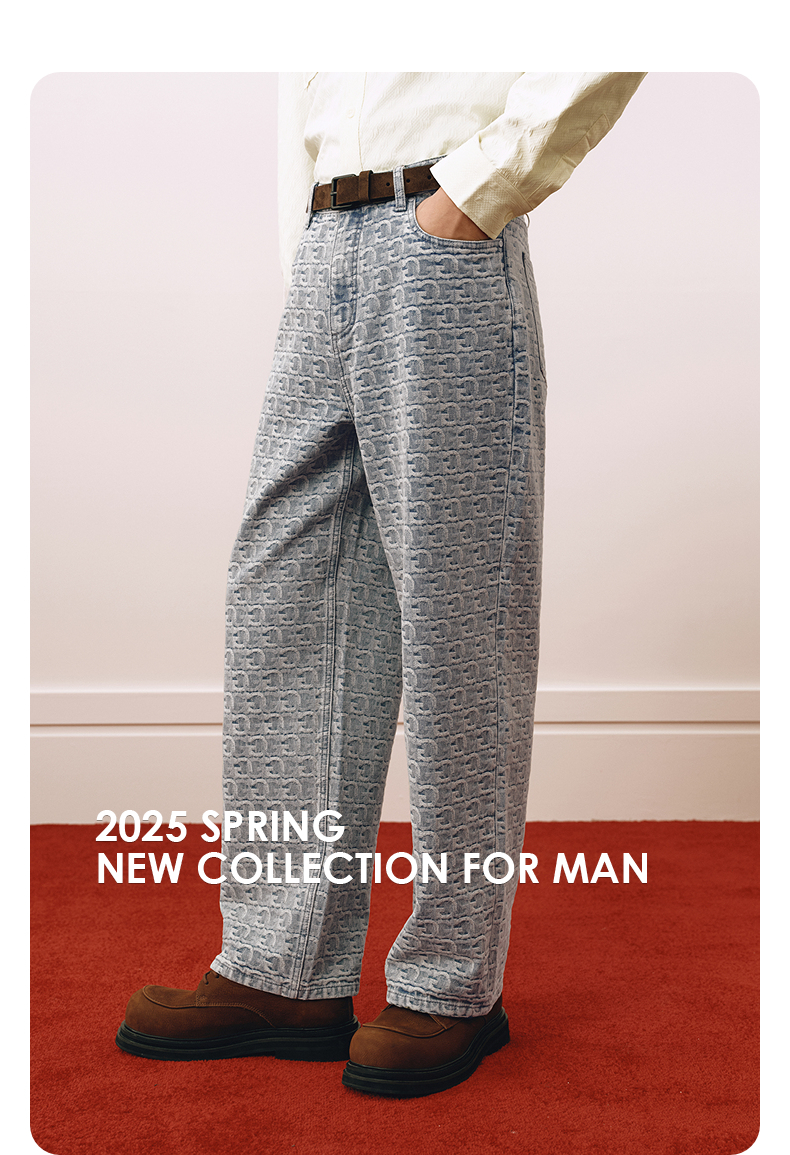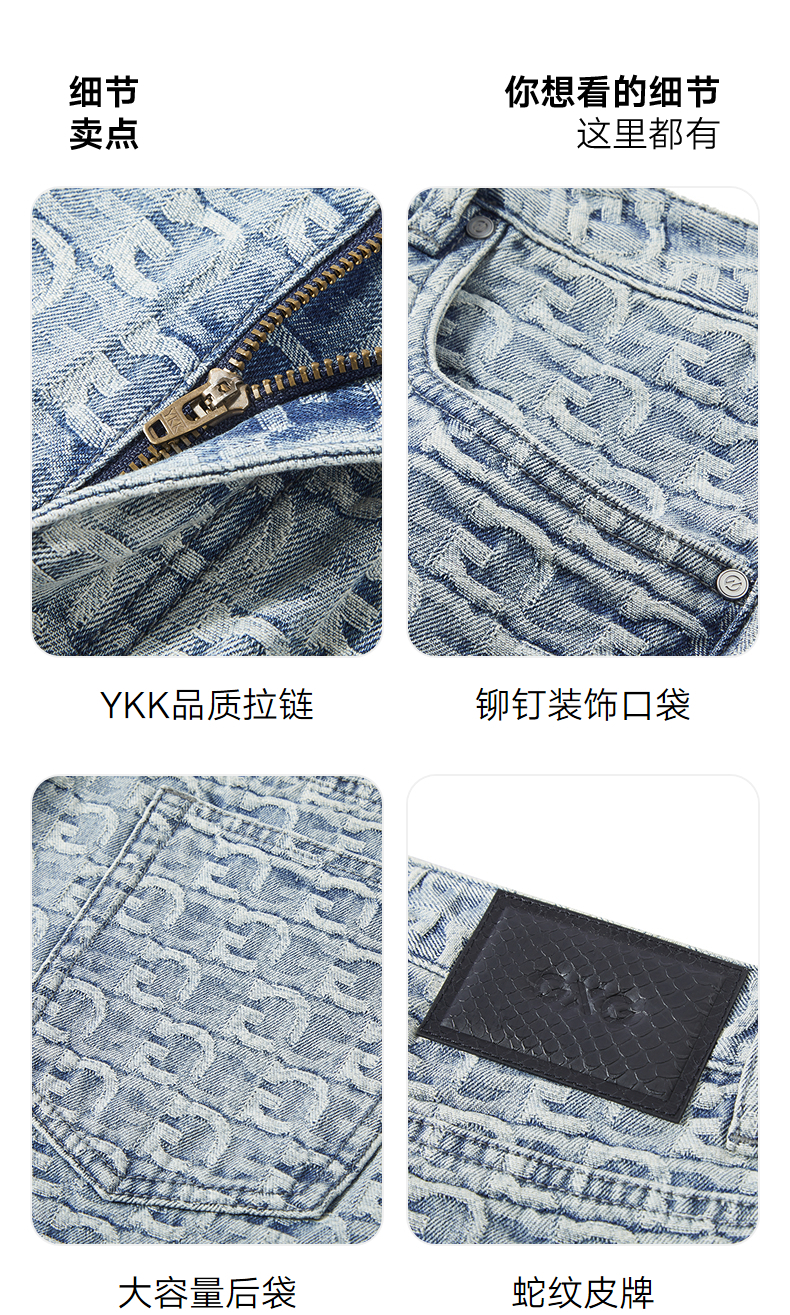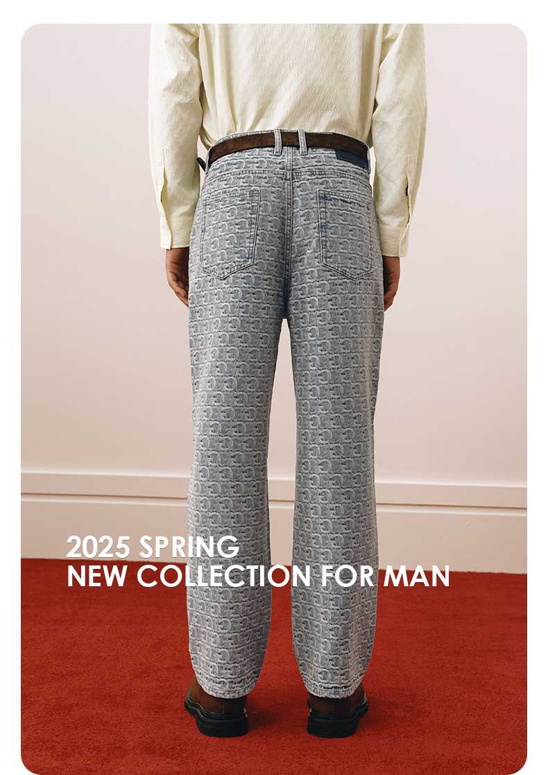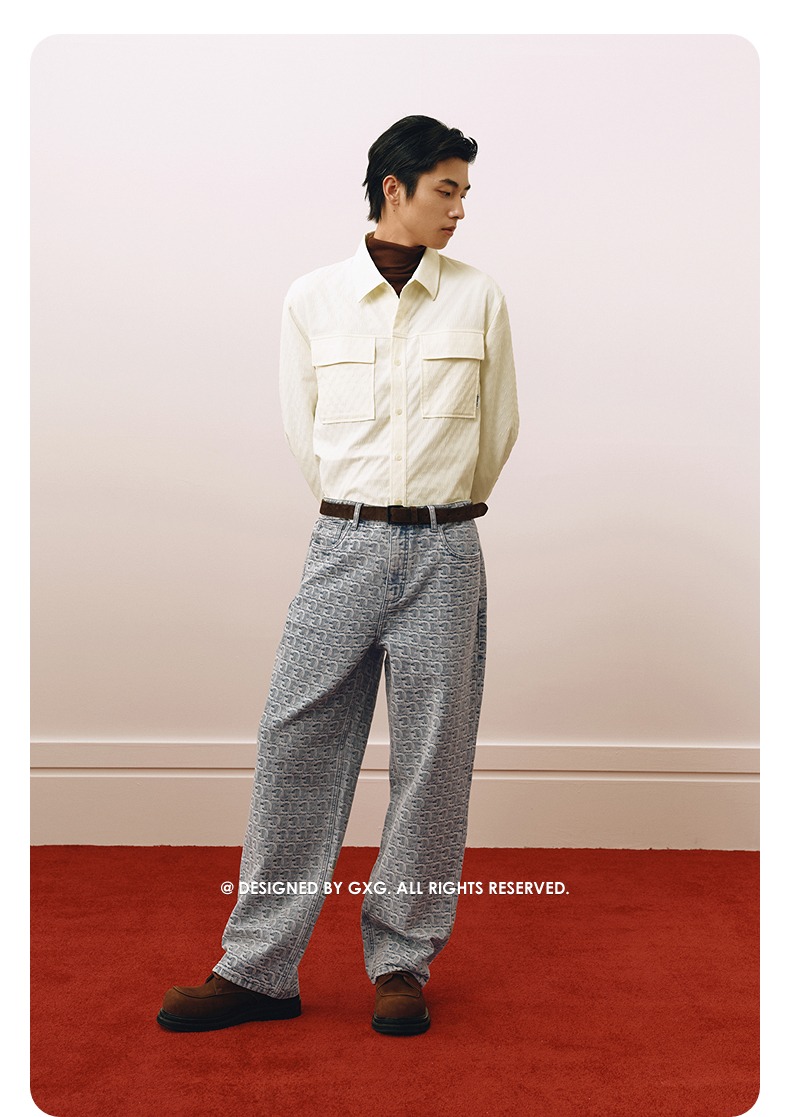 GXG男装 水洗浅蓝牛仔裤提花满印长裤通勤休闲男裤 2025春季热卖