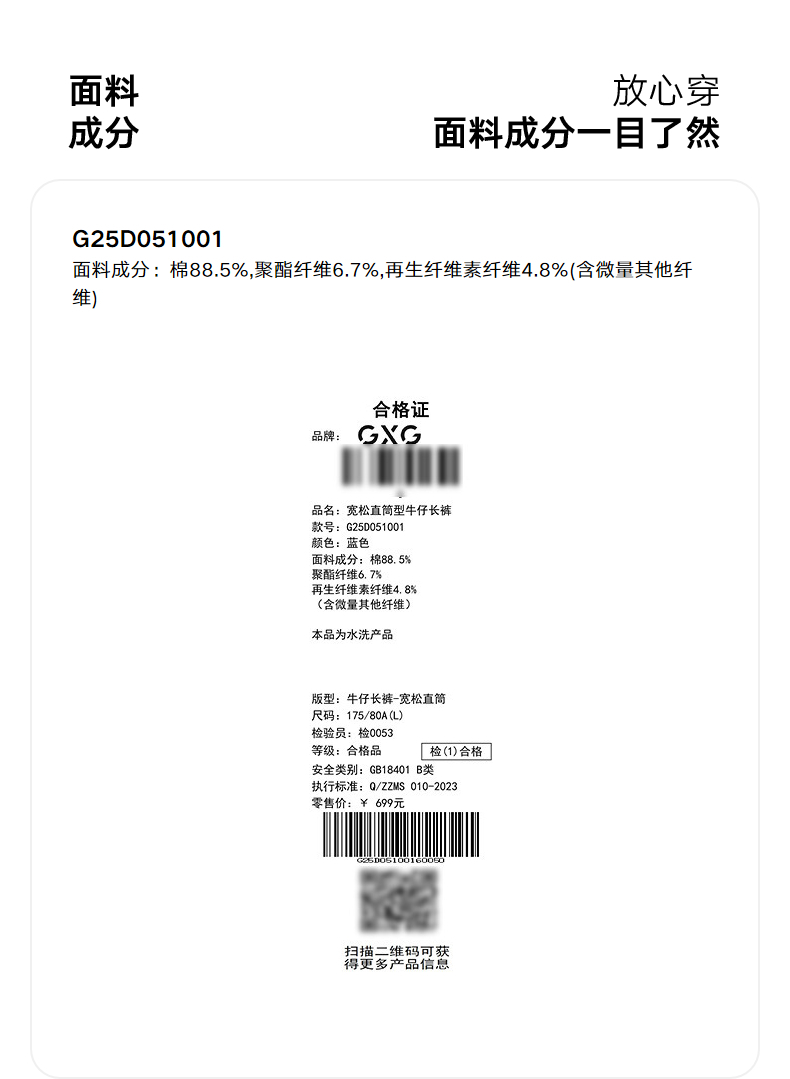 GXG男装 定织竖条肌理宽松直筒阔腿擦色牛仔裤 2025秋季新品