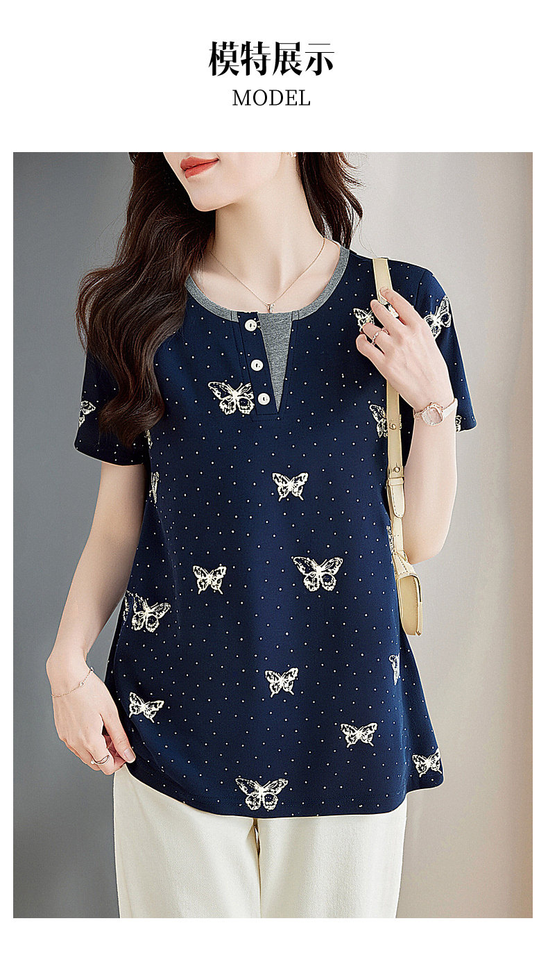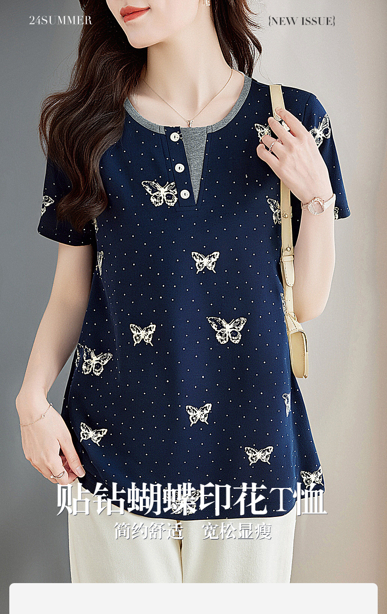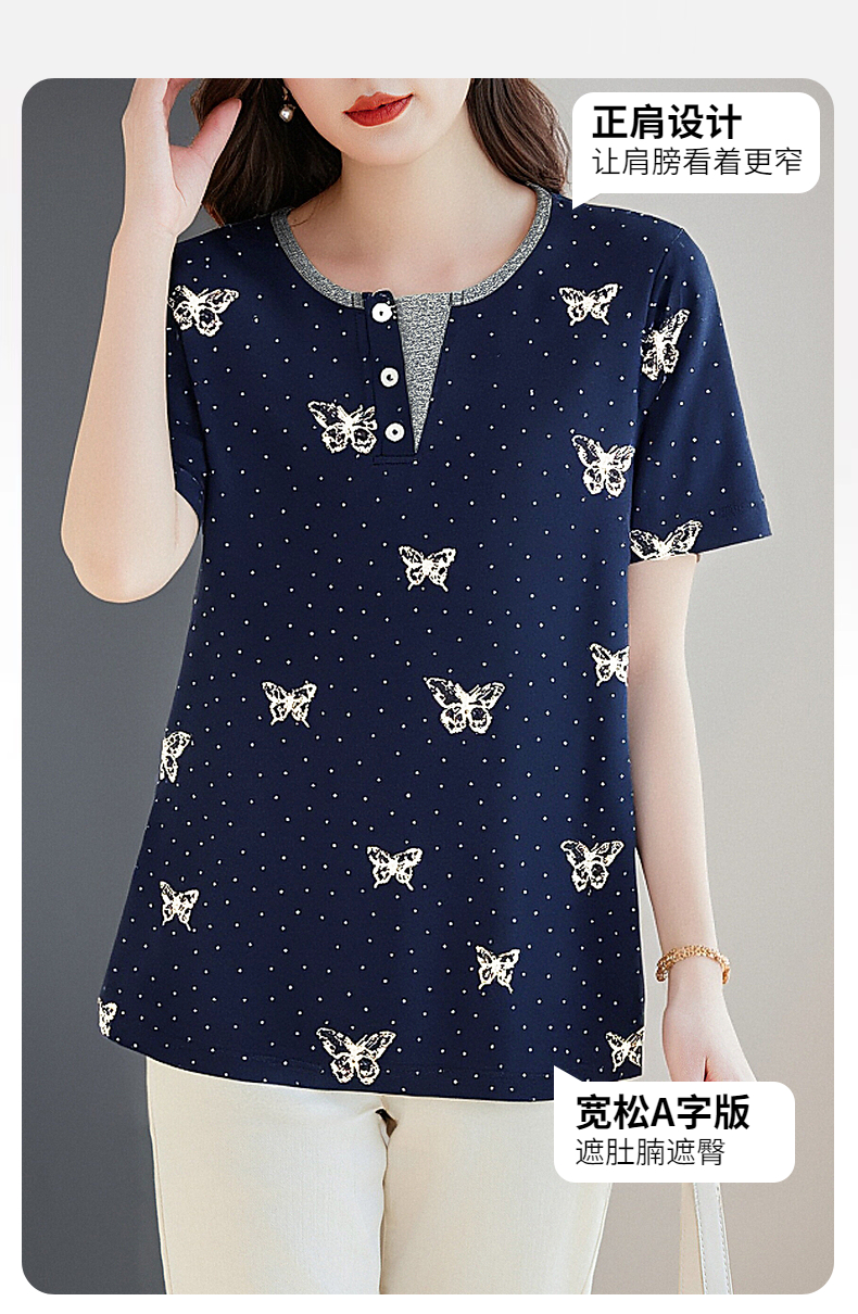 雪纺上衣女短袖大码女装2025年夏季新款女士上衣时尚碎花妈妈夏装