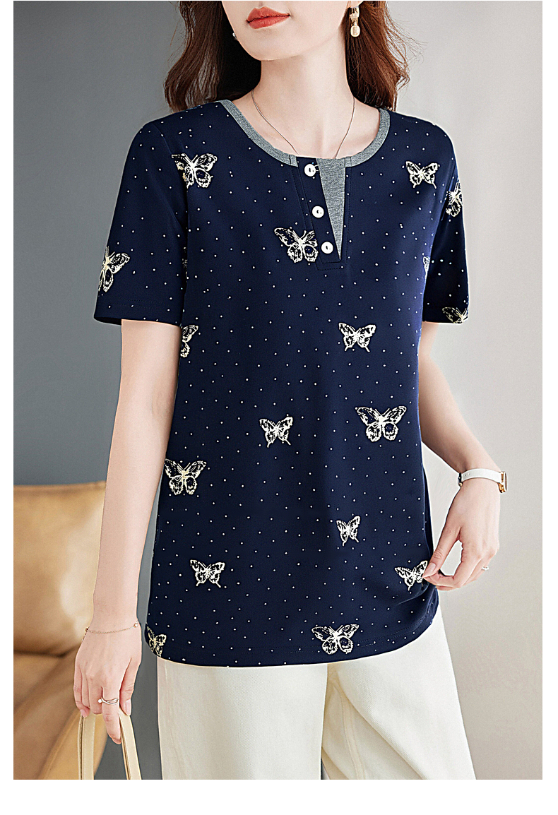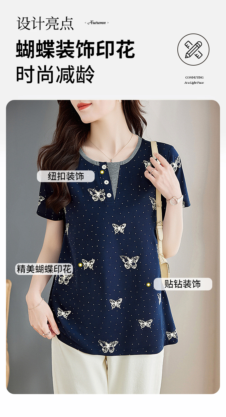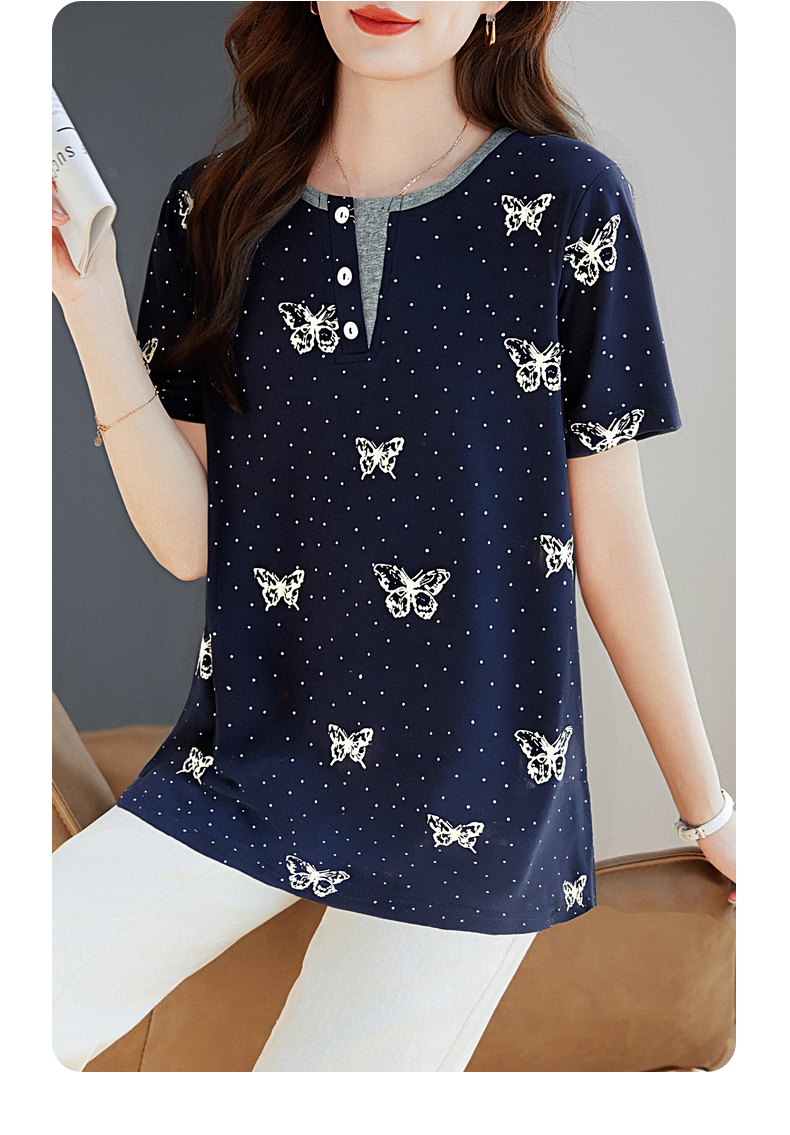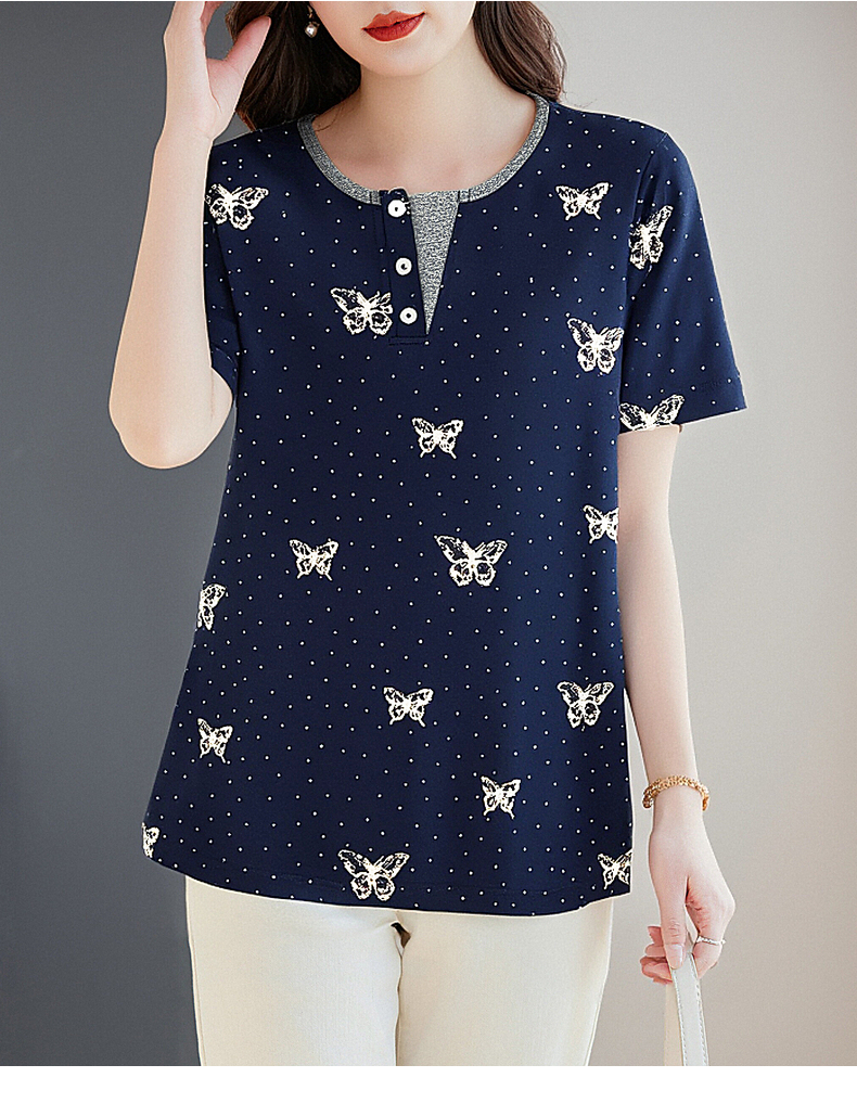 雪纺上衣女短袖大码女装2025年夏季新款女士上衣时尚碎花妈妈夏装