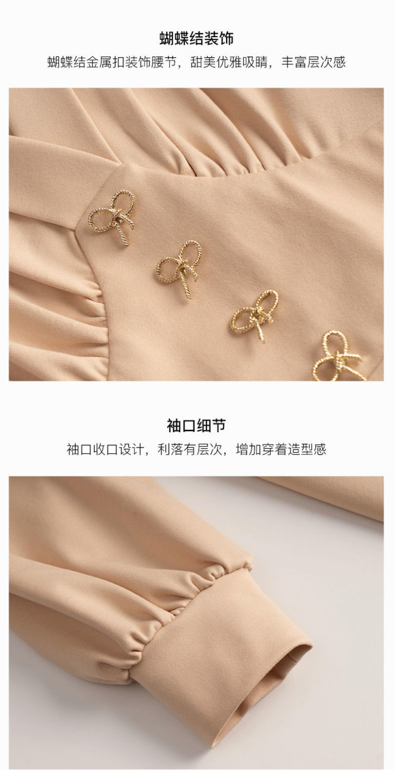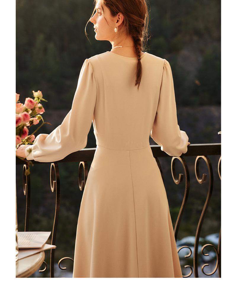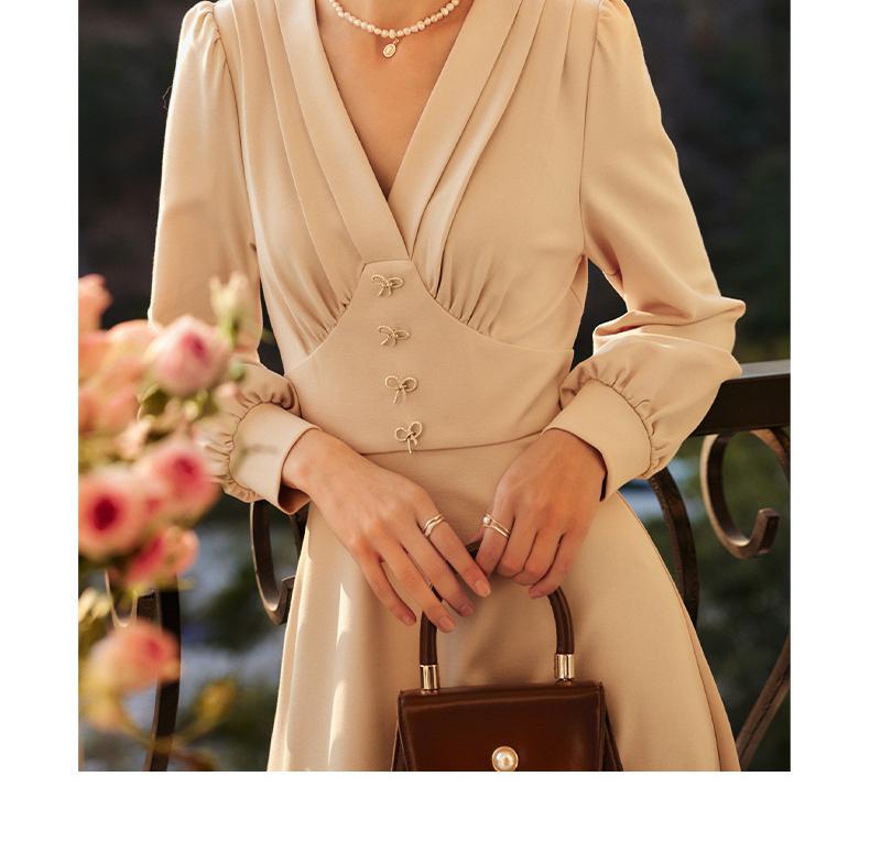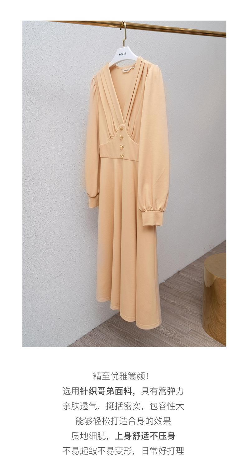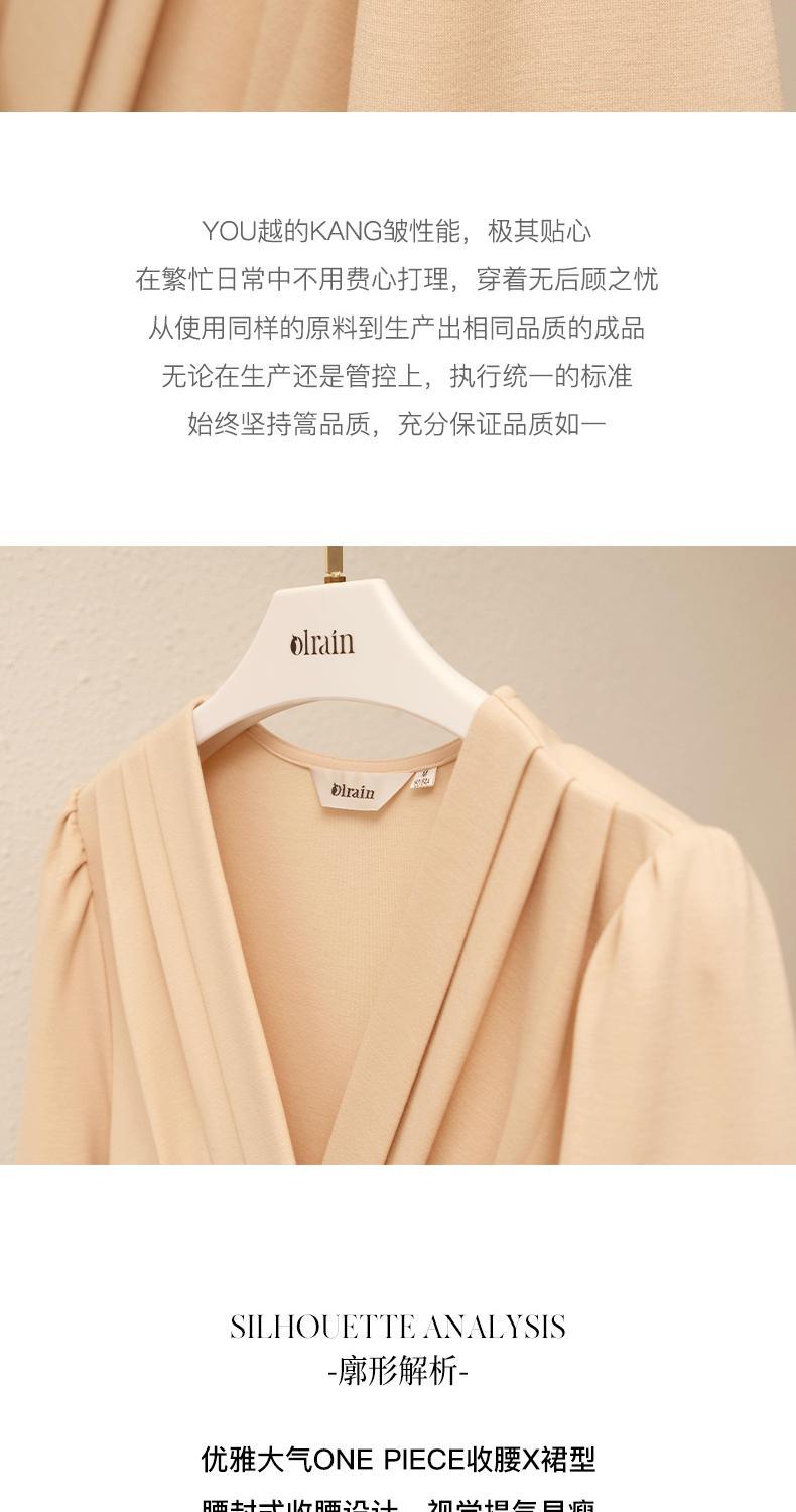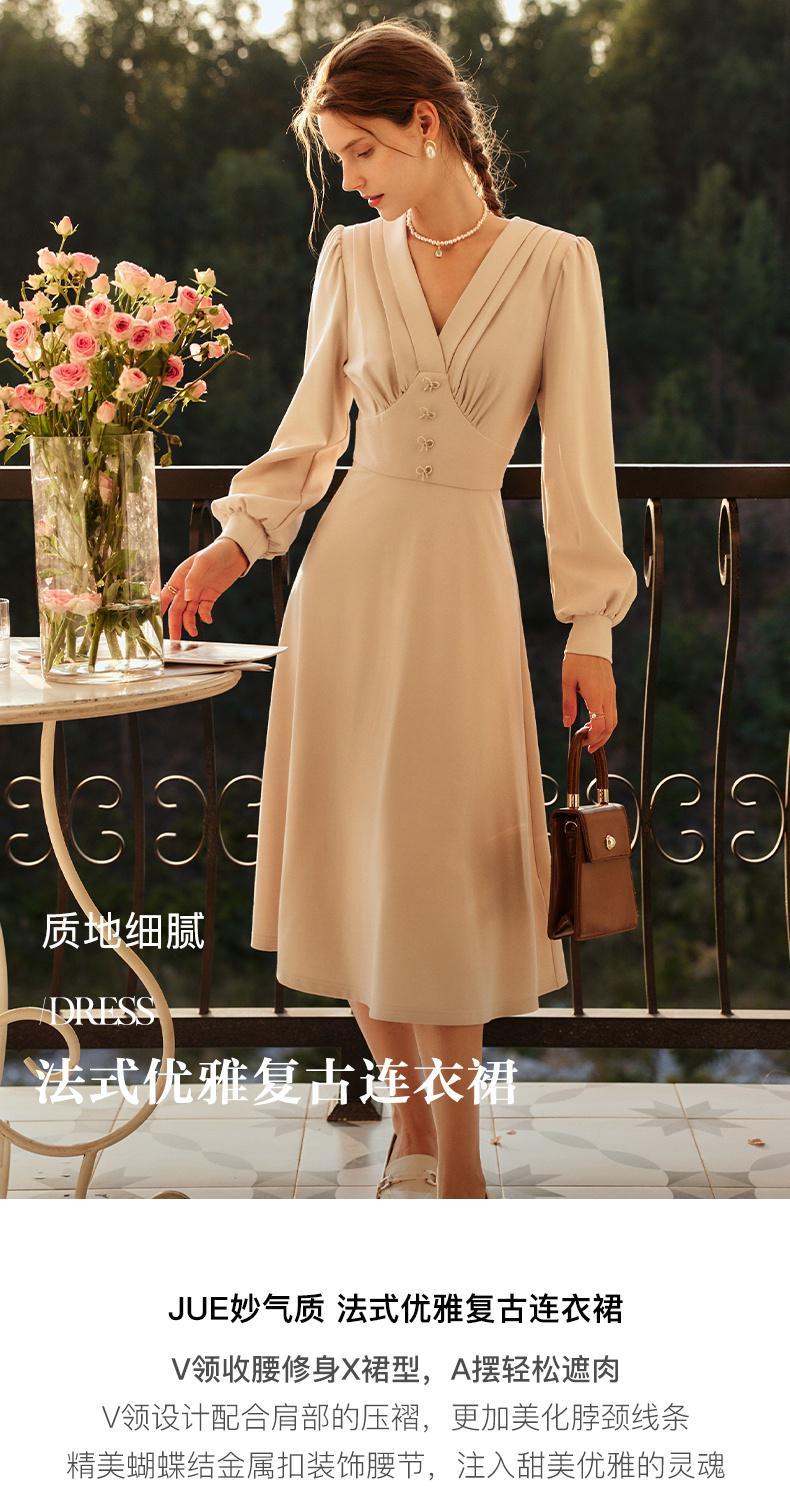 欧芮儿V领针织连衣裙女春季2022新款收腰显瘦法式复古灯笼袖a字裙