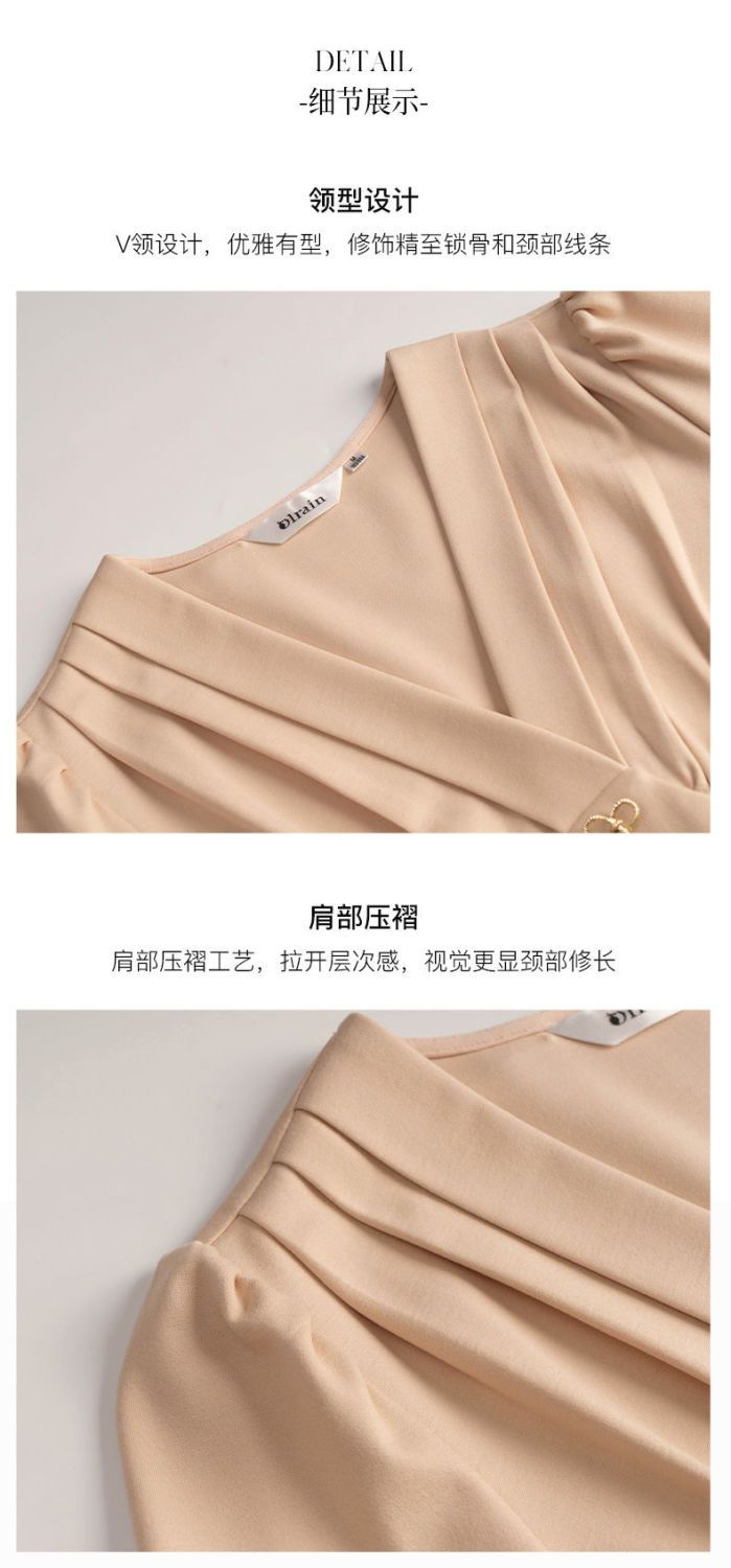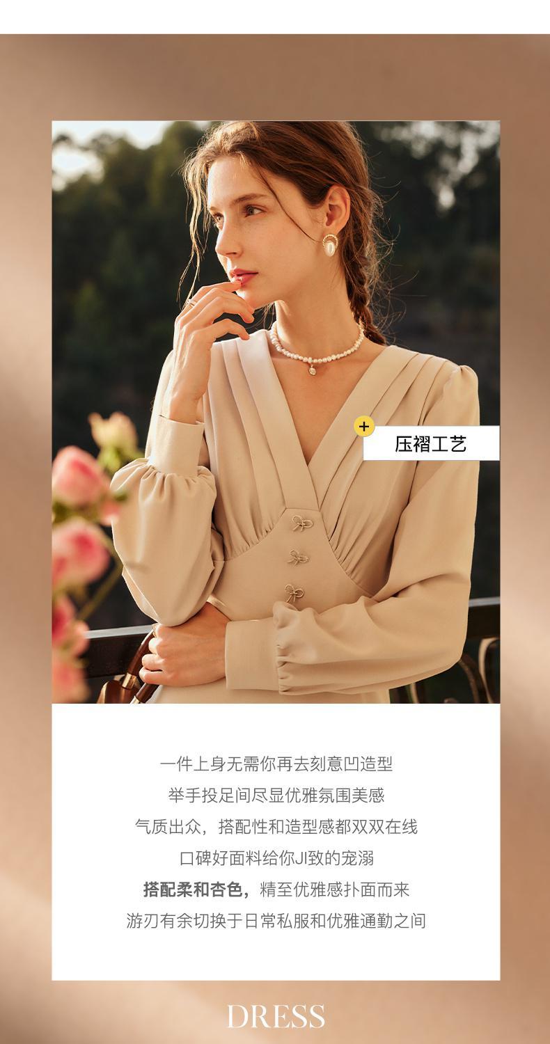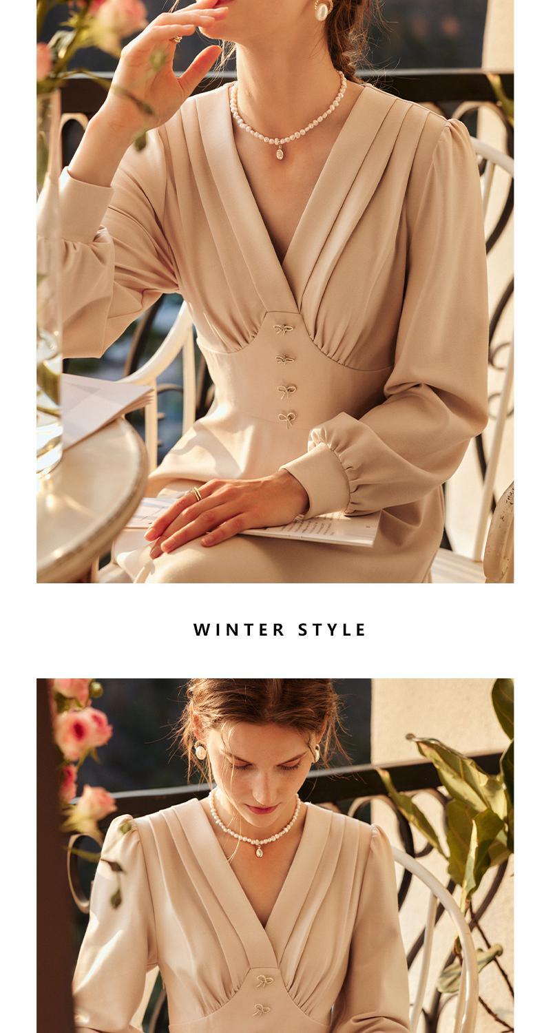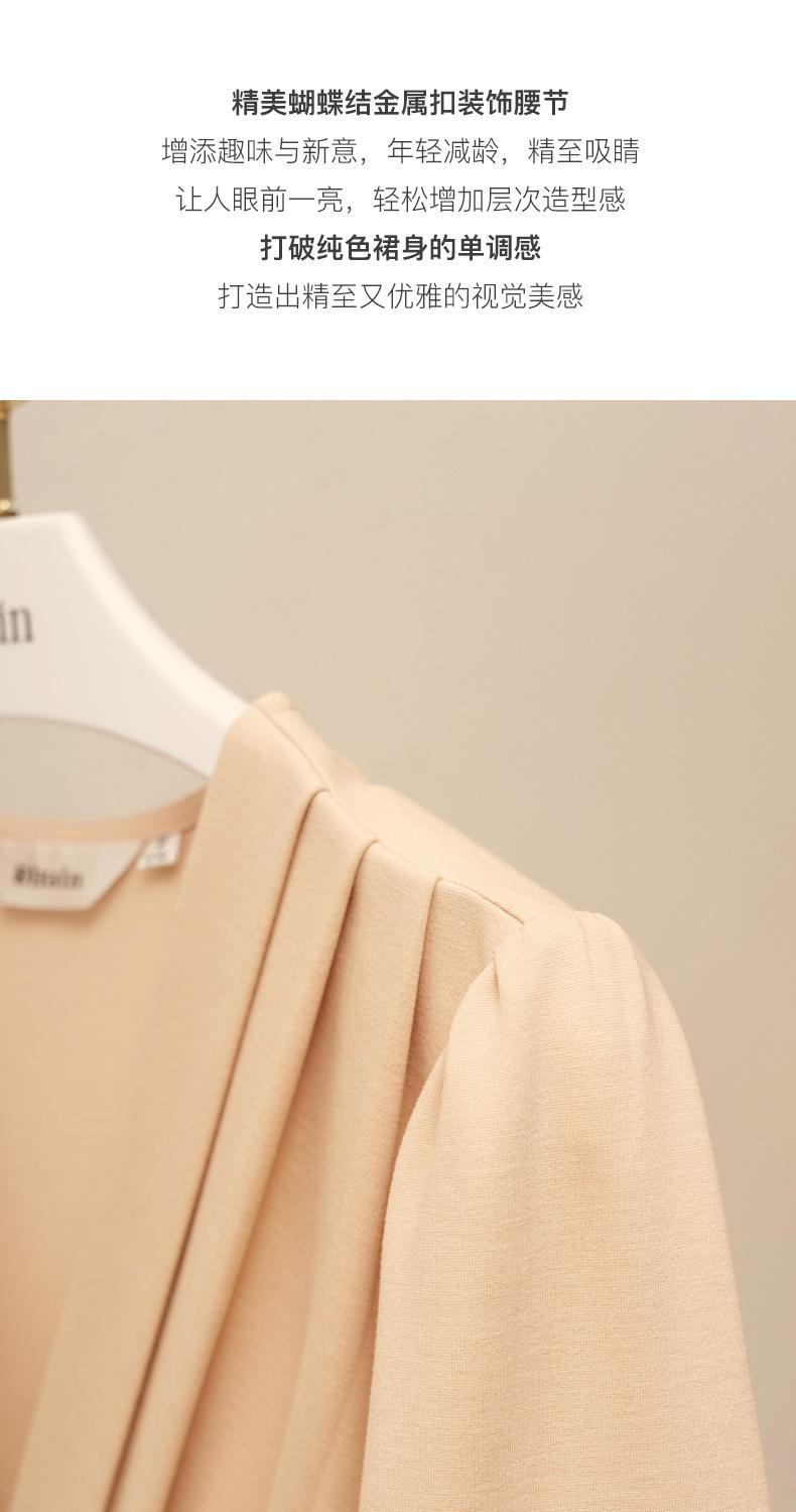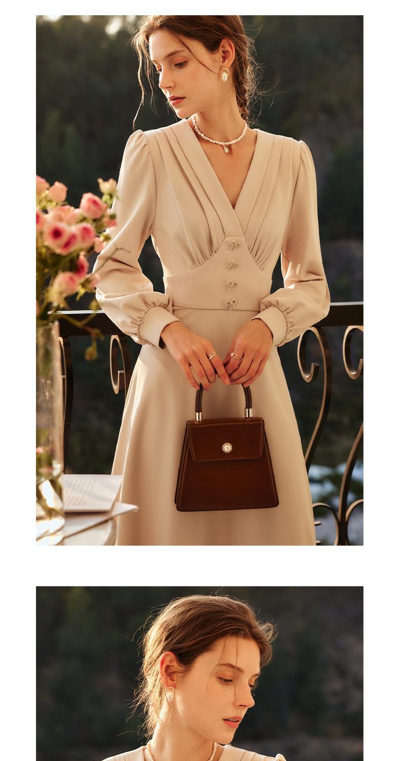 欧芮儿V领针织连衣裙女春季2022新款收腰显瘦法式复古灯笼袖a字裙